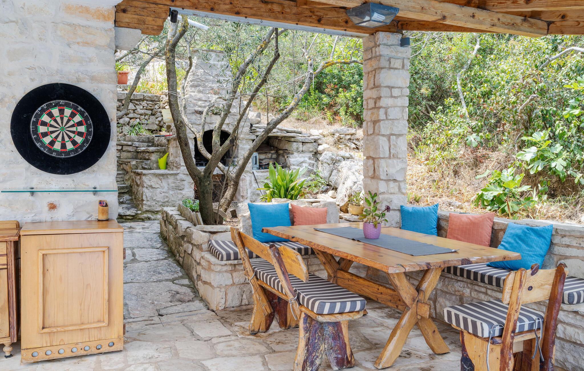 Velkommen til dette indbydende hus, der byder jer velkommen på en fantastisk beliggenhed ved havet og fortryller jer med sin storslåede udsigt. Efter jeres aktiviteter kan I slå jer ned i siddegruppen, diskutere dagens oplevelser og nyde den uforglemmelige havudsigt, mens I spiser sammen eller slapper af.