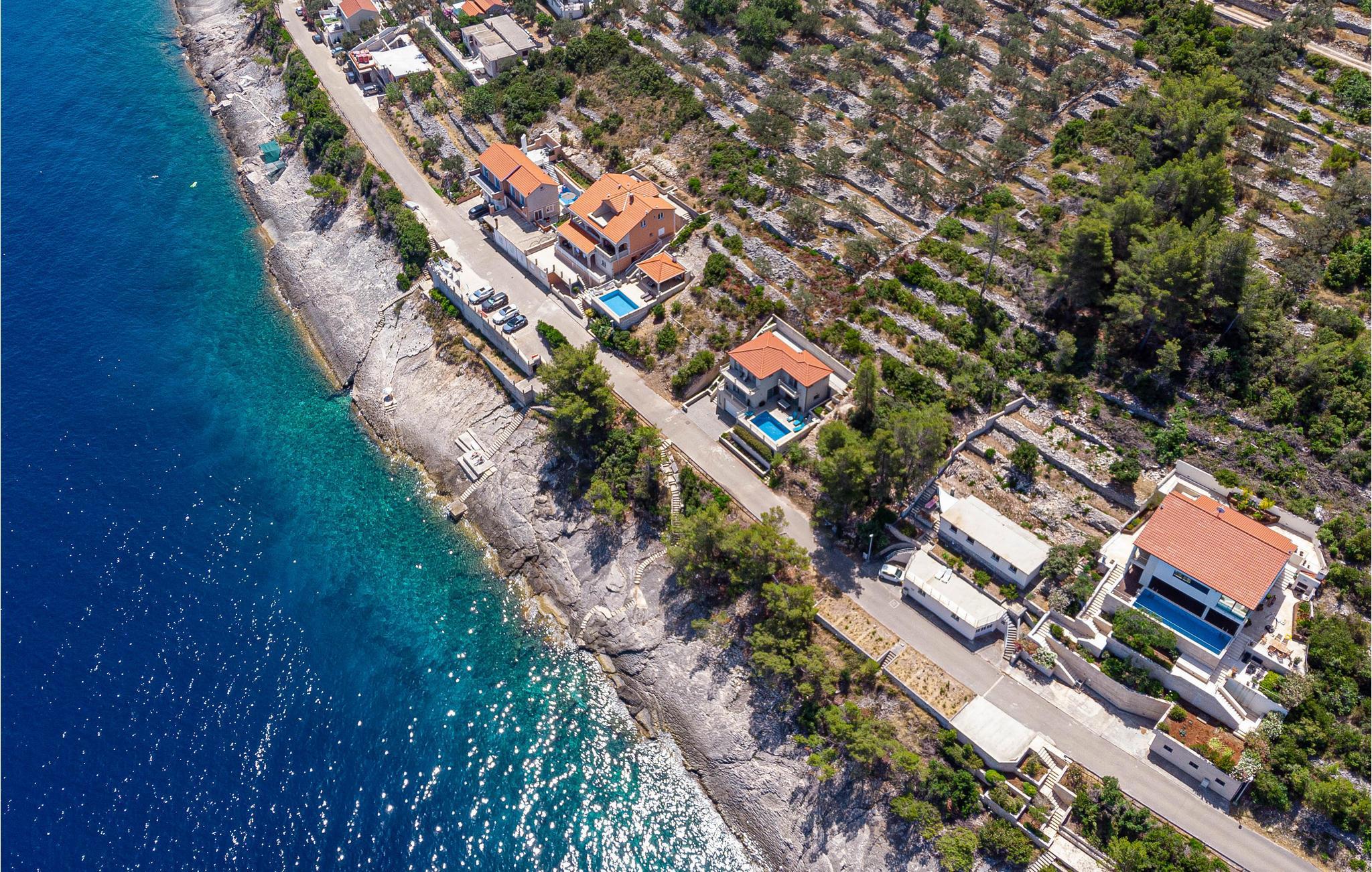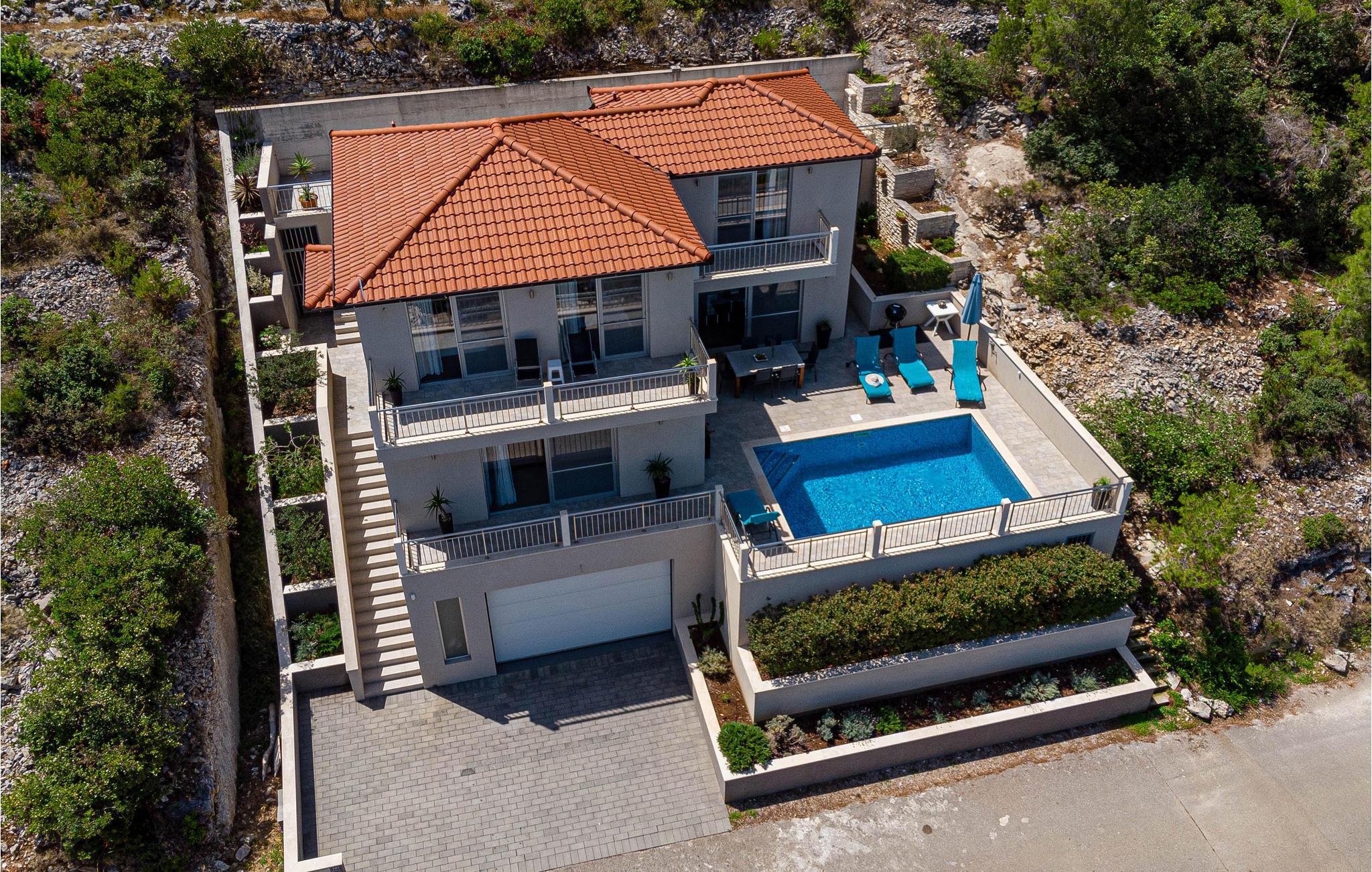 Denne moderne villa på nordsiden af øen Korcula har en blanding af adriatisk og moderne indretning. Terrassen med pool har panoramaudsigt til havet, øen Hvar og bjergene. I stueetagen ligger en dagligstue, køkkenet og spisestuen, der er dekoreret maritimt. Der er indvendige og udvendige trapper. På 1. sal ligger tre soveværelser, et med bad, de to andre har et fælles bad. De har allesammen terrasser og en skøn udsigt. Bag huset ligger der en terrasse med grill, hvor I kan nyde morgenkaffen og senere lave lækker fisk. I centrum af Prigradica ligger der to offentlige, børnevenlige strande, sportsmuligheder som vandpolo, fodbold og volleyball samt to fiskerestauranter. Egnen er kendt for sin olivenolie og hvidvin. Vi anbefaler jer at besøge byen Korcula.