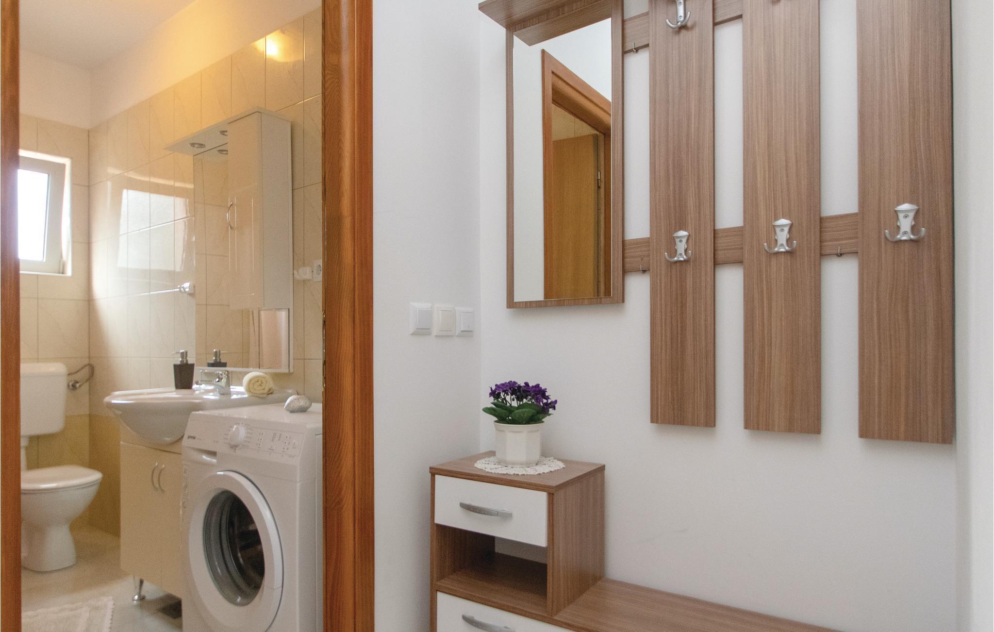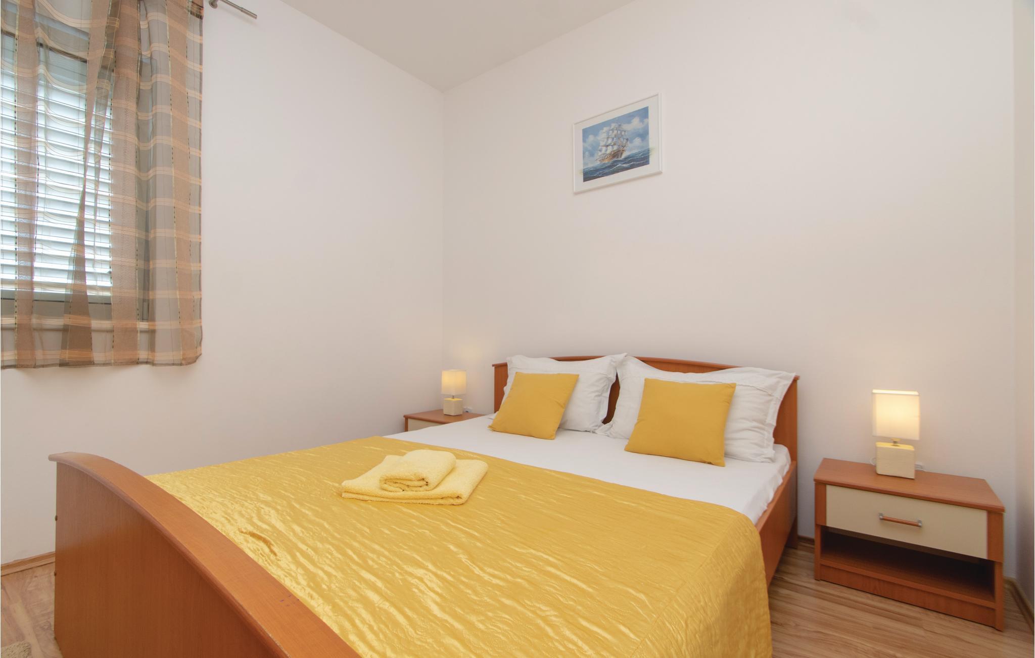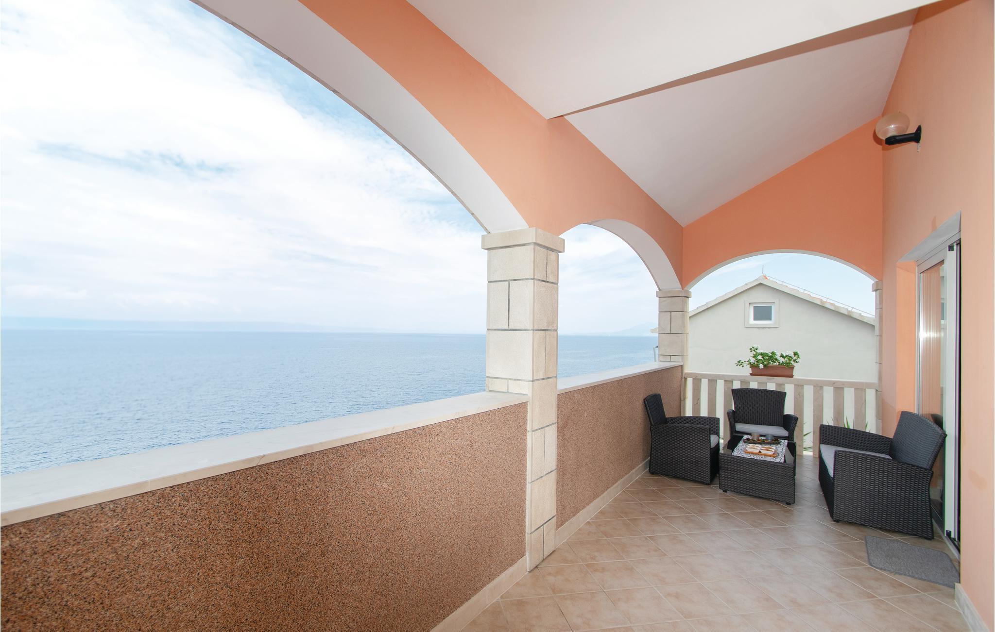 Lidt udenfor byen Prigradica, ligger dette feriehus, som rummer to separate lejligheder. Lejlighederne er kun forbundet ved den udendørs indgang. To lejligheder ligger på anden sal. Det ene har to soveværelser, en rummelig stue og et køkken, mens den anden lejlighed har to soveværelser, kun med adgang fra den udendørs terrasse. På første sal ligger endnu en separat lejlighed med et soveværelse. Fra terrassen er der en betagende udsigt over havet. I poolen kan I nyde livet, når det er rigtigt varmt. De to strande i centrum er godt egnede for børn. Mellem havet og huset er der en lille gade.