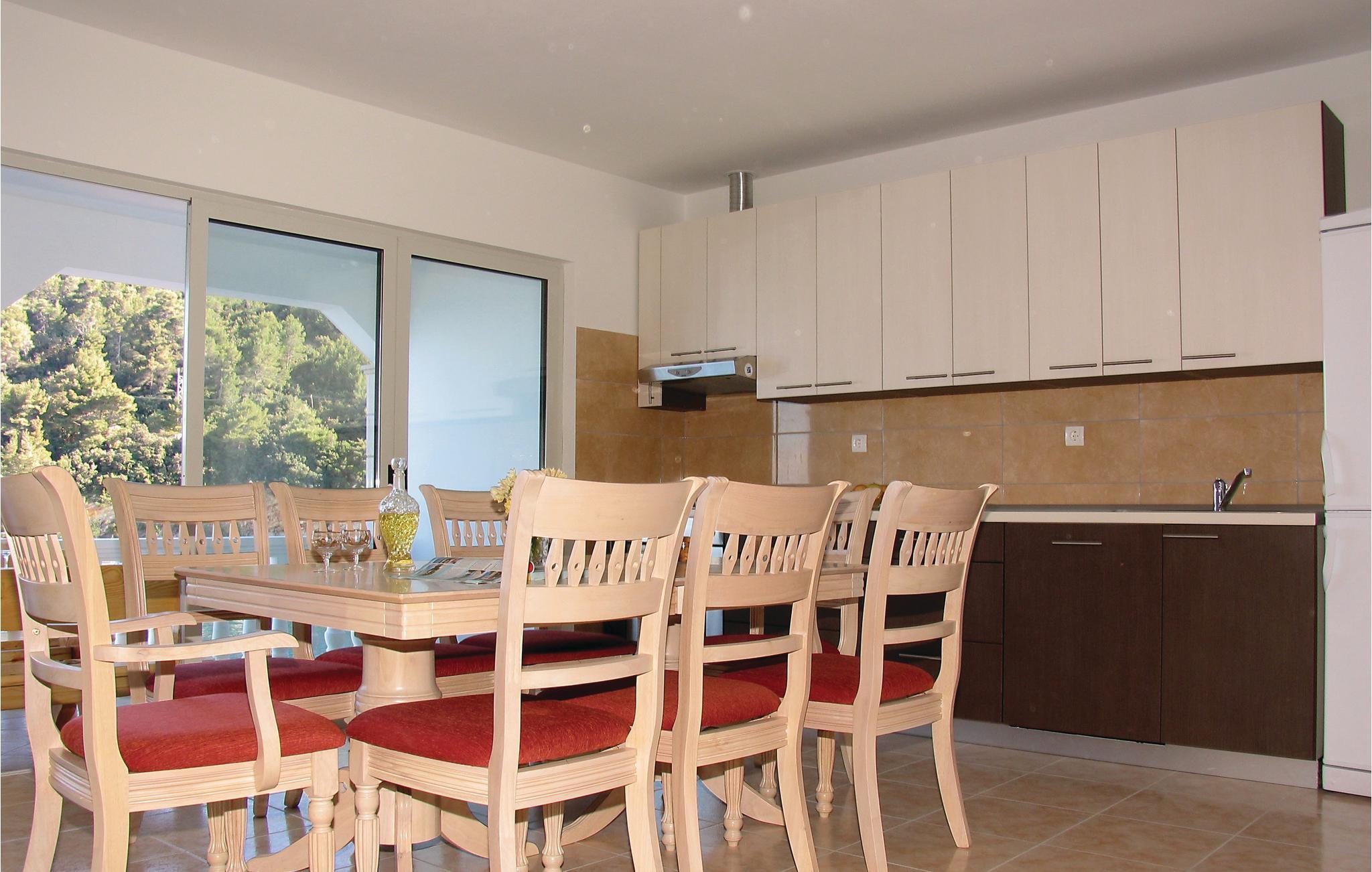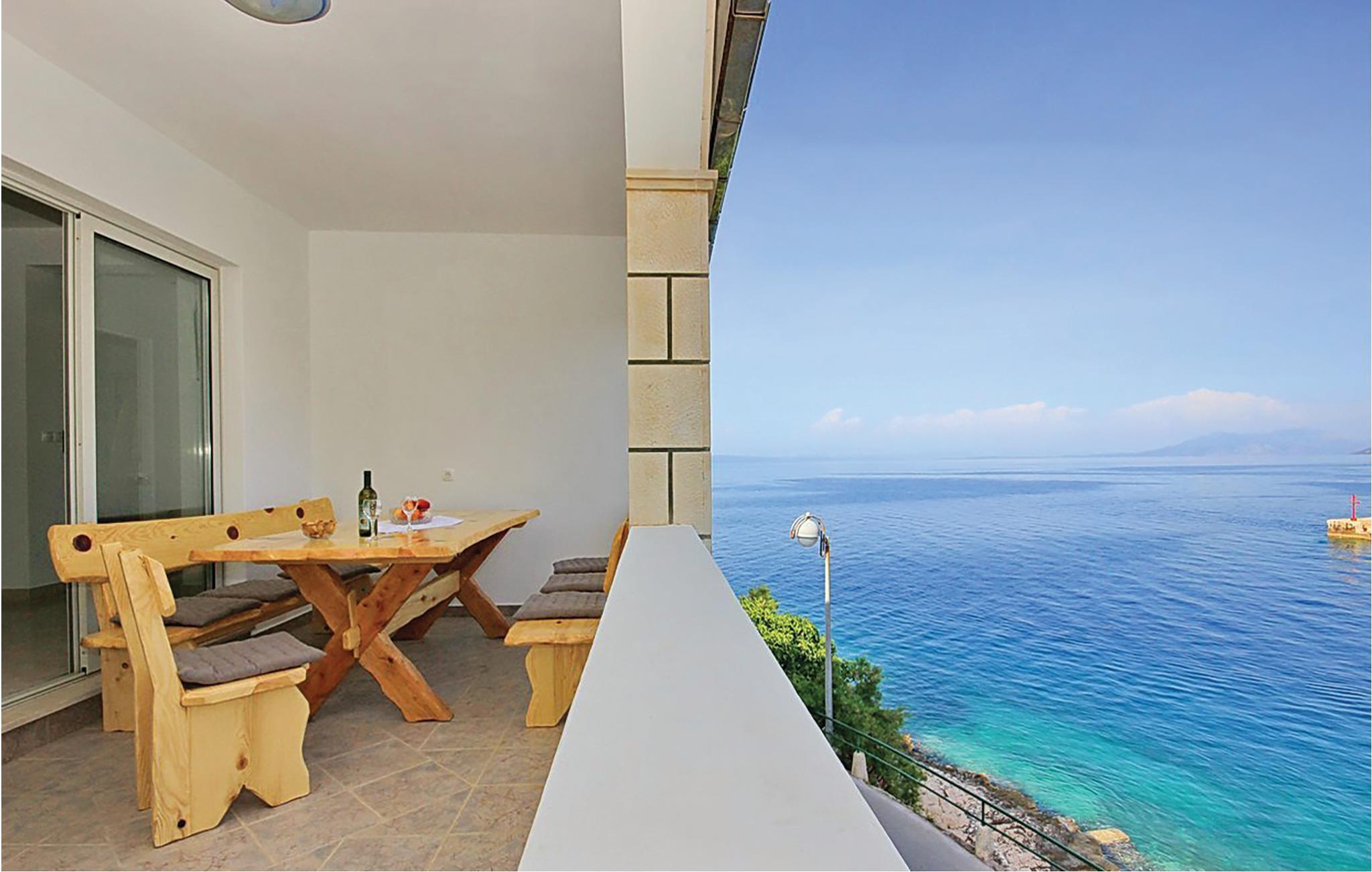 Lejligheden har en rummelig spisestue og stue med direkte adgang til terrassen. Udsigten fra terrassen har udsigt over Korcula-kanalen, øen Hvar og Biokovo-bjergene i det fjerne.