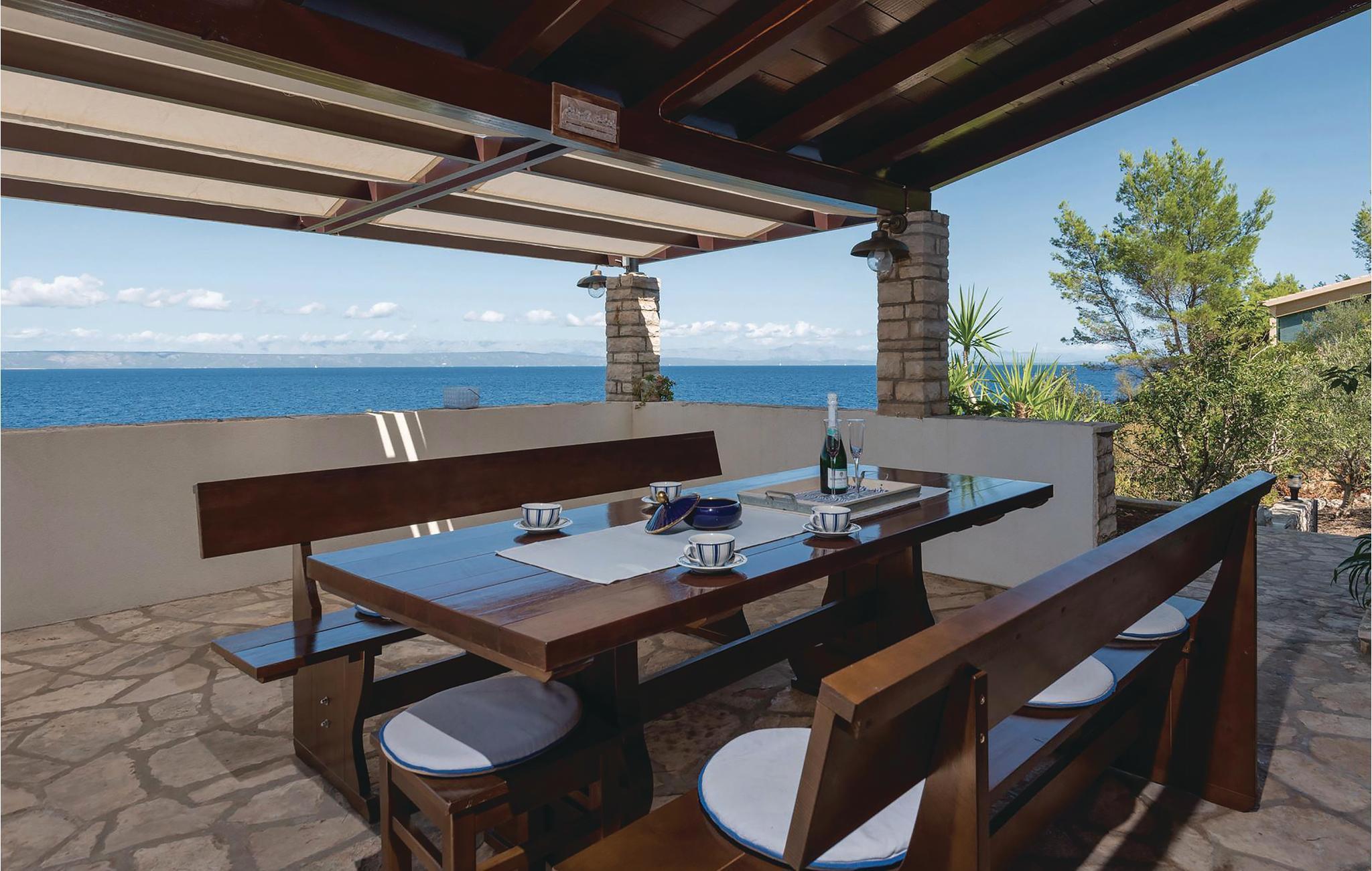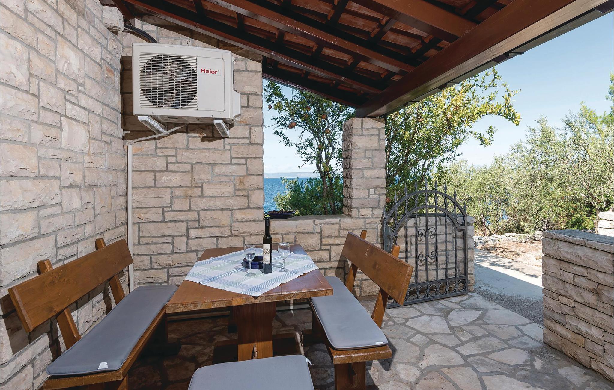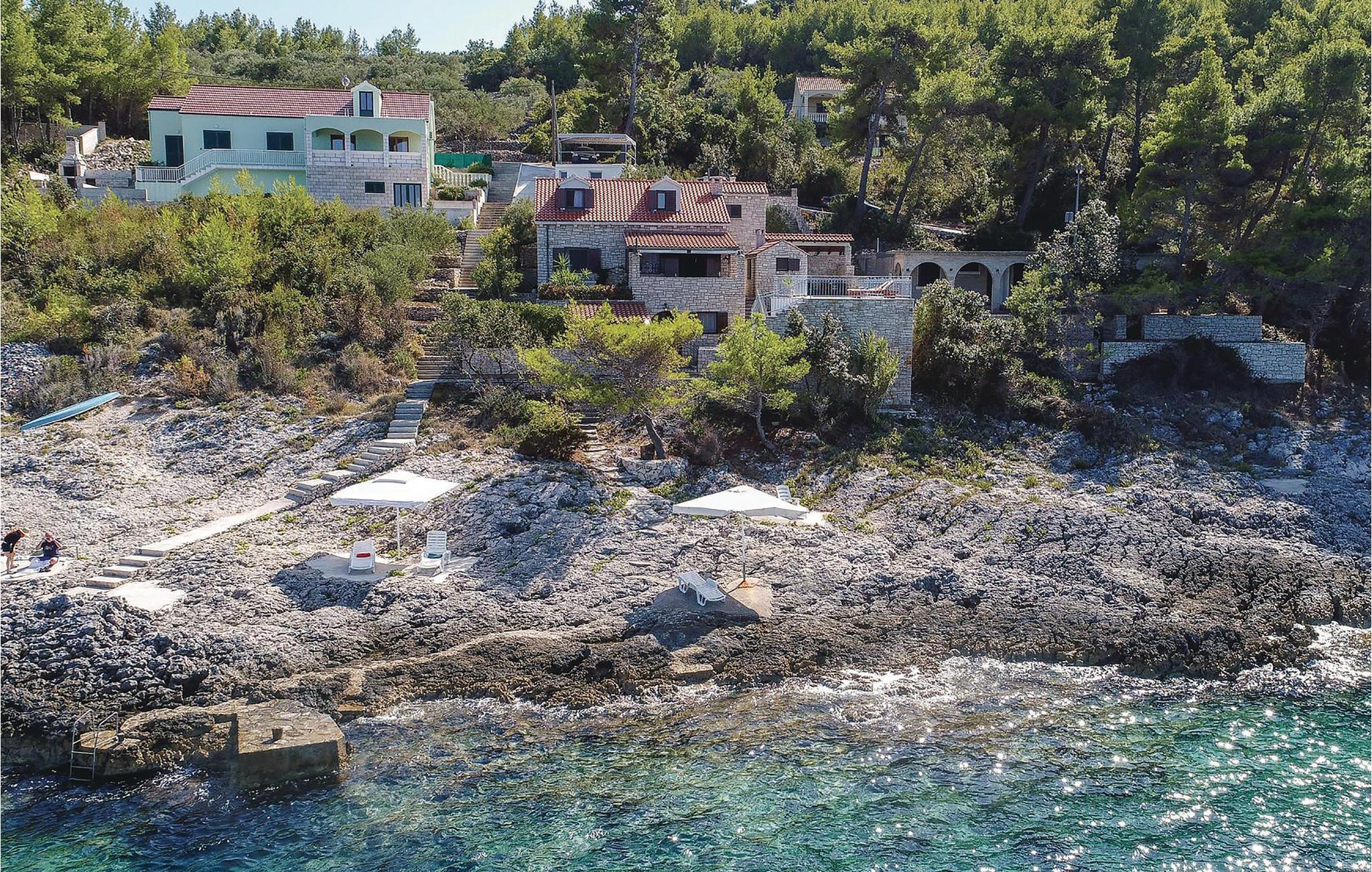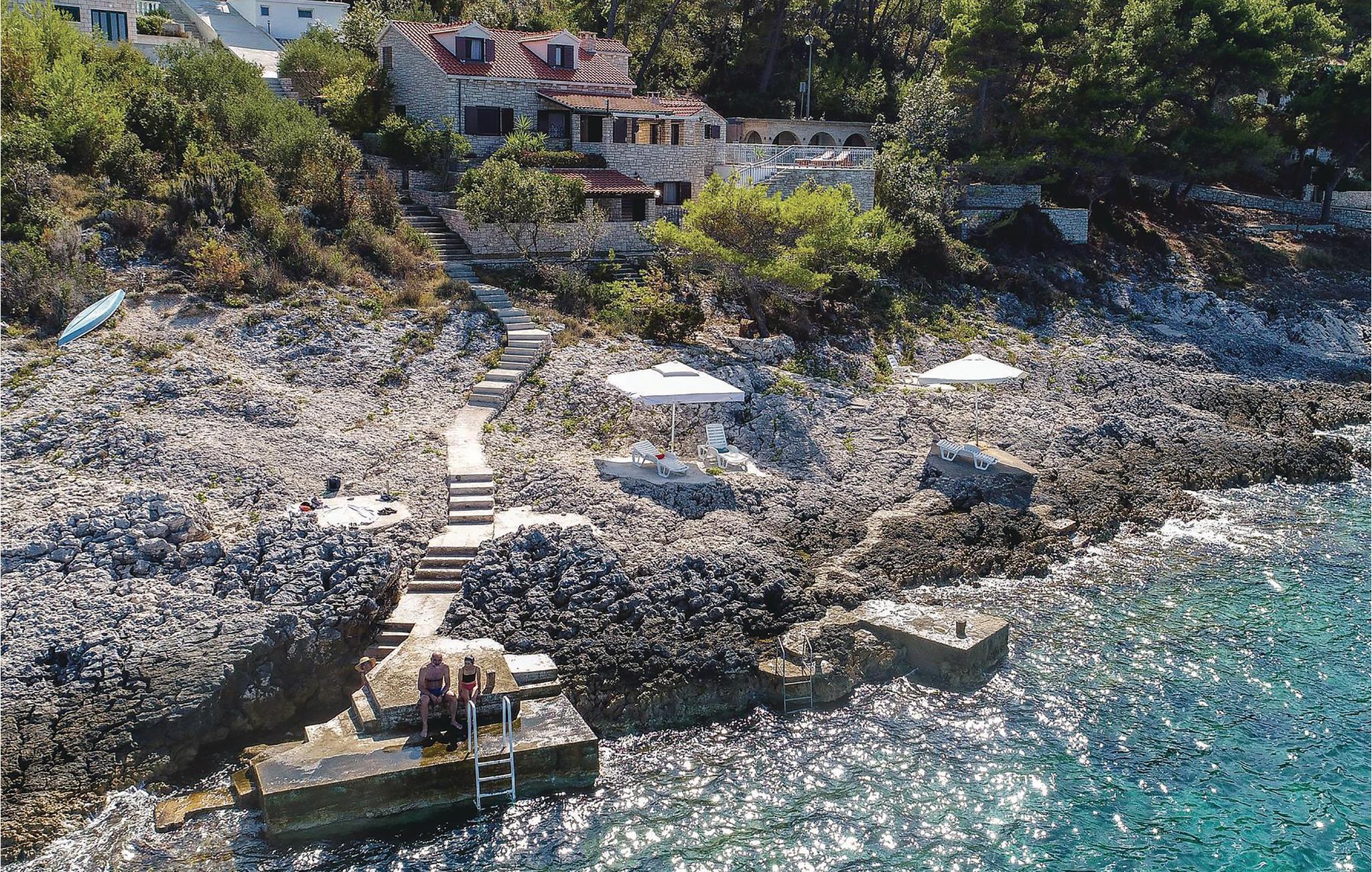 Dejligt hus af sten med pool, der ligger lige ud til havet, med skøn udsigt. I huset er der tre lejligheder, deraf er to studio-lejligheder der ligger ii en sidebygning med egen indgang udefra. I hovedhusts stueplan er der et rummeligt køkken, spise- og opholdstue og to soveværelser. En indre trappe fører op til galleriet med soveværelse og badeværelse, samt en finsk sauna. Terrassen med pool vil få jer til at spærre øjnene op. Husets ejer er lidenskabelig lystfisker, ejer en gård og vil gerne hjælpe jer i det omfang I har brug for det.