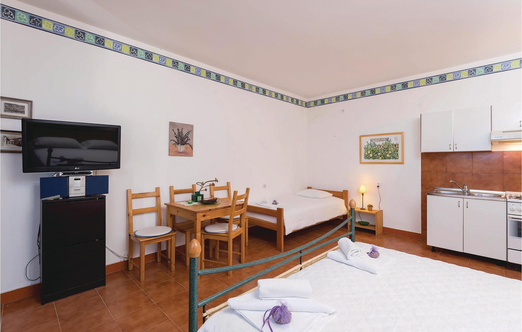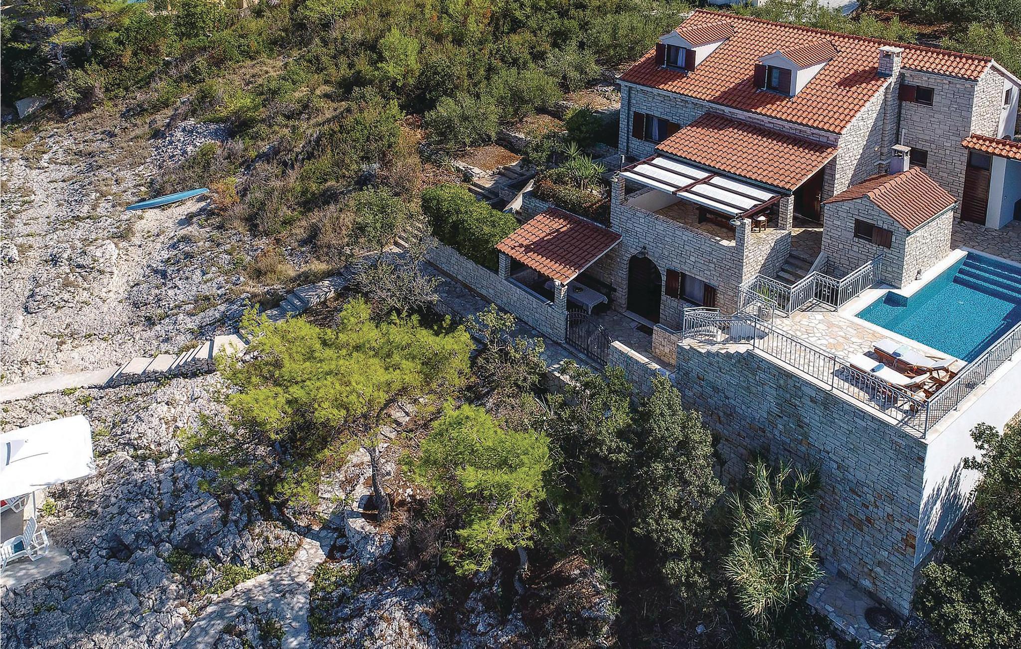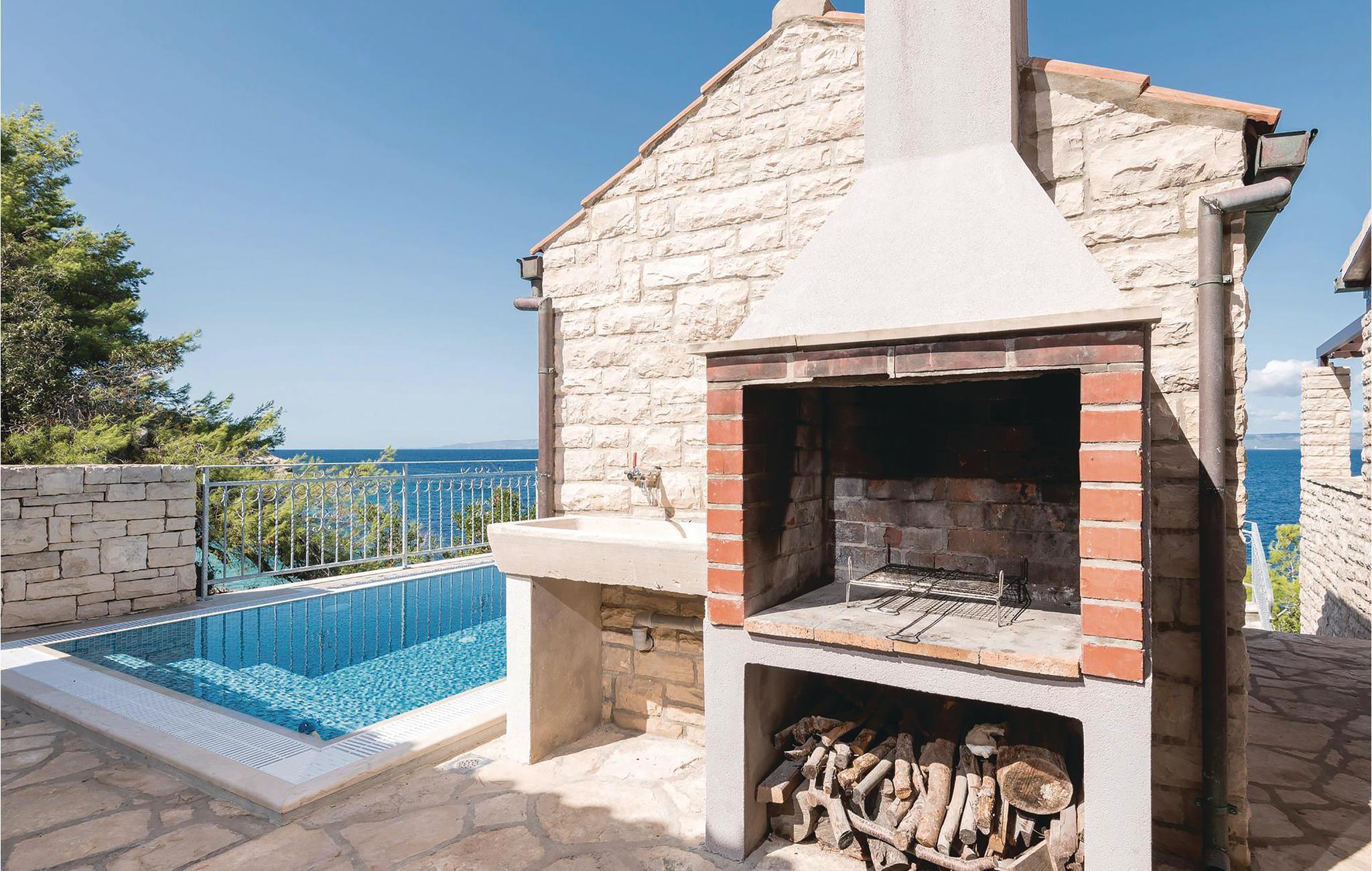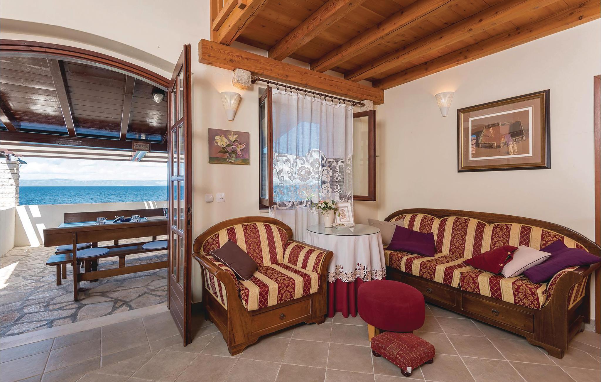 Dejligt hus af sten med pool, der ligger lige ud til havet, med skøn udsigt. I huset er der tre lejligheder, deraf er to studio-lejligheder der ligger ii en sidebygning med egen indgang udefra. I hovedhusts stueplan er der et rummeligt køkken, spise- og opholdstue og to soveværelser. En indre trappe fører op til galleriet med soveværelse og badeværelse, samt en finsk sauna. Terrassen med pool vil få jer til at spærre øjnene op. Husets ejer er lidenskabelig lystfisker, ejer en gård og vil gerne hjælpe jer i det omfang I har brug for det.