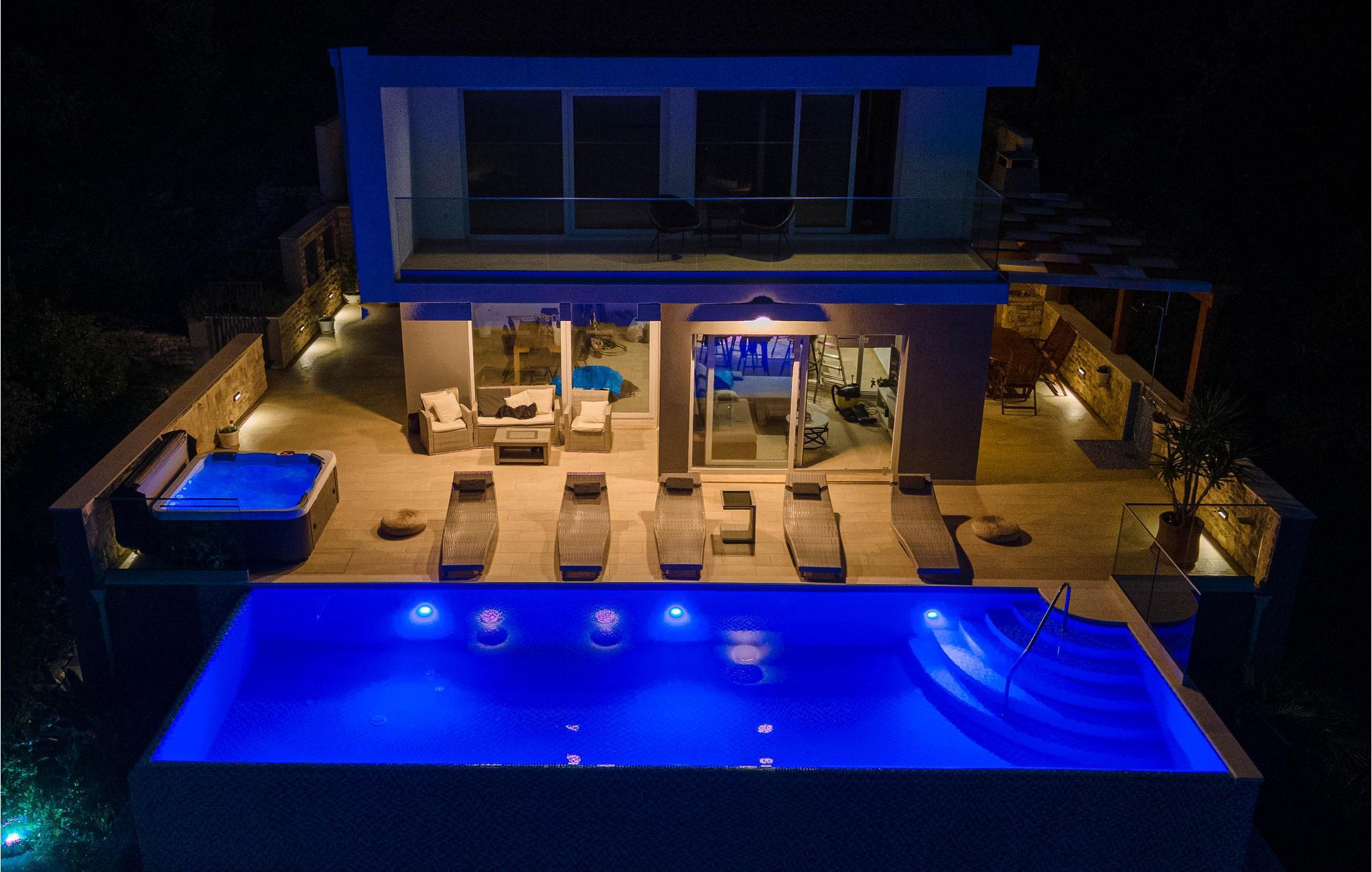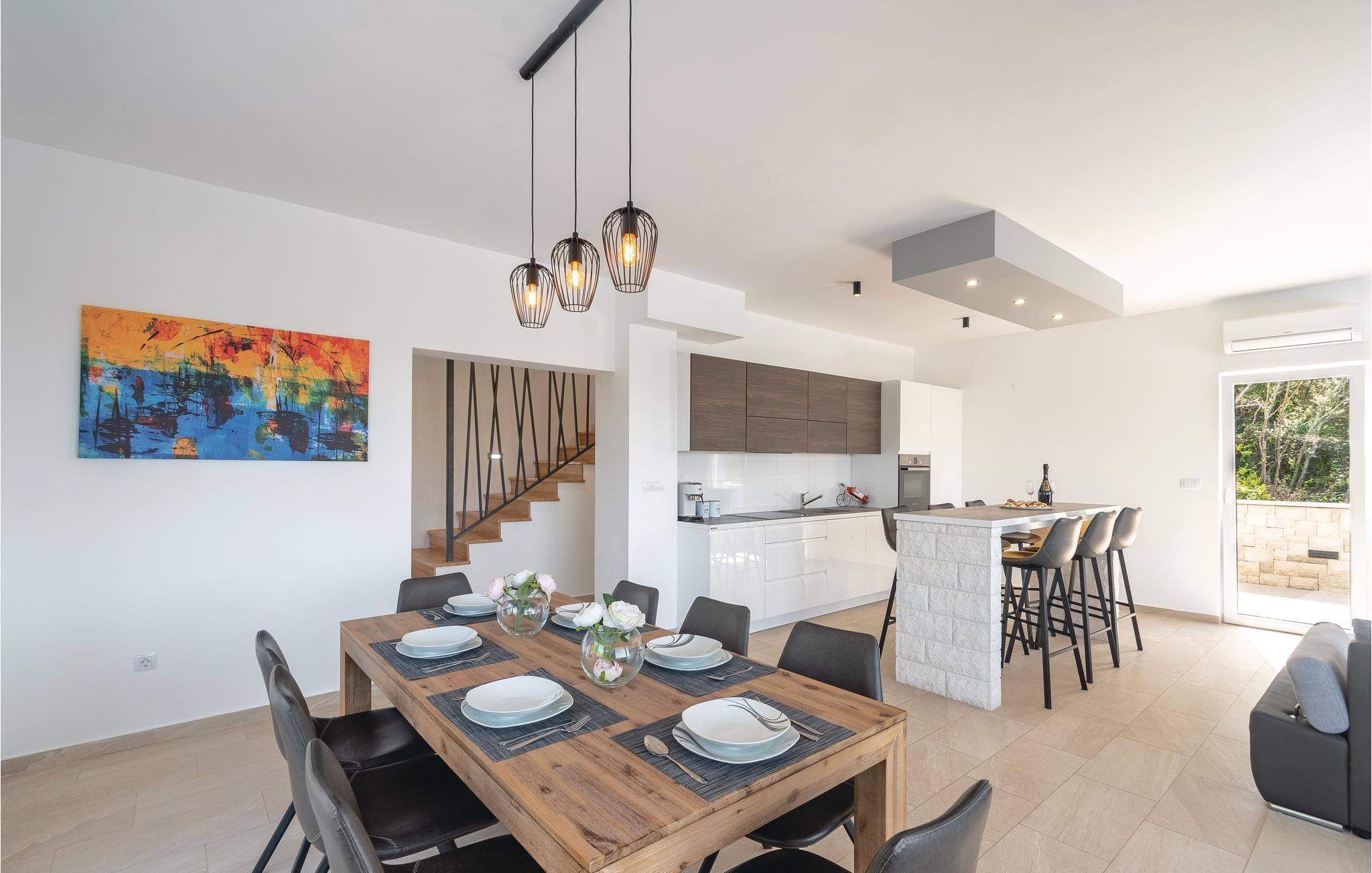 Dette dejlige og attraktive feriehus ligger på den nordvestlige del af øen Korcula. Det er beliggende på toppen af en bakke ovenfor den lille landsby Prigradica, og her råder I over udsigt til bugten og øen Hvar. Den enkle arkitektur, med dens harmoniske linjer og moderne design, giver huset en naturlig elegance. Oplev den perfekte middelhavsferie med panoramaudsigten fra dette behagelige drømmehus. Efter de lange dage ved stranden kan I tage en spadseretur langs promenaden, eller nyde aftenen med et glas vin. I bil når I let byerne Vela Luka, Korcula og Lumbarda, som bestemt er besøg værd.