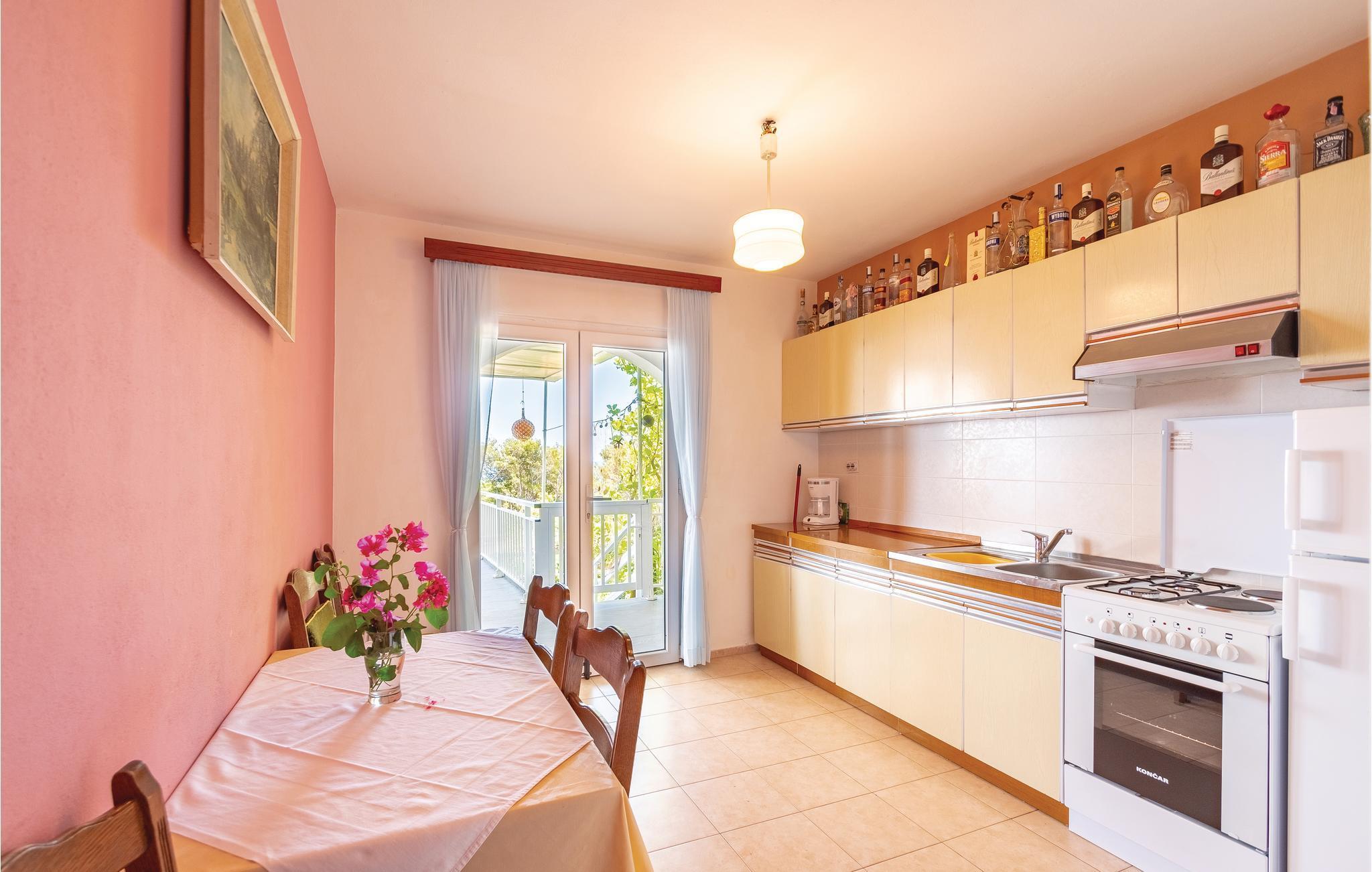 Dette enkelt indrettede dobbelthus ligger på en lille halvø i bugten Prizba. Huset indeholder flere separate lejligheder med adgang udefra og fra huset fører en lille sti gennem pinjetræer til stranden. I stueetagen står grillen hvor I kan tilberede lækre fiskeretter. På forespørgsel tilbyder husejeren at tilberede og servere traditionelle retter. I nærheden ligger en dejlig by med flere seværdigheder og en børnevenlig strand.