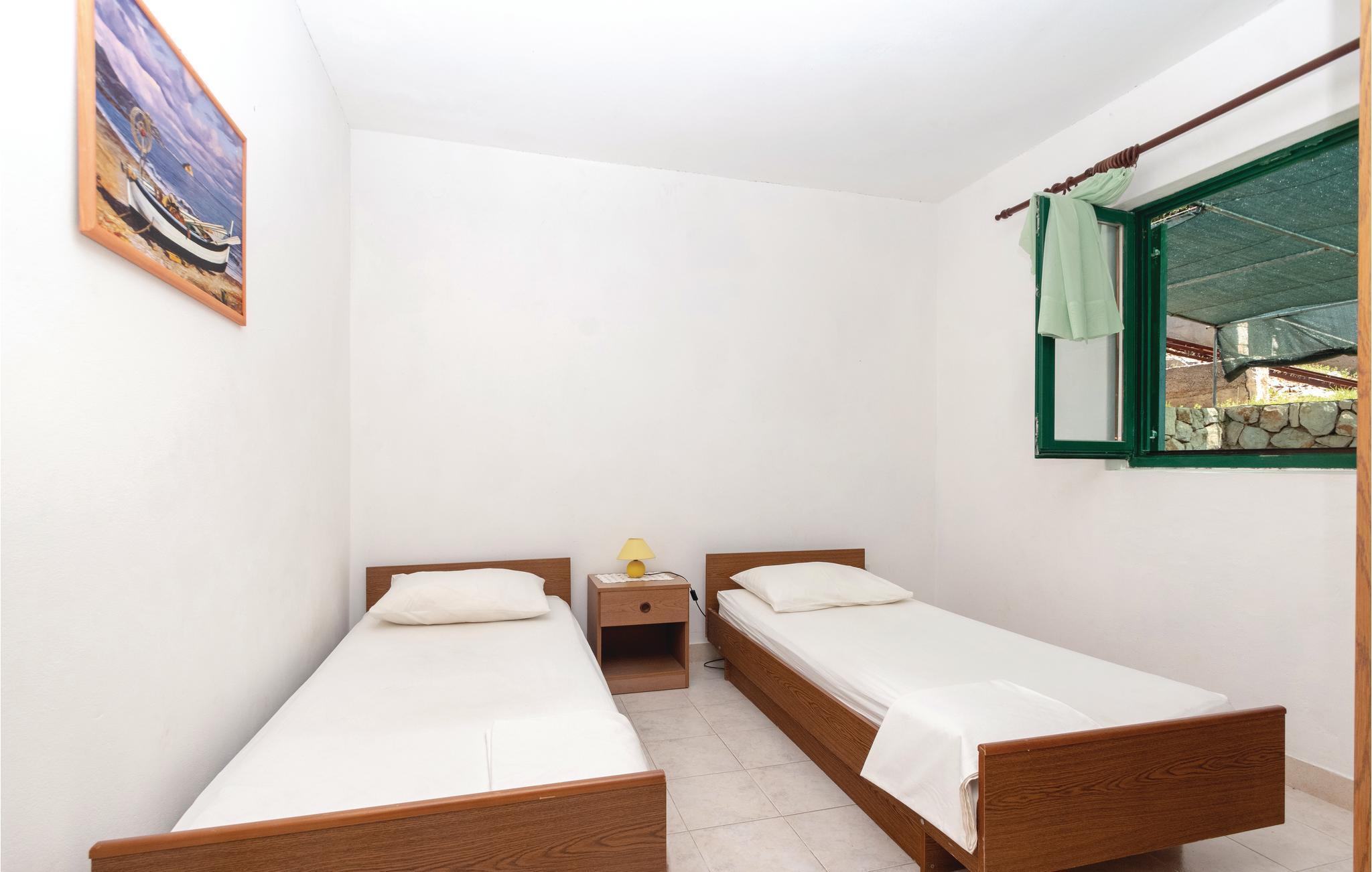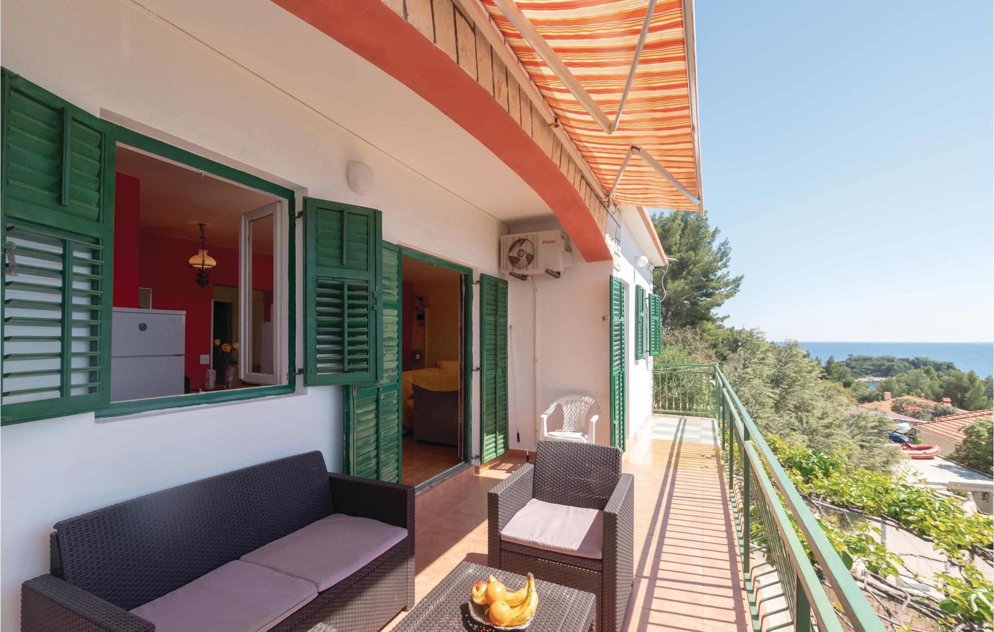 I denne rummelige ferielejlighed er der plads til syv personer og her er barneseng til familiens mindste. Til lejligehden hører en skøn altan, hvor I kan nyde den skønne udsigt til øgruppen Prizba. I kan tage på bådtur ud til de mange små øer, som fx Vrhovnjak og Sridnjak. I byens centrum kan I slentre ad strandpromenaden og bade fra den dejlige kiesstrand. Talrige vandrestier lokker jer ud i naturen og fører jer gennem pinjeskove og giver kig til mange flotte udsigter. Dette lille paradis er ligeledes meget velegnet for windsurfere.