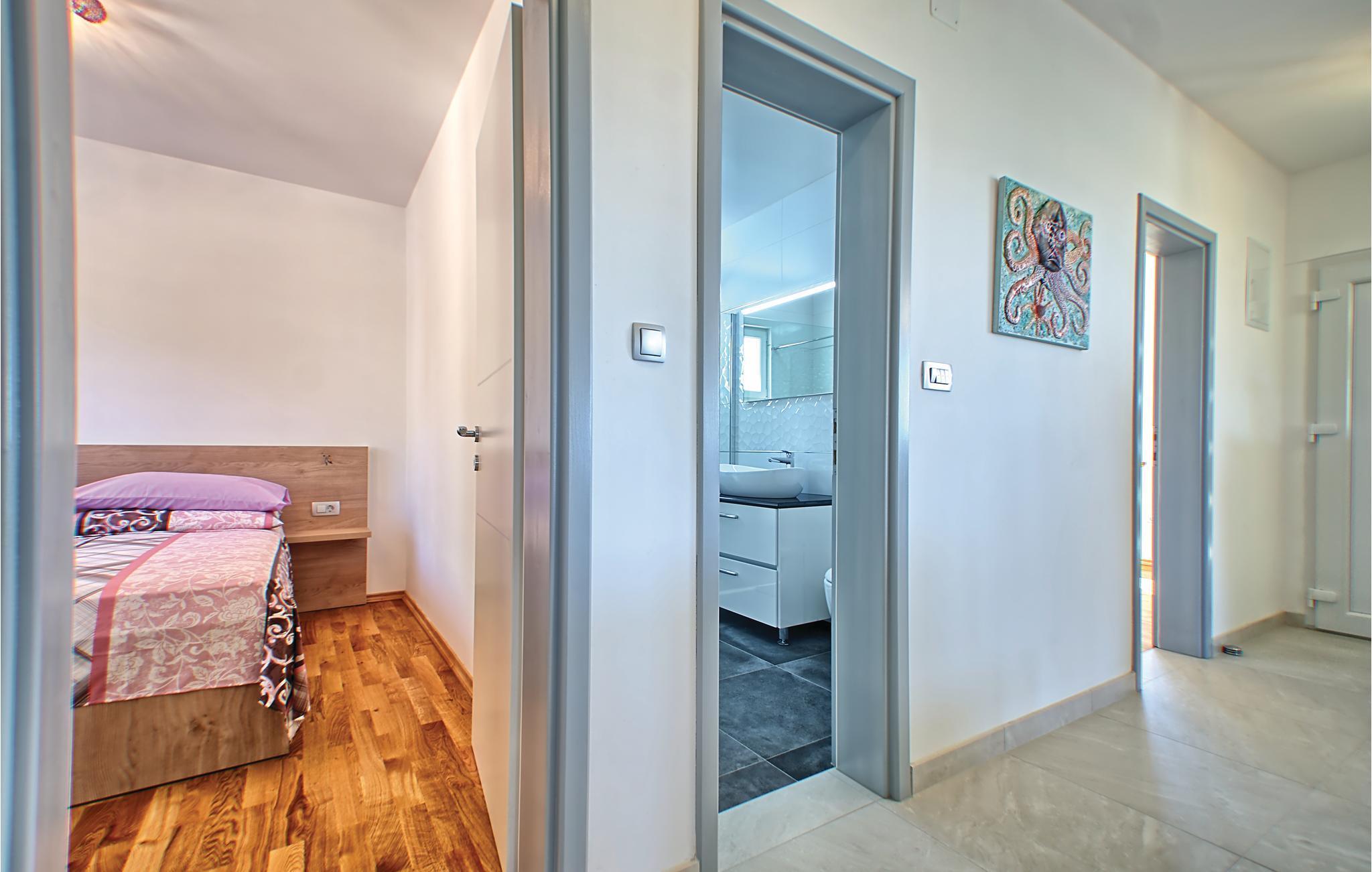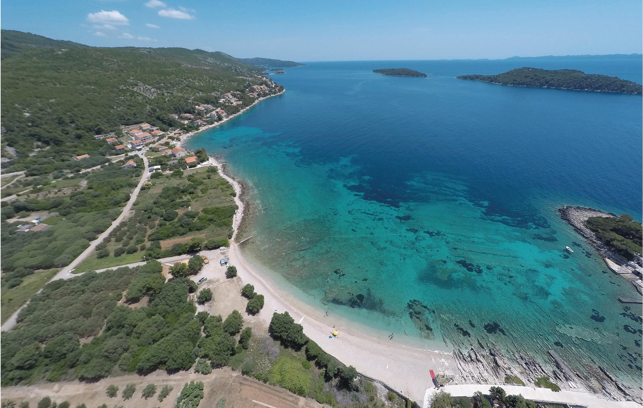 I den solrige Prižbabugt, på øens sydside, ligger dette feriehus med pool. Det strækker sig på to etager der er forbundet med udendørs trapper og er ideelt til ferie for den helt store familie eller til en gruppe af venner. Huset er stilfuldt indrettet med alt til et behageligt ophold. Fra begge altaner er der en betagende panoramaudsigt over havet. I kan også vælge at hoppe en tur i husets egen pool. Kun få skridt adskiller jer fra den børnevenlige kiesstrand og fra egnens små lokale restauranter, hvor der serveres retter lavet af autentiske råvarer og opskrifter. Besøg også byen Korcula med mange former for kultur og hvorfra der sejler både ud til de mange øer i omgivelserne.