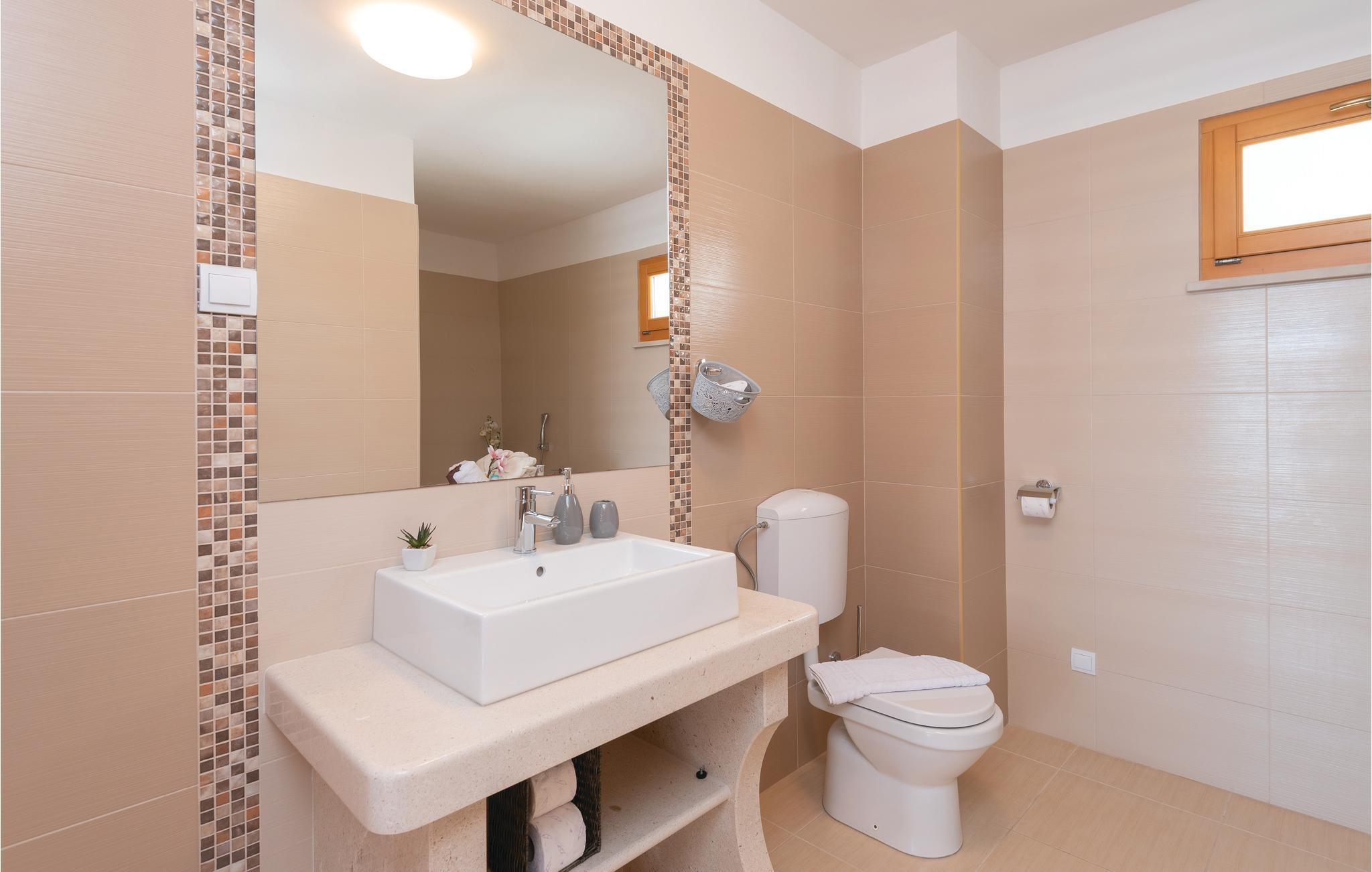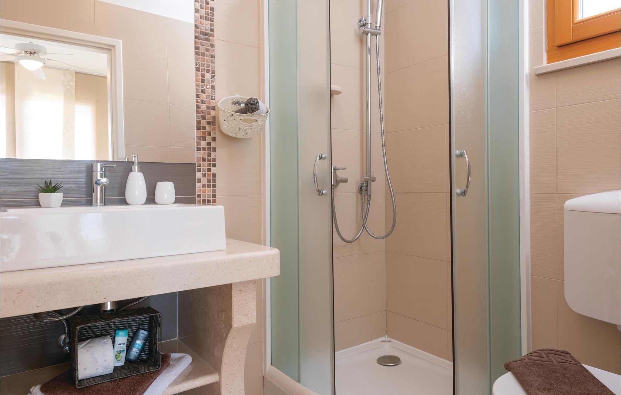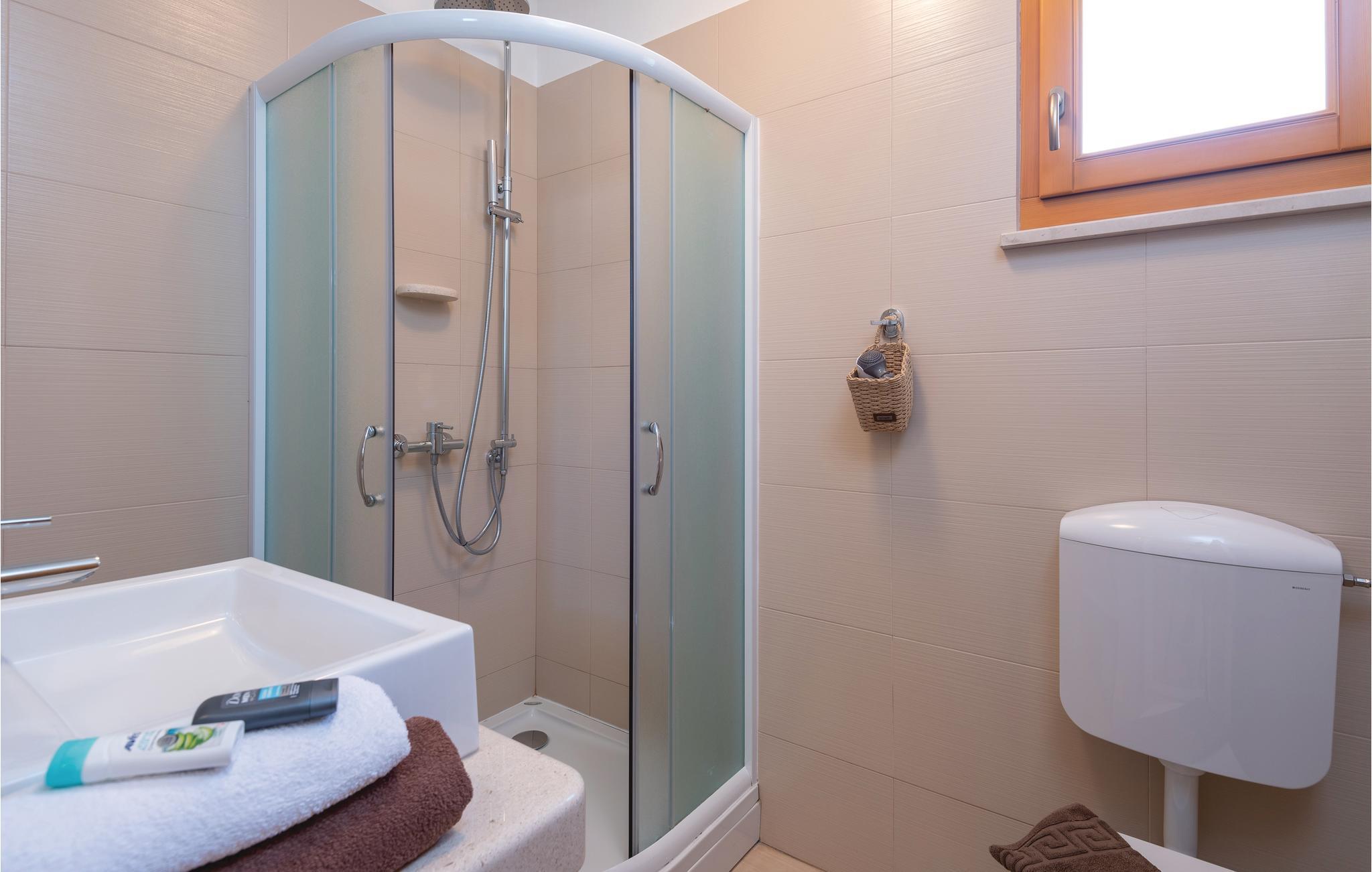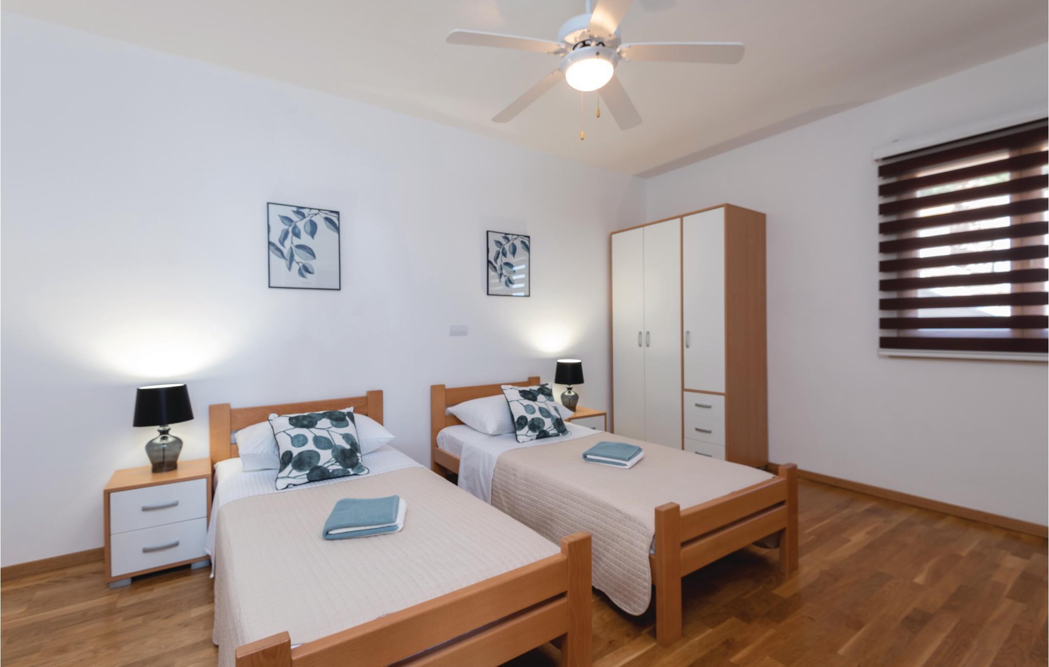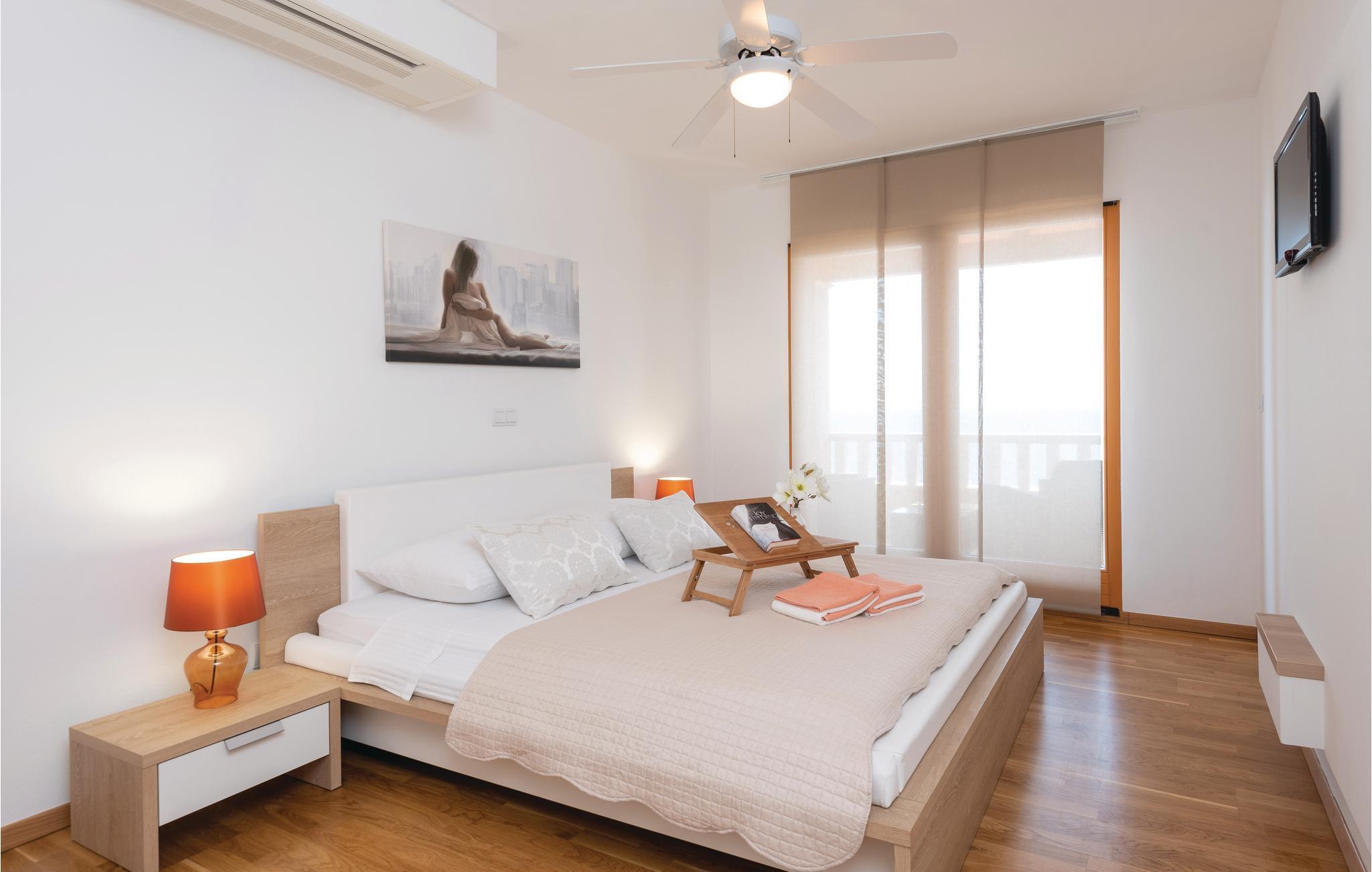 Et par trapper fører fra havet op til den skønne stenterrasse med parasoller og liggestole, hvorfra der er panoramaudsigt til et af de skønneste øhav i Adriaterhavet. Andre trapper fører jer til terrassen med saltvandspool, hvor I sandsynligvis vil tilbringe mest tid for at flygte for sommerheden. Spillerummet med et billardbord, bordfodbold og to computere med internettilslutning ligger lige i forlængelse af denne terrasse. Ved siden af ligger der et rum med whirlpool, hvor I kan slappe af og simpelt hen nyde den skønne udsigt over havet. Rummet ved siden af spillerummet er velegnet til venner af den aktive ferie, da der her er en finsk sauna og fitnessudstyr. Fra hvert værelse har I en skøn udsigt til havet. Indvendige trapper fører op til 1. sal, hvor der er et rummeligt køkken, spisestue og dagligstue med direkte adgang til den overdækkede terrasse med bord og kamingrill. Her kan I nyde aftenen, mens I nipper til jeres yndlingsdrink og fortæller hinanden om dagen begivenheder. På samme etage ligger der to soveværelser med separate badeværelser. På 2. sal er der tre luksuøse soveværelser til, hvert med eget bad og terrasse. Det helt rigtige til den afslappende ferie. Nyd det!