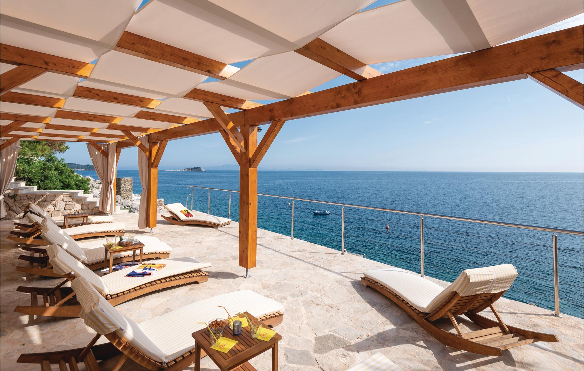 Kombinationen af luksus, komfort og udstyr af højeste kvalitet er kun nogle af de træk, der gør dette feriehus til et godt valg. Det ligger direkte ved havet, så i også kan komme hertil med en lille yacht eller en båd, neden for huset er der en anløbsplads.