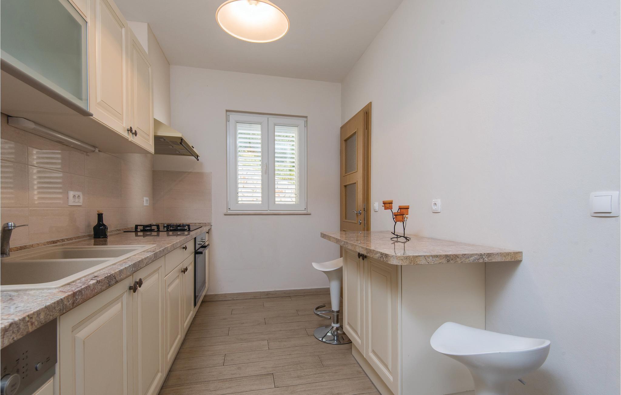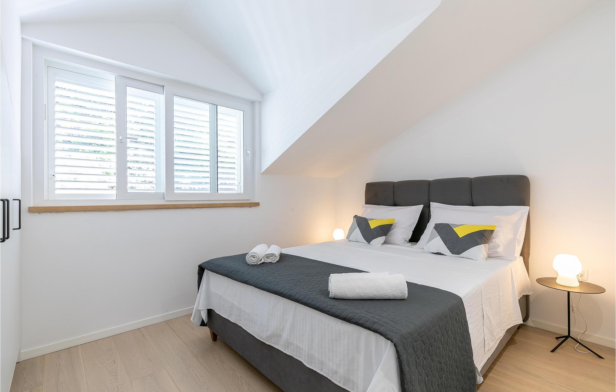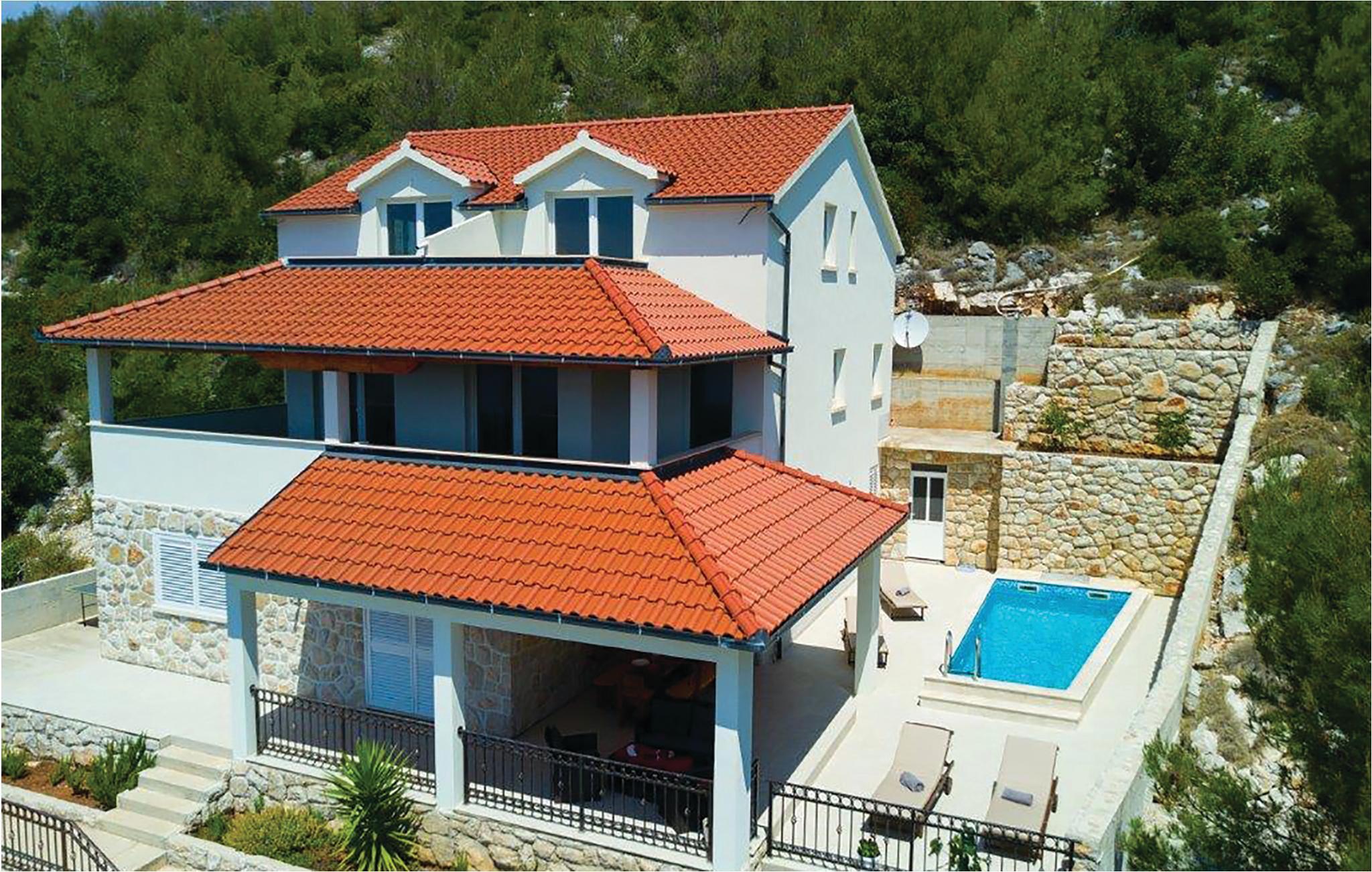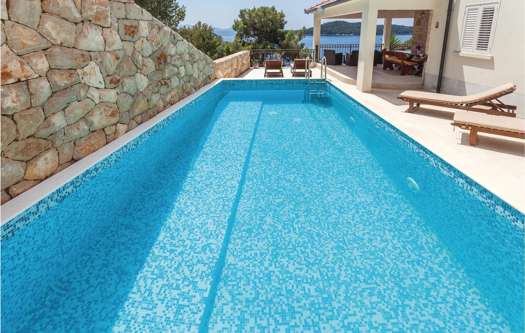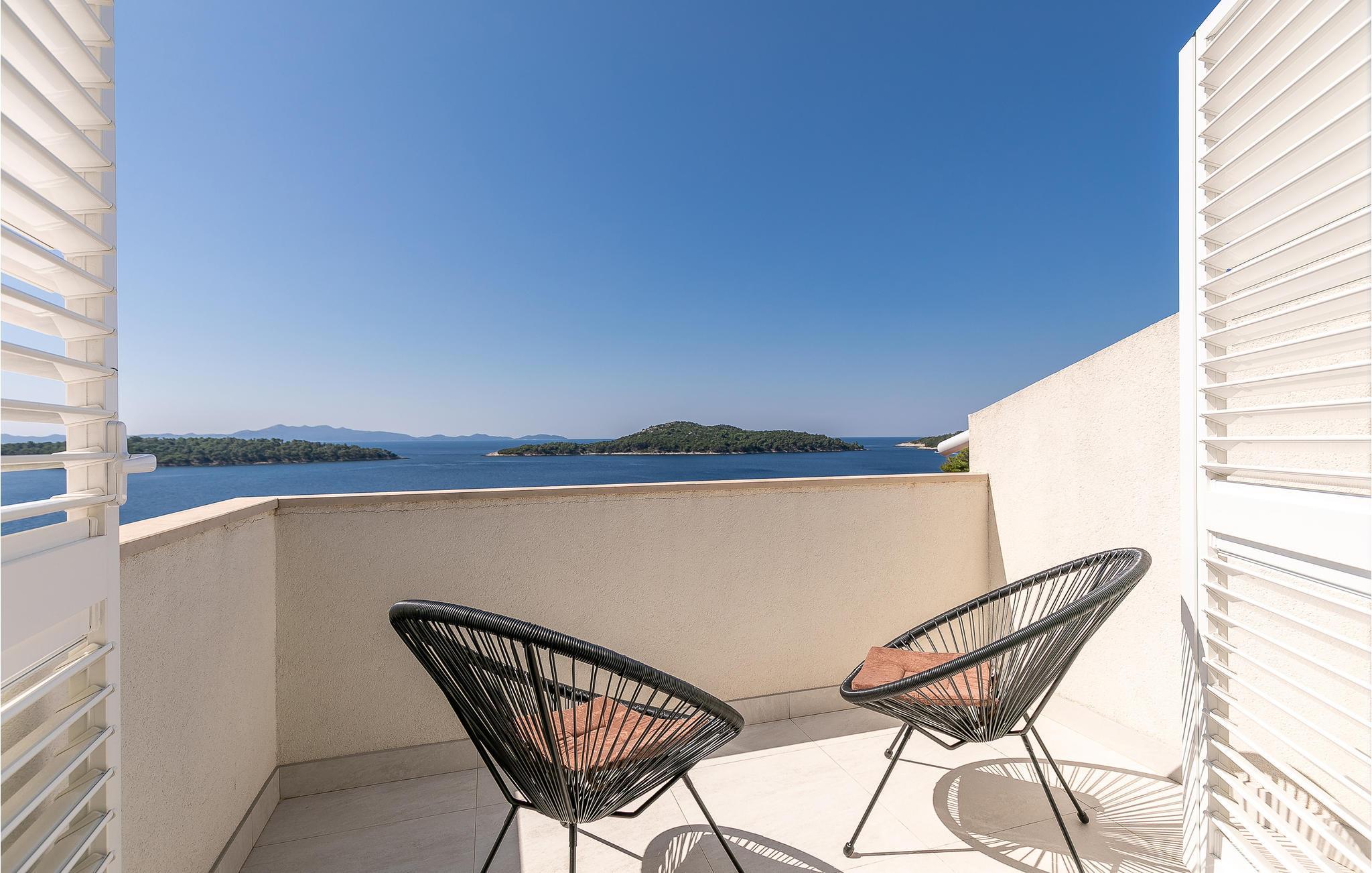Det moderne feriehus med pool ligger på en bakketop på øen Korcula, i regionen med flest solskinstimer. Glæd jer til at tilbringe mange afslappende timer sammen med familie eller venner i den hyggelige opholdsstue. Start dagen med en træningssession i fitnesslokalet, inden I nyder morgenmaden på terrassen. I kan også tage en forfriskende dukkert i poolen, og nyde den fantastiske panoramaudsigt ud over havet og de omgivende øer. Huset ligger ud til en landevej, men takket være beliggenheden er der masser af privatliv.