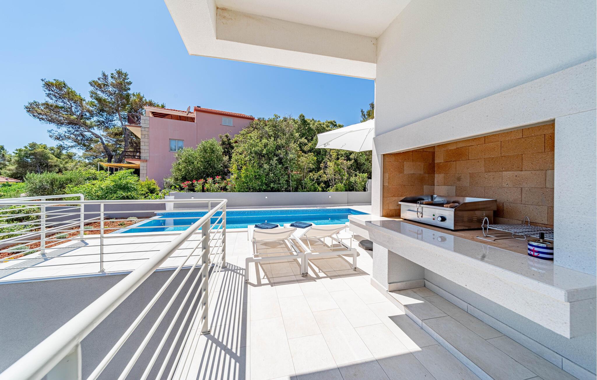 På øen Korcula finder I dette smukke feriehus med pool og udsigt over havet.