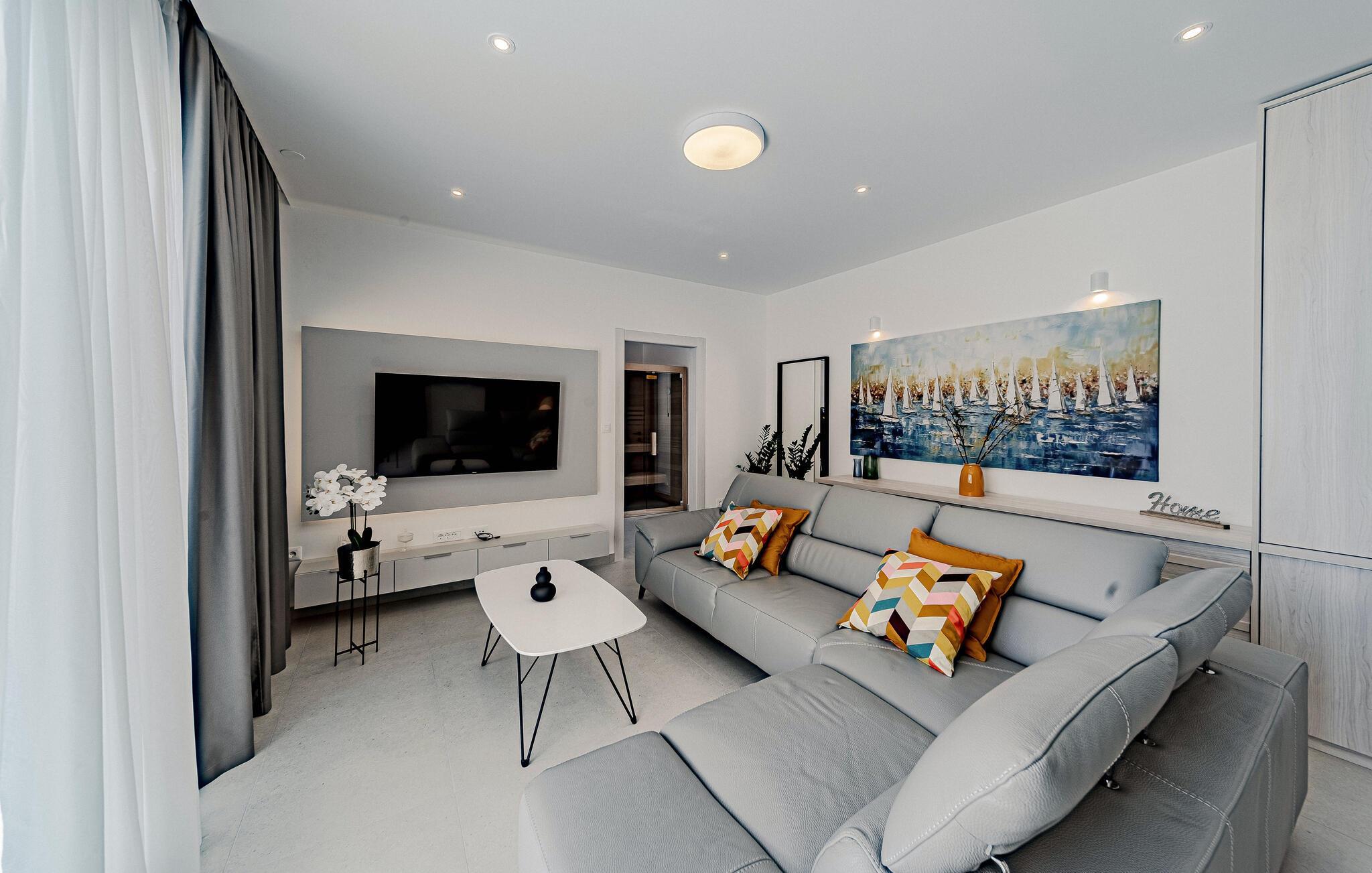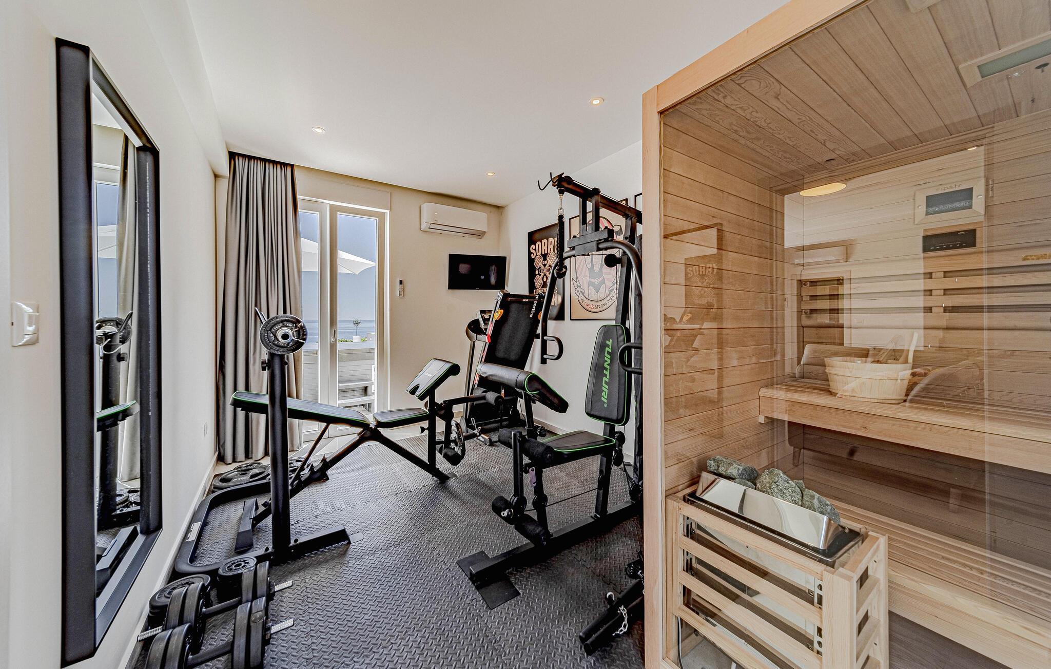 Velkommen til dette vidunderlige hus, hvor I kan finde ro og samtidig gøre brug af husets mange fordele. Nyd den høje kvalitet og komfort på to etager, og føl jer straks hjemme i de smukt indrettede rum. Mens overetagen byder på nogle dejlige soveværelser, lægger stueetagen op til hyggeligt samvær i det åbne opholdsrum samt til sport og wellness. Få pulsen op med husets fitnessudstyr, og slap efter et kort brusebad af i saunaen, spabadet eller poolen på terrassen. Nyd udsigten over havet, tænd op for grillen, og nyd et glas vin om aftenen, mens I følger solnedgangen.