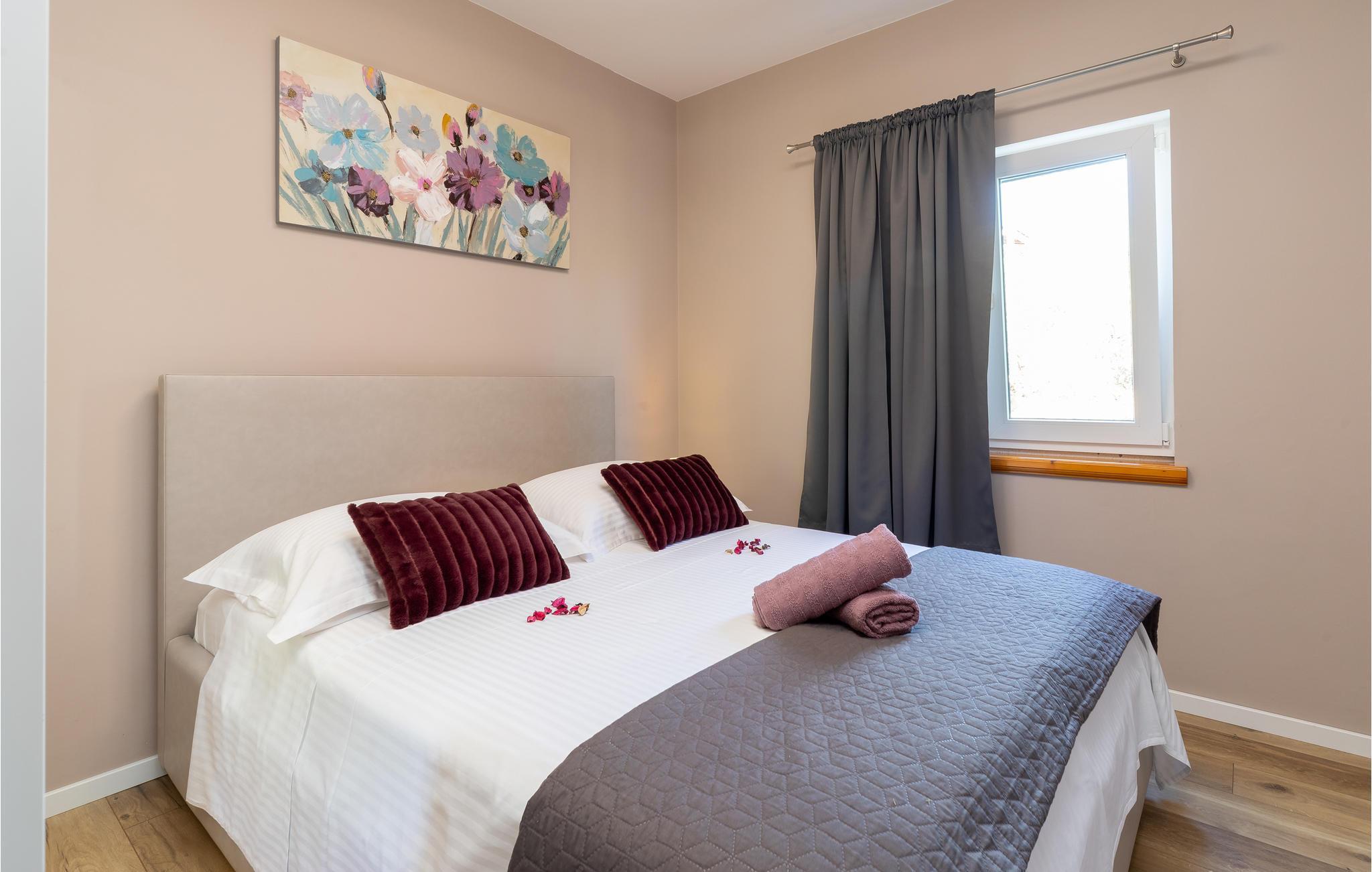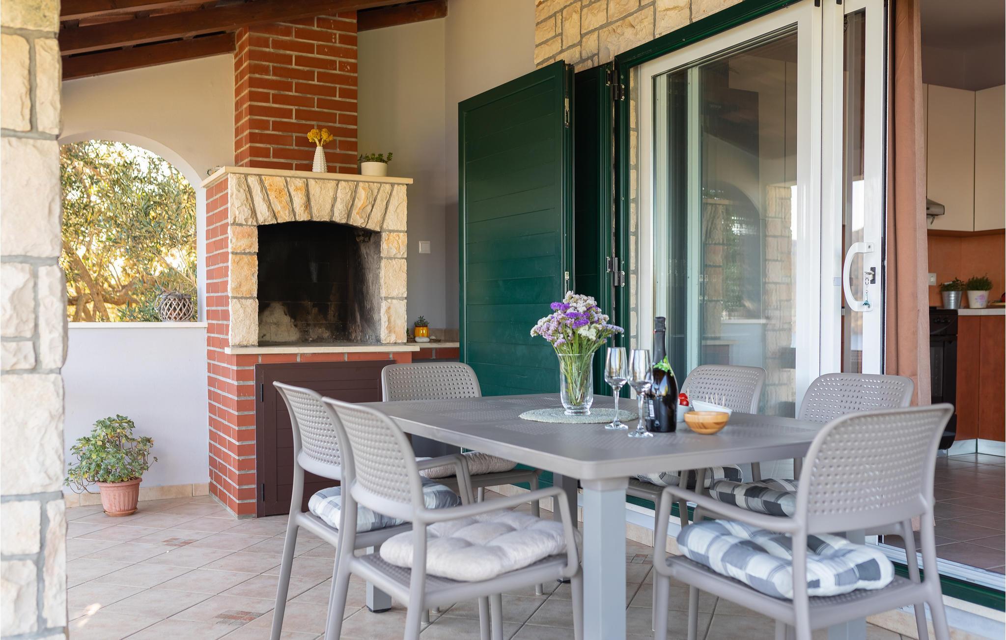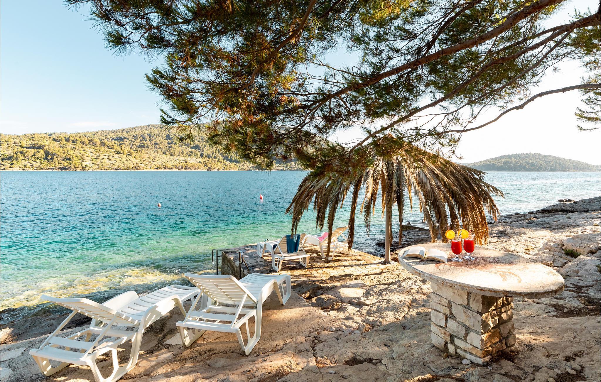 Nyd jeres ferie omgivet af pinjetræer ved havet. Dette hus består af to enheder, som er forbundet med hinanden ved hjælp af en ydre trappe. Det er smukt og komfortabelt indrettet og råder over en skøn, solbeskinnet terrasse. Via en skovvej når I hen til en klippestrand i nærheden og til en grusstrand. I Vela Lukas centrum finder I talrige gastronomiske tilbud og mange underholdningsmuligheder for hele familien. Udelukkende solenergi i huset. Husejeren tilbyder gratis bådudflugt til den smukke ø Proizd. De sidste 300 meter frem til huset er en grusvej.