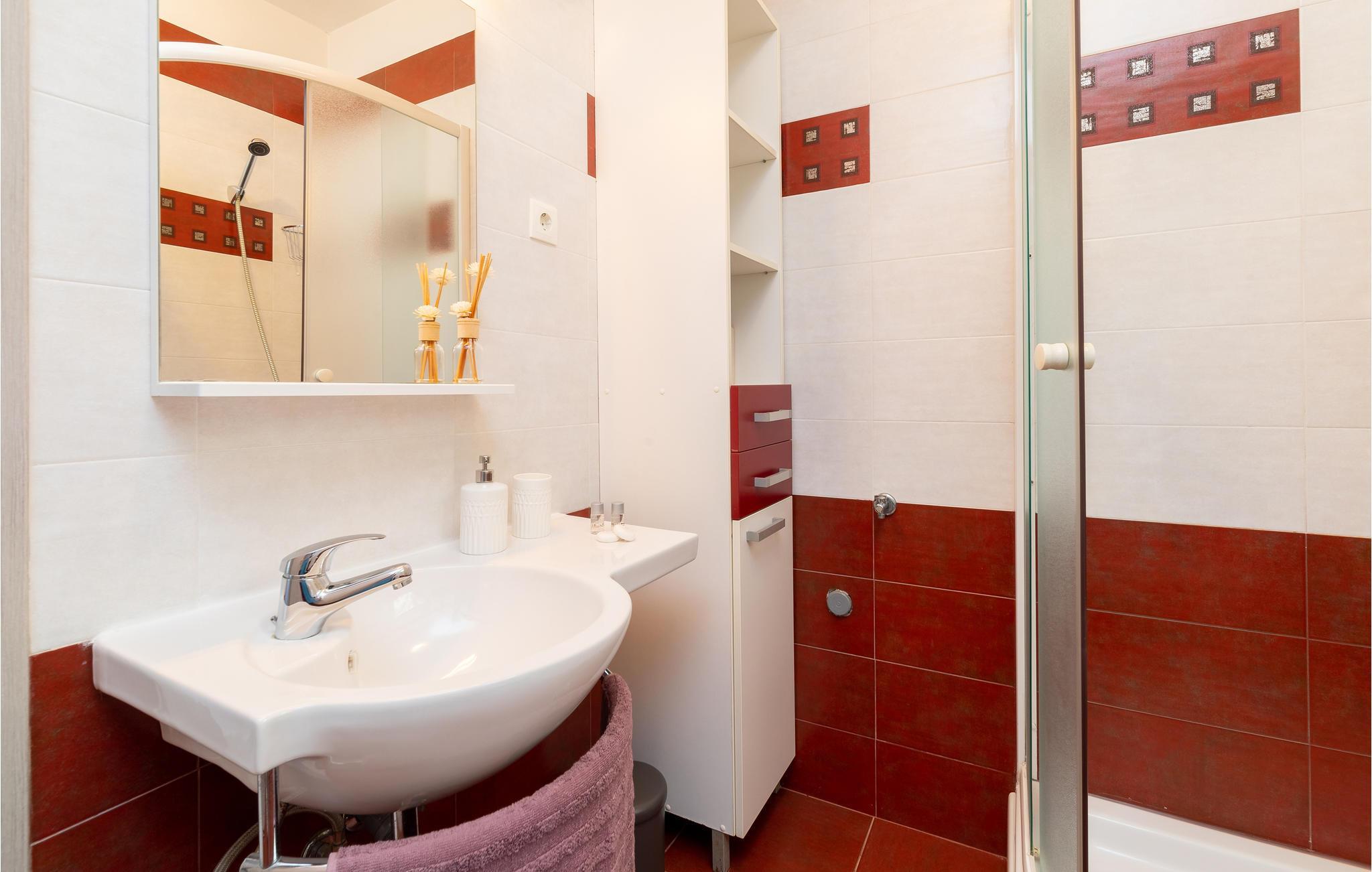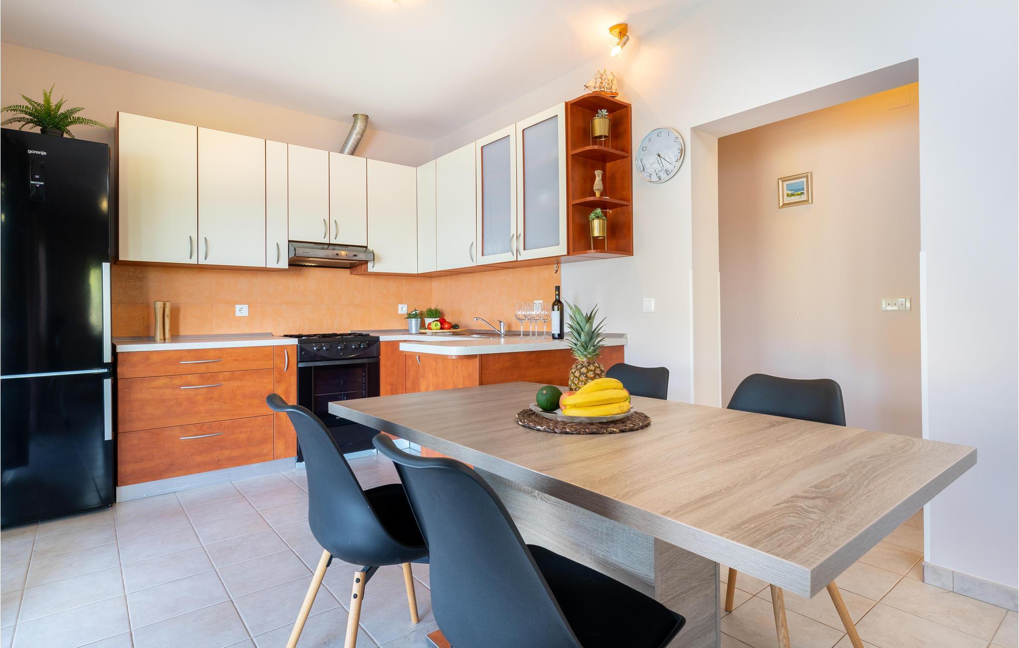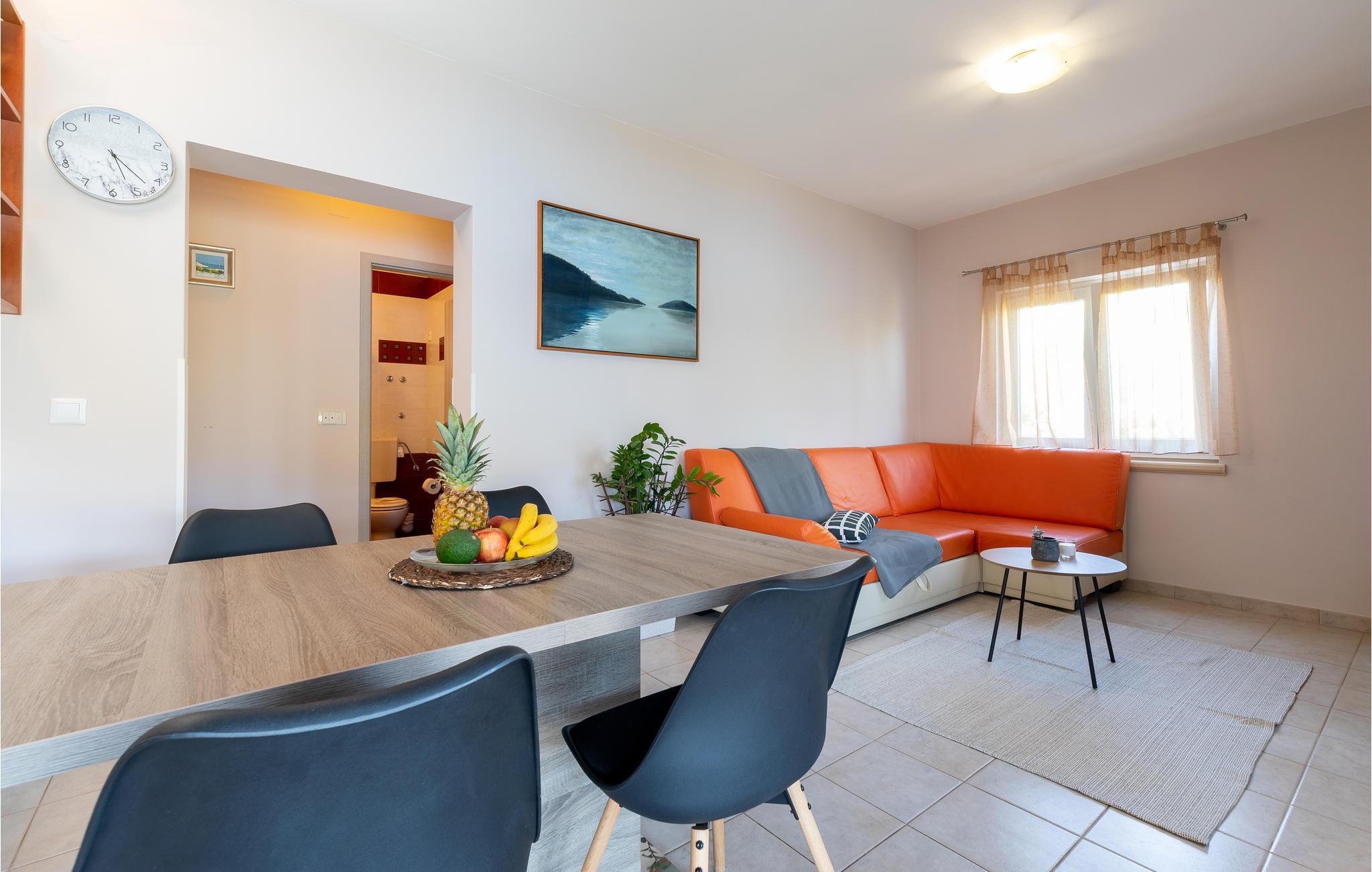 Nyd jeres ferie omgivet af pinjetræer ved havet. Dette hus består af to enheder, som er forbundet med hinanden ved hjælp af en ydre trappe. Det er smukt og komfortabelt indrettet og råder over en skøn, solbeskinnet terrasse. Via en skovvej når I hen til en klippestrand i nærheden og til en grusstrand. I Vela Lukas centrum finder I talrige gastronomiske tilbud og mange underholdningsmuligheder for hele familien. Udelukkende solenergi i huset. Husejeren tilbyder gratis bådudflugt til den smukke ø Proizd. De sidste 300 meter frem til huset er en grusvej.