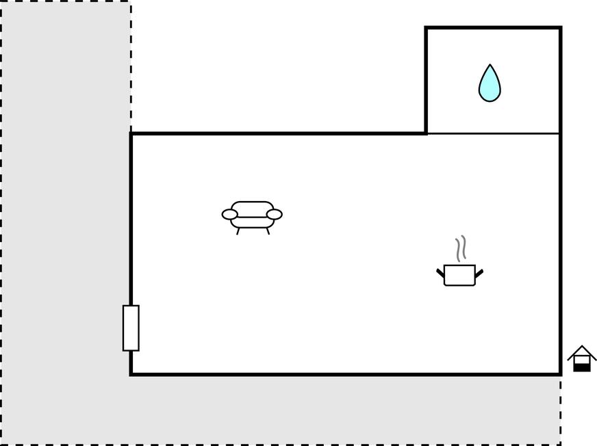 Opholdsstue/køkken 40m2 - 2 Sovepladser. (Sofa, madras eller lignende).