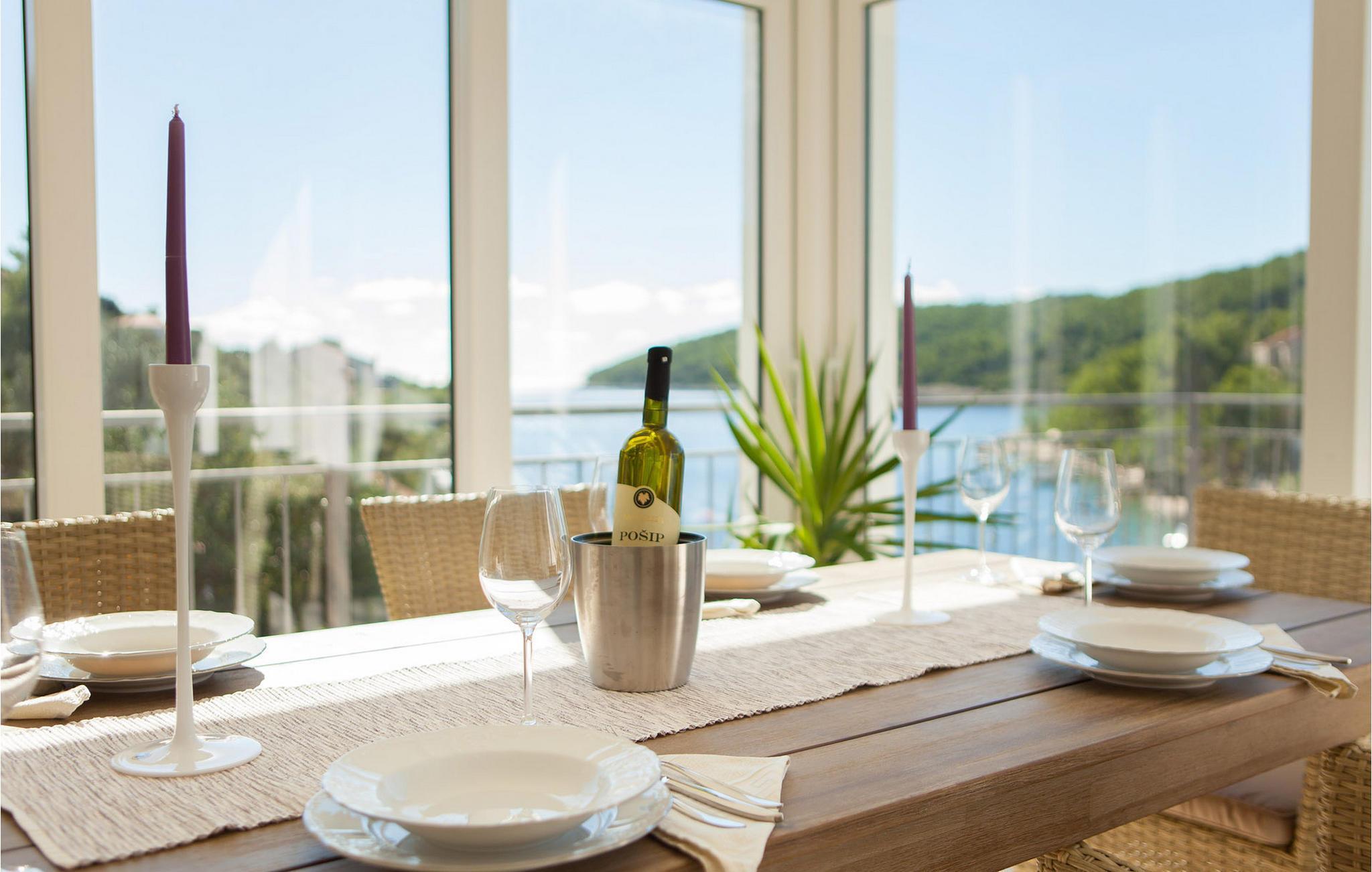 Tilbring jeres drømmeferie i dette rummelige feriehus med pool og havudsigt i en idyllisk beliggenhed. Beliggende i den rolige bugt Vela Luka og omgivet af frodig middelhavsvegetation, byder den fortryllende naturstensvilla Villa Oliver jer velkommen. Dens tre separate boligenheder har hver sit eget køkken og en hyggelig, komfortabel opholdsstue - ideelt til en ferie med venner eller flere familier. Spis og lav mad sammen eller alene, mød jer til sjove spilleaftener eller træk jer tilbage til jeres yndlingssted med jeres ferielæsning. I den smukke pool kan I afslappende svømme baner i den milde morgensol, inden I planlægger jeres dag med morgenmad med udsigt over den romantiske bugt. Lad batterierne op på en liggestol eller nyd den fredelige atmosfære med et glas vin på balkonen. En stor udendørs pejs venter jer på bagterrassen, hvor I kan snakke i de lune sommernætter under stemningsfulde grillaftener. Vela Luka tilbyder et bredt udvalg af fritidsaktiviteter og et varieret sommerprogram. Gourmeter vil nyde et bredt udvalg af fremragende restauranter, og aktive feriegæster vil finde masser at nyde med sejlads eller kajaksejlads. Oplev den farverige undervandsverden, mens I dykker eller snorkler eller cykl gennem vinmarkerne i Lumbarda. Gå en tur gennem de smalle gader i Korculas gamle bydel, tag en bådtur til øerne Lastovo eller Mljet med deres idylliske strande, og forkæl jer selv med regionale specialiteter på en traditionel taverna.