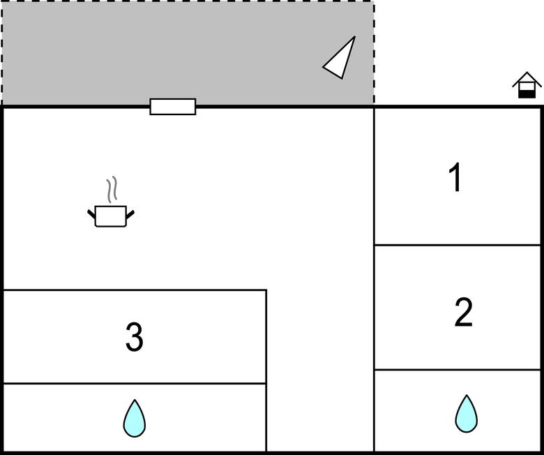 Badeværelse 3m2 (nr. 1) - WC. Varmt og koldt vand. Bruser