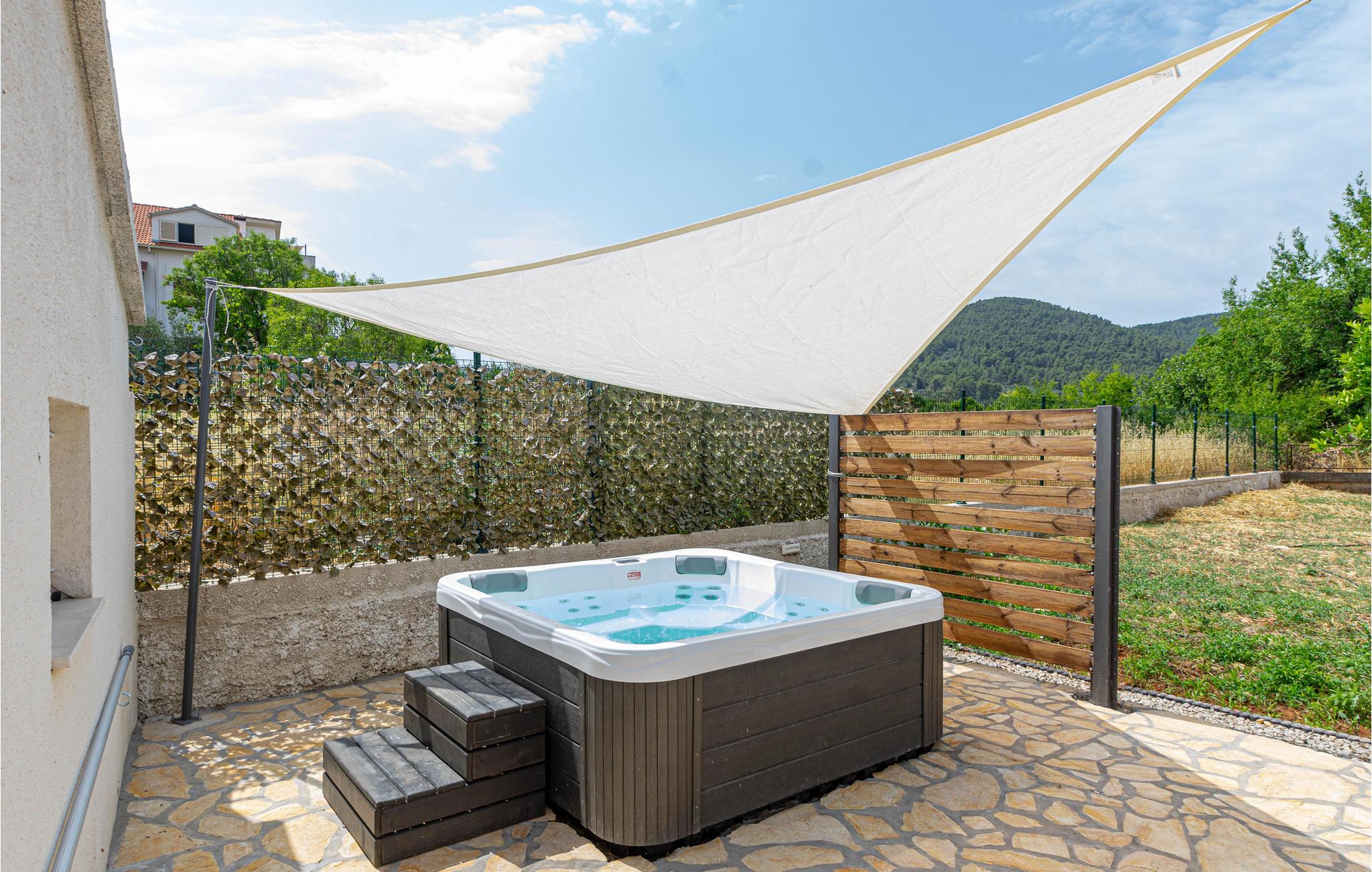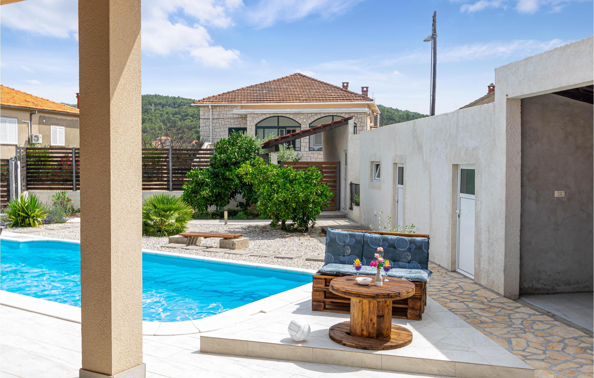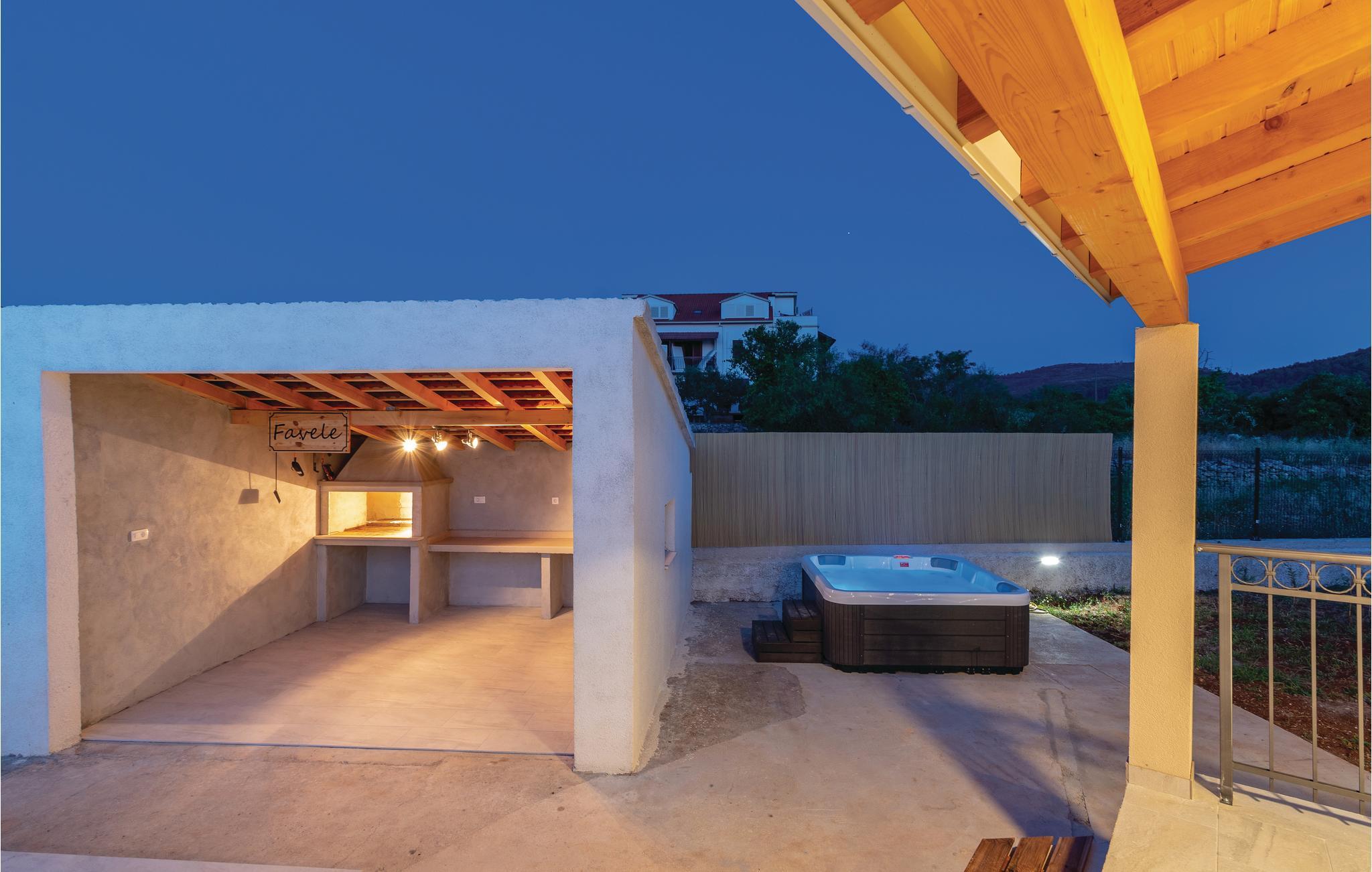 I en rolig bydel i Vela Luka ligger dette renoverede feriehus med pool. Det ligger på en velplejet og indhegnet grund der er velegnet hvis I har mindre børn med. Husets indre er enkelt og praktisk indrettet og lever om til nutidens krav til komfort. Fra stuen med køkken er der dør ud til den overdækkede terrasse, og derfra kun få skridt til afslapningsområde med pool, whirlpool og det udendørs køkken med grill. Der er kun 500 m til Vela Lukas centrum, hvor der er mange former for aktiviteter. I denne region kan I cykle, fiske, vandre og meget andet.