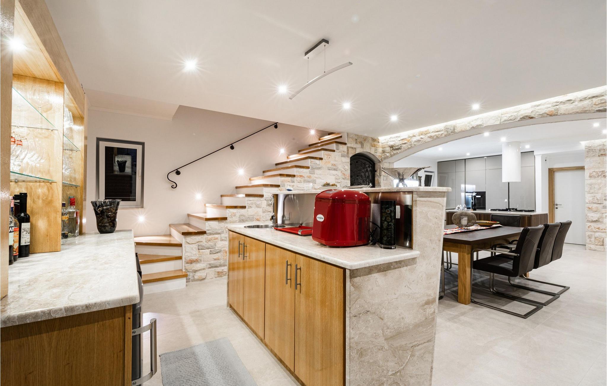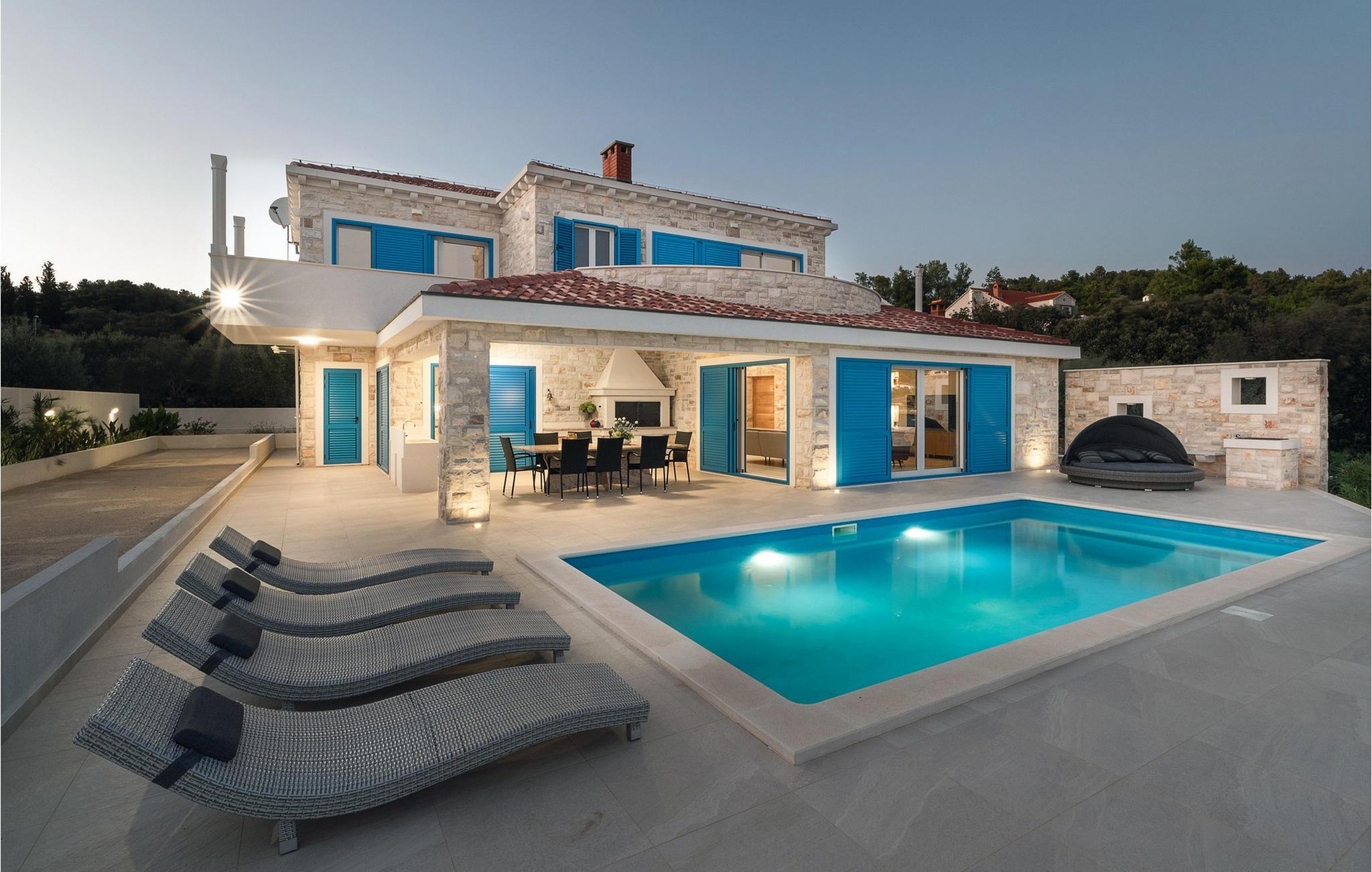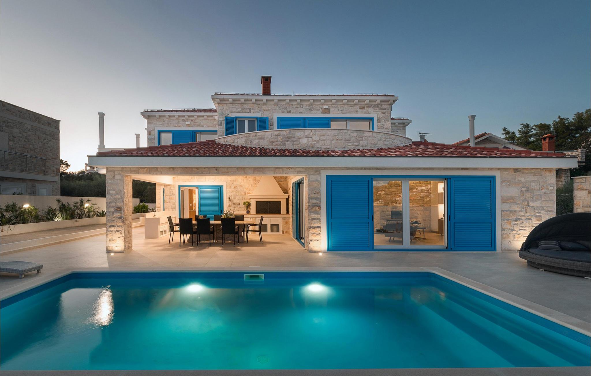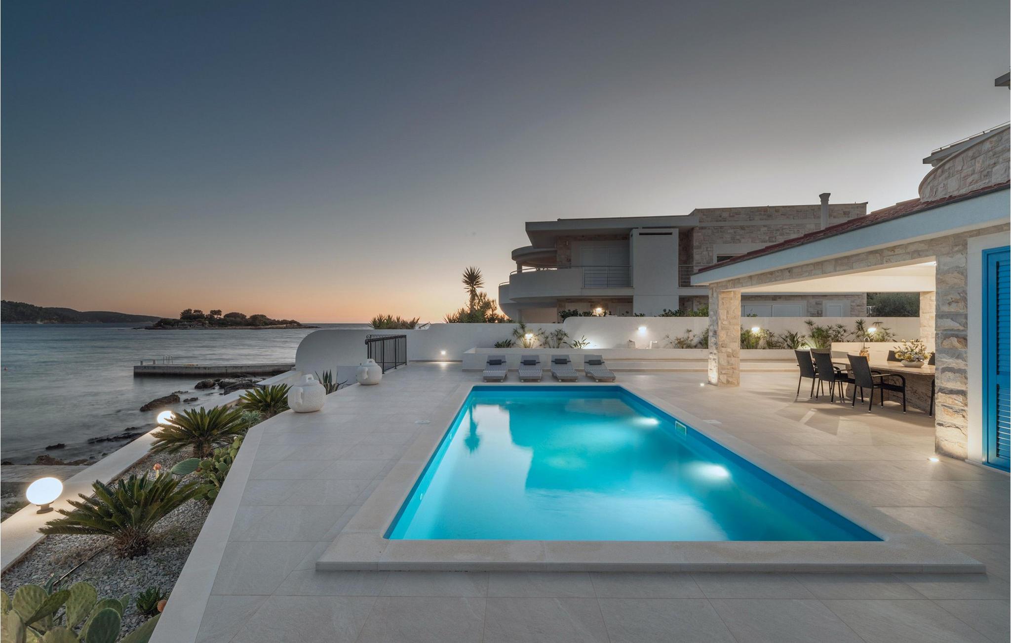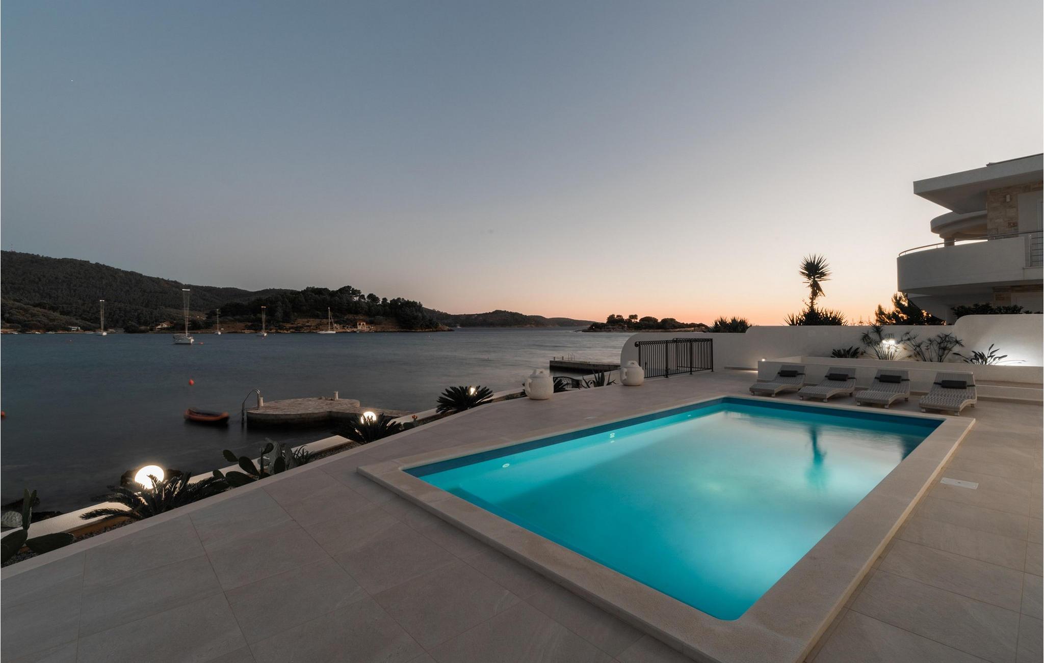 Den smukke Villa Azzuro har en privilegeret beliggenhed ved den maleriske Gradina-bugt og har et rummeligt interiør af høj kvalitet. Skab kulinariske lækkerier i det moderne designerkøkken og fejr stilfulde måltider med venner eller familie. Efter en lang, solrig dag kan I slappe af i den elegante stue, se en film sammen eller mindes over en god vin.