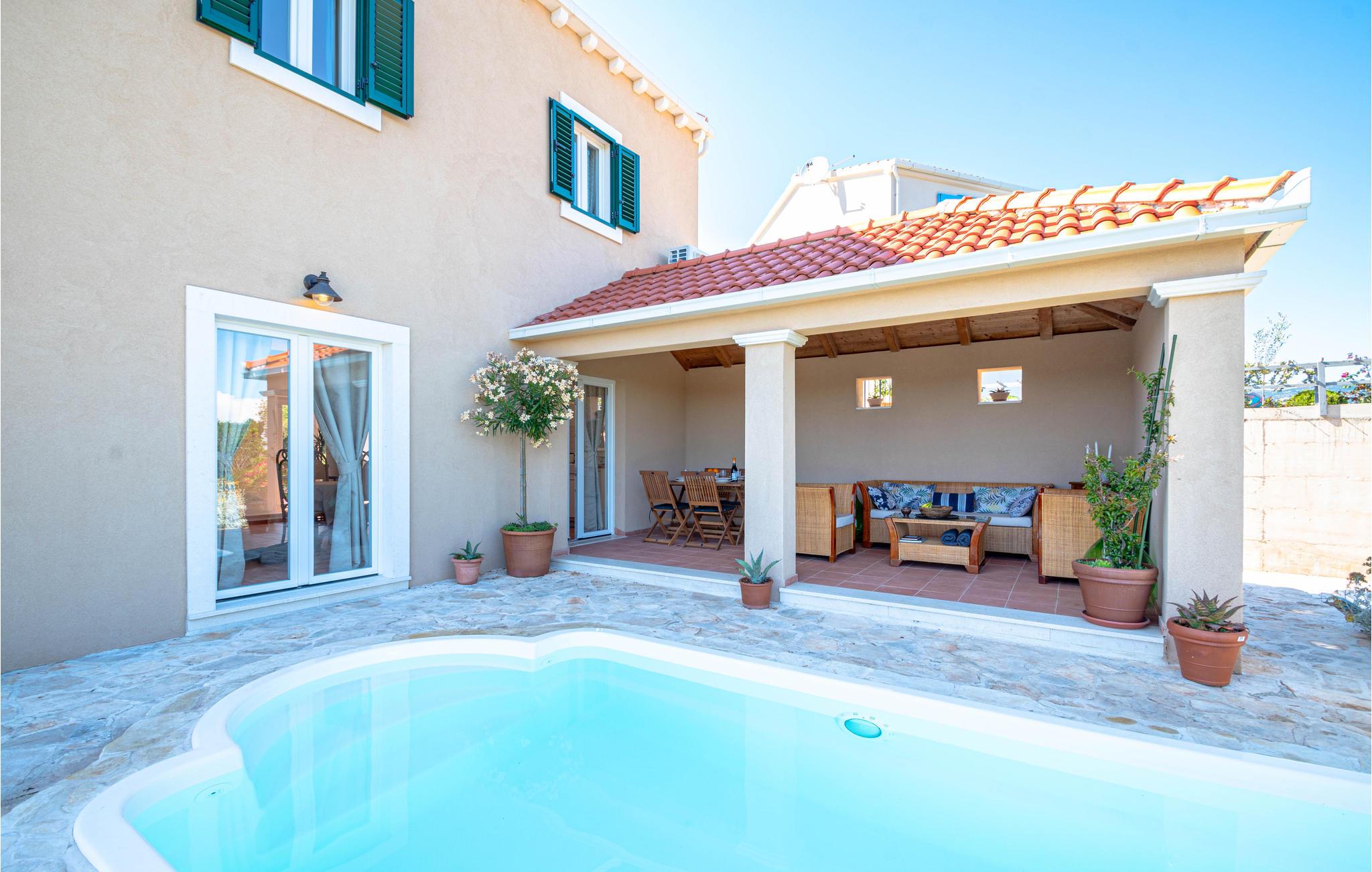 Det komfortable interiør både indvendig og udvendig passer perfekt til Middelhavsområdet. Fra denne gamle øby, som har bevaret sin oprindelige arkitektur og traditionelle atmosfære på mange måder, er I kun et par kilometer væk fra det rige turisttilbud i byen Korcula, hvor huset ligger, som menes at være fødestedet til Marco Polo.