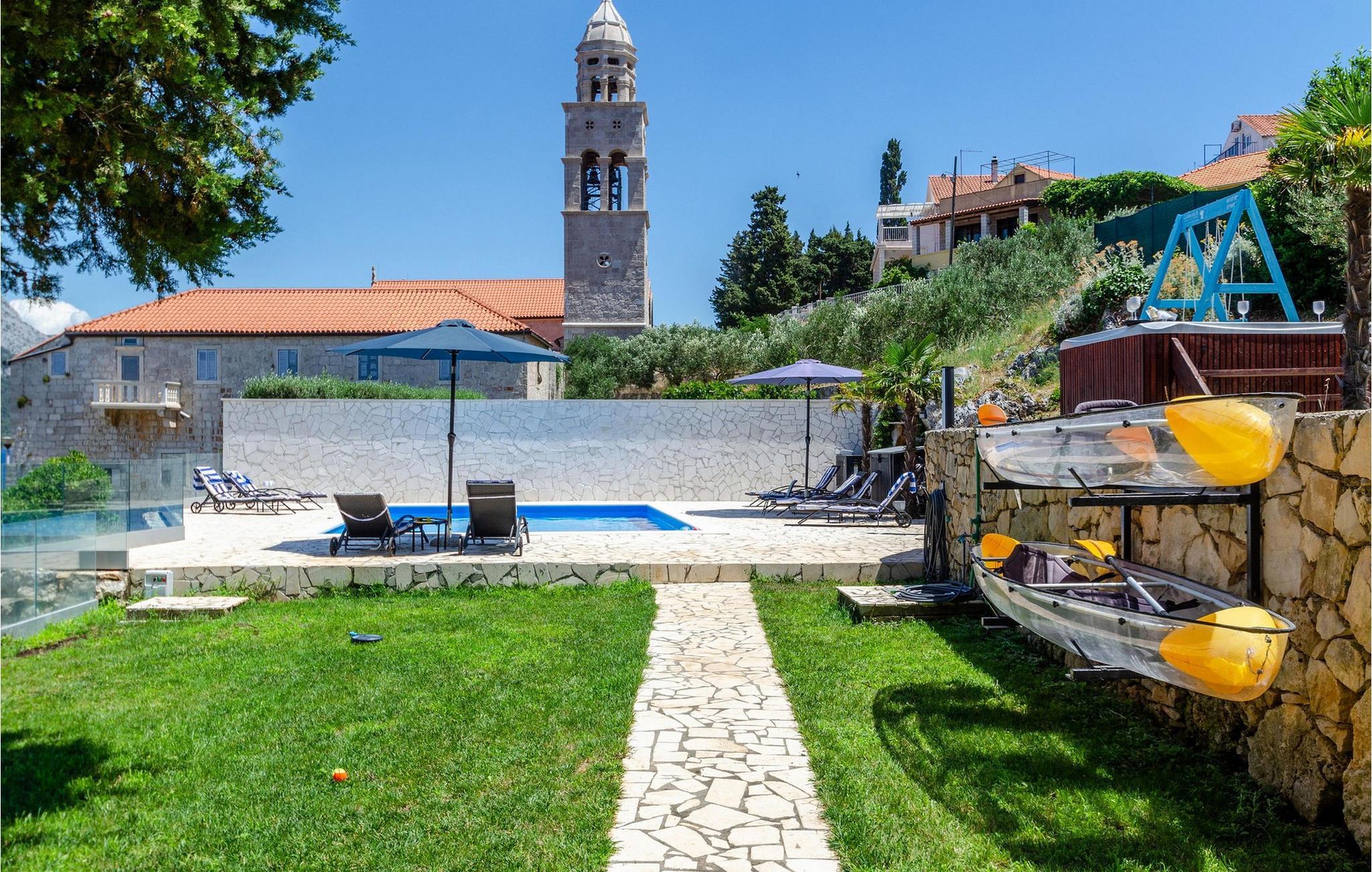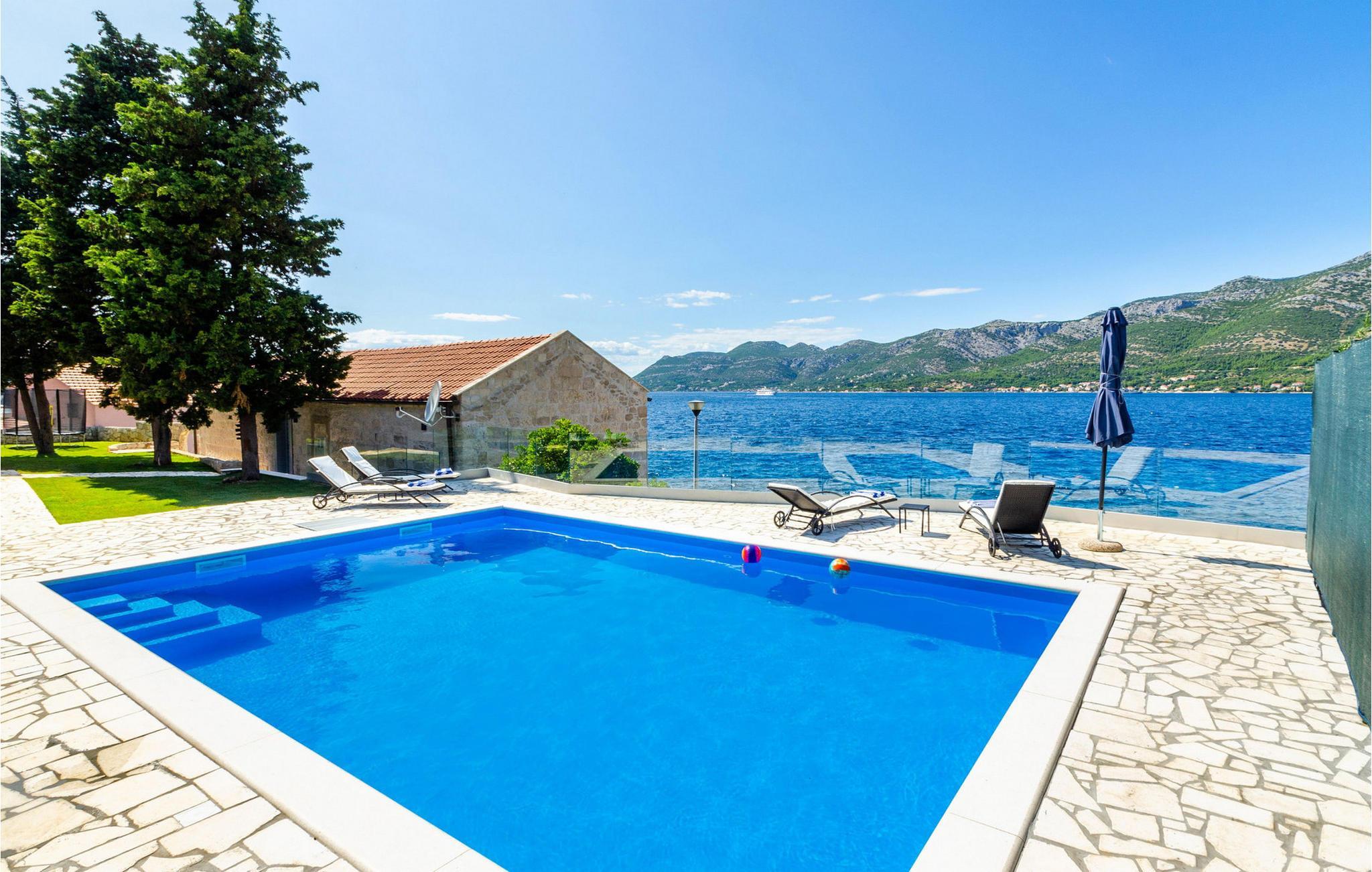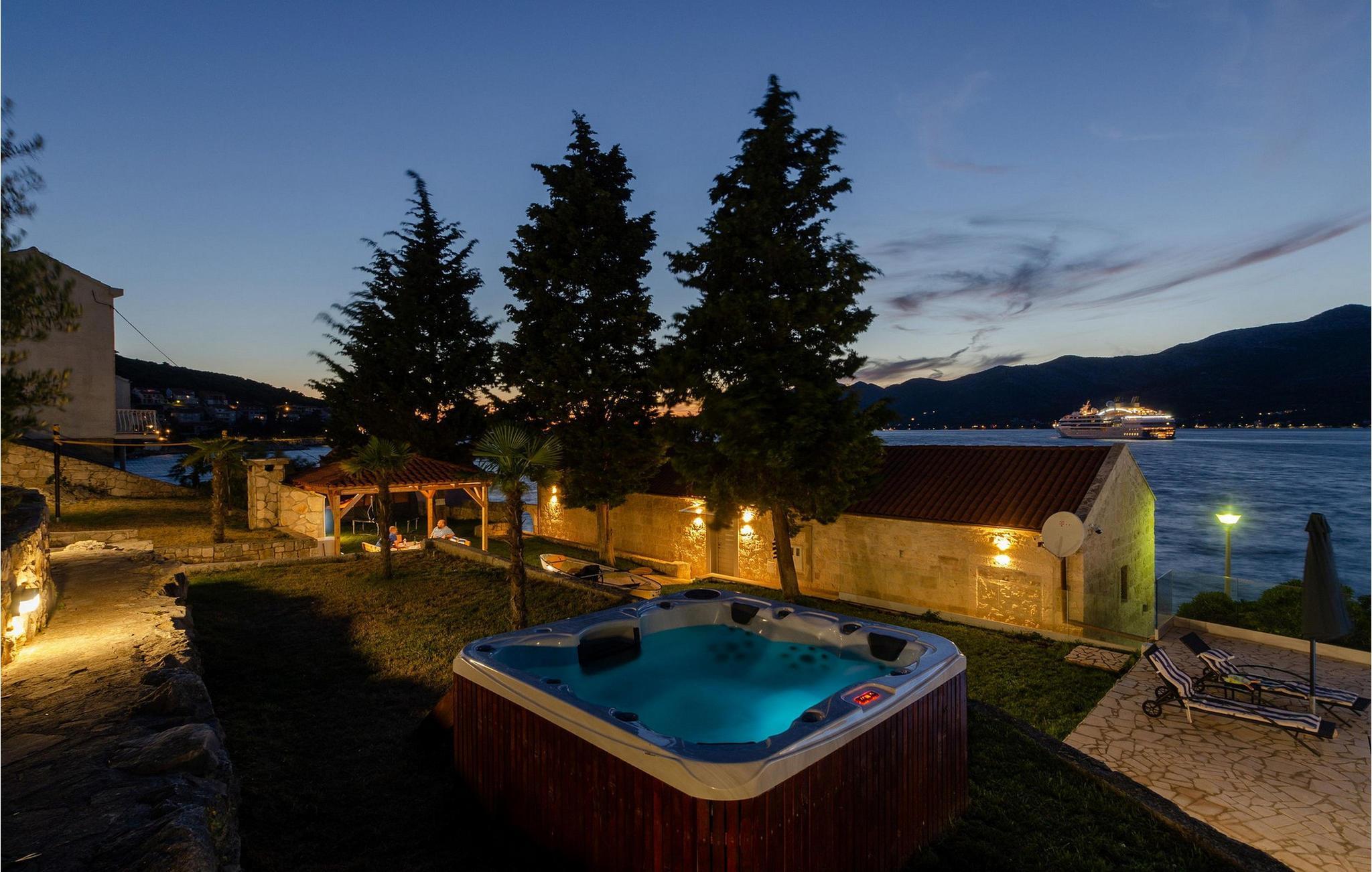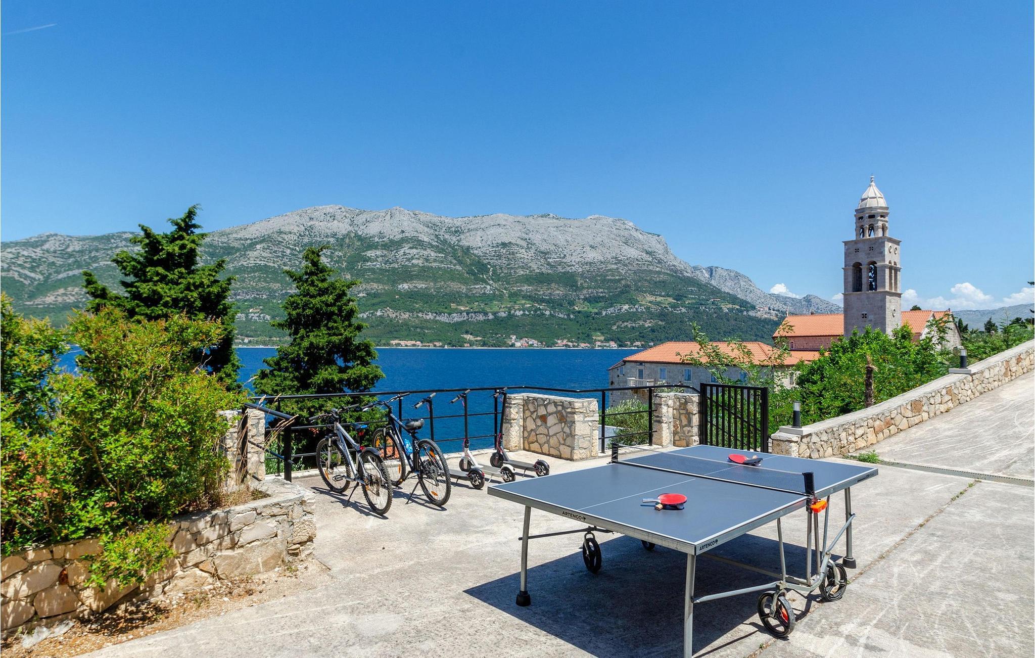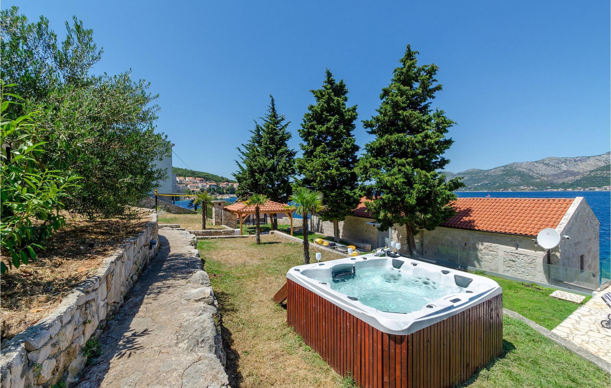Slap af i denne luksuriøse villa med en fantastisk beliggenhed og fortryllende havudsigt. Den stilfulde naturstensvilla Gabriela Korcula er noget særligt med sin blanding af suveræn komfort og traditionel charme. Fremstil lækre retter i det moderne køkken, og glæd jer til hyggelige måltider i den stilfulde spisestue. Spil billard, brug fitnessudstyret til jeres træning, og saml jer til stimulerende samtaler under det rustikke hvælvede loft i stuen. Terrassen ved siden af opholdsstuen lægger op til at solbade og slappe af, ledsaget af havets beroligende lyde. Efter en dukkert i havet kan I slappe af i den opvarmede pool, spabadet eller villaens rummelige have. Spil bordtennis, mens børnene morer sig på trampolinen, og fejr lune sommeraftener med en udendørs grill. Korcula er et paradis for opdagelsesrejsende. Den charmerende gamle bydel, ofte sammenlignet med Dubrovnik, byder på historiske monumenter og middelhavsstemning. Besøg afsidesliggende landsbyer, slap af på idylliske strande eller udforsk øen på cykel. Bemærk venligst: For unge eller ældre selskabsgrupper kan værten forhøje depositummet ti gange og inspicere huset regelmæssigt under opholdet. Fester, stofmisbrug eller uhøflig opførsel vil resultere i øjeblikkelig udsættelse uden refusion. Gæster bedes afklare detaljerne inden booking for at undgå misforståelser.