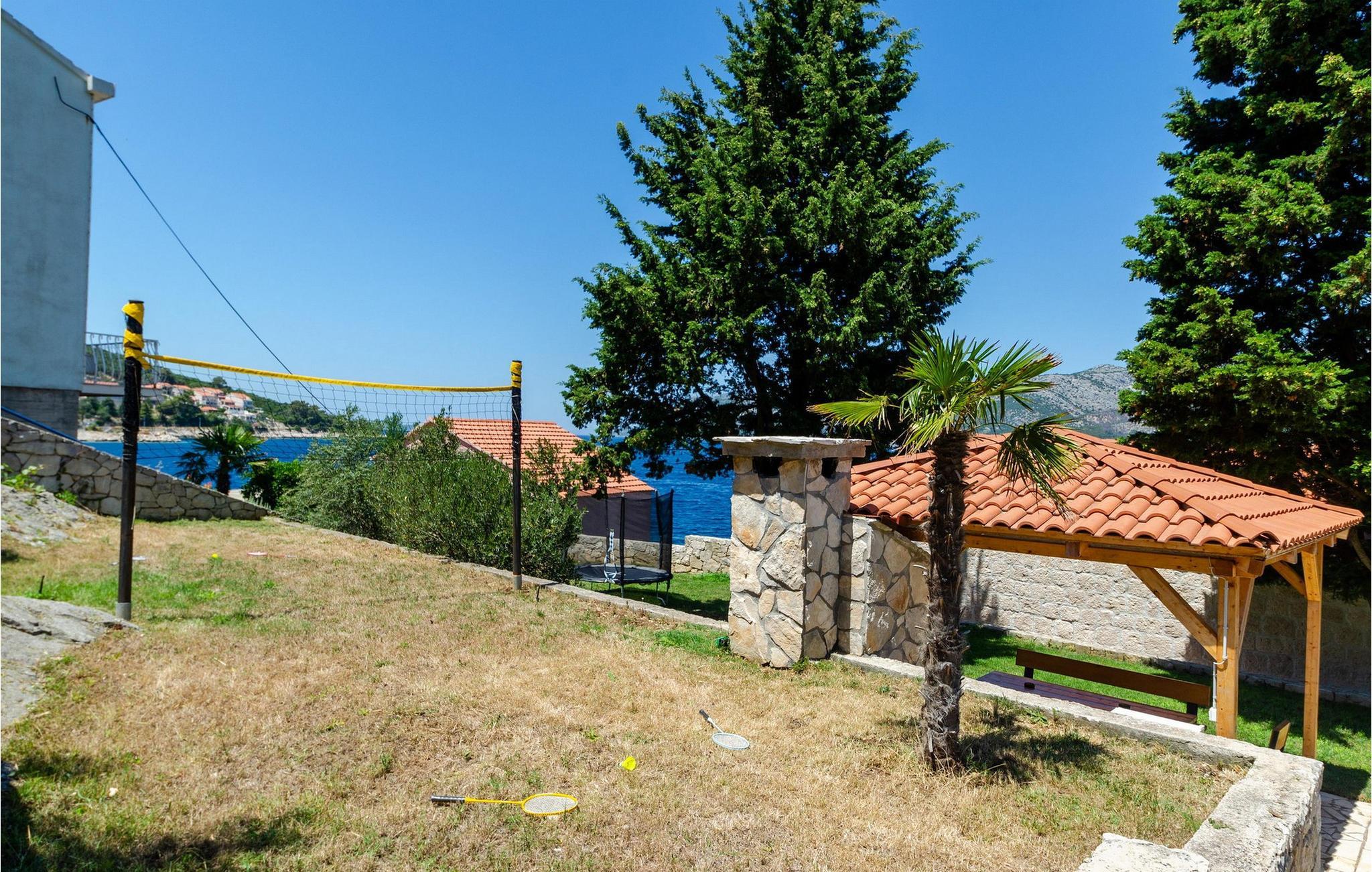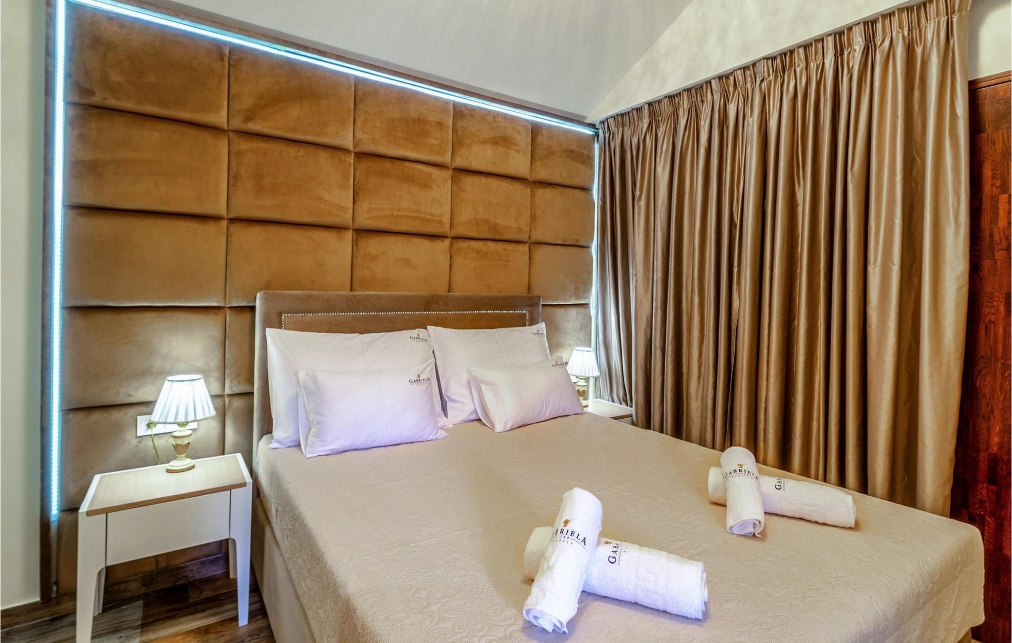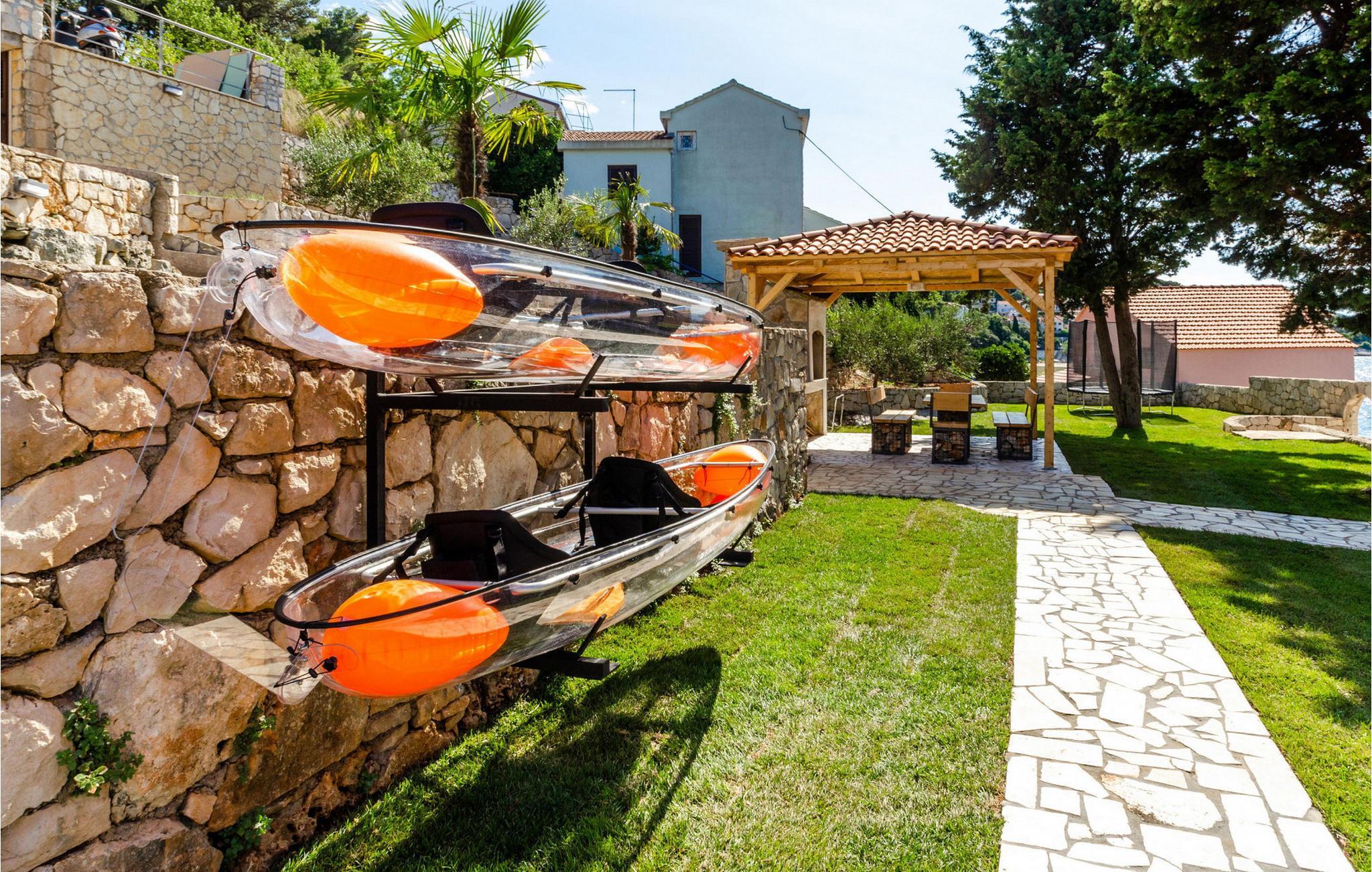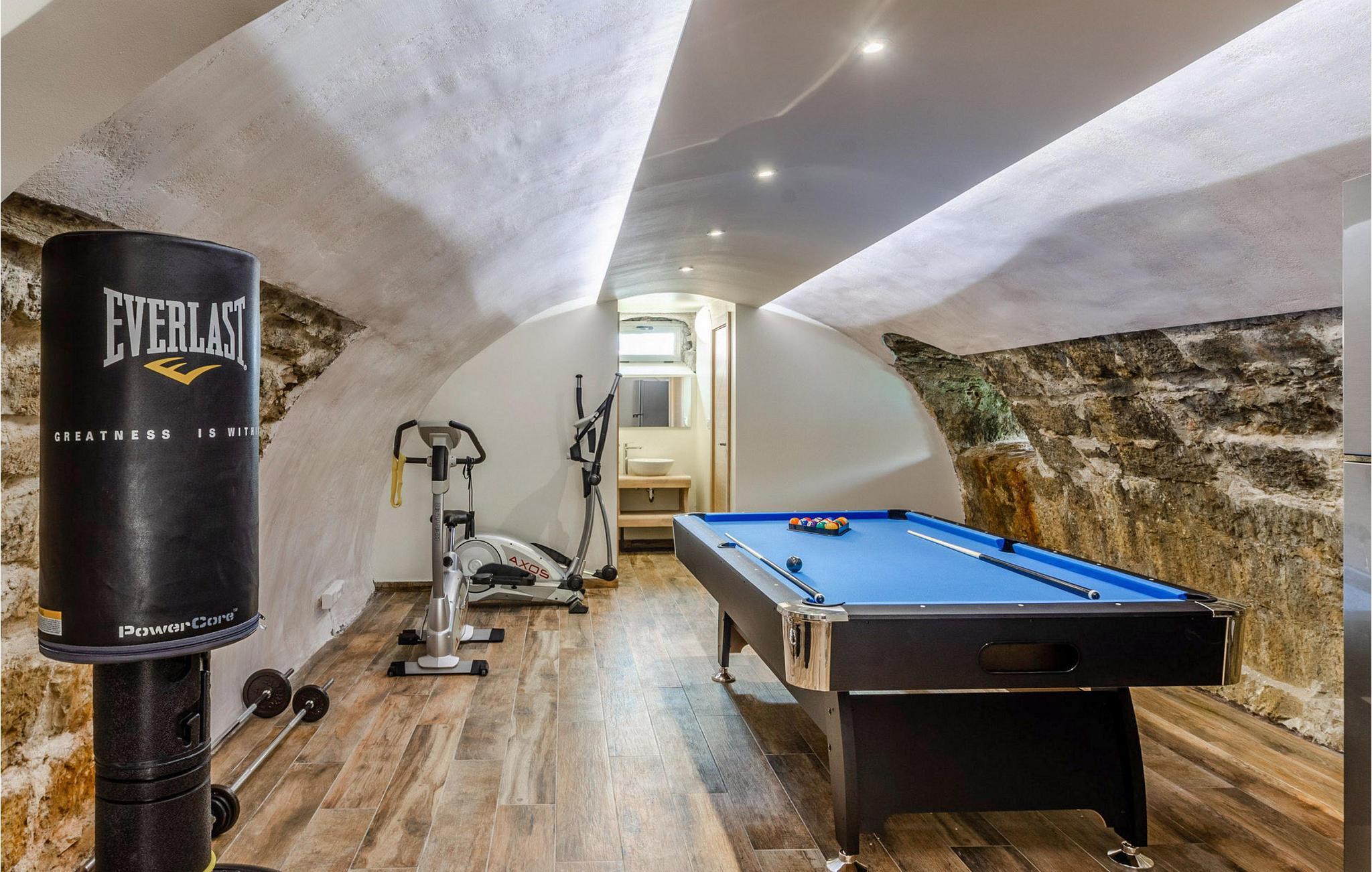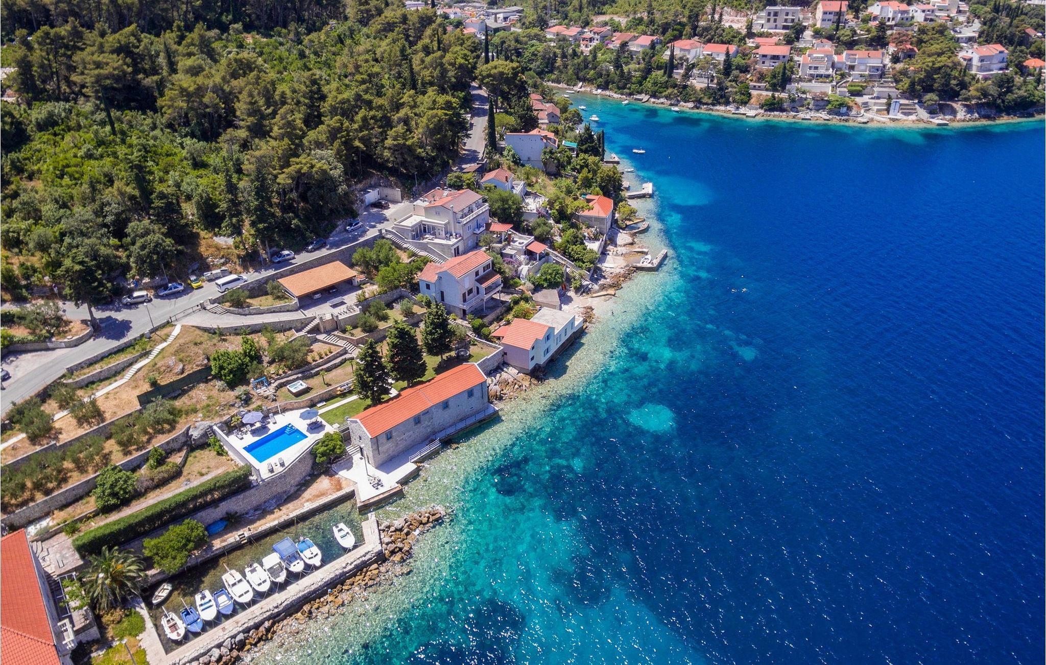 Slap af i denne luksuriøse villa med en fantastisk beliggenhed og fortryllende havudsigt. Den stilfulde naturstensvilla Gabriela Korcula er noget særligt med sin blanding af suveræn komfort og traditionel charme. Fremstil lækre retter i det moderne køkken, og glæd jer til hyggelige måltider i den stilfulde spisestue. Spil billard, brug fitnessudstyret til jeres træning, og saml jer til stimulerende samtaler under det rustikke hvælvede loft i stuen. Terrassen ved siden af opholdsstuen lægger op til at solbade og slappe af, ledsaget af havets beroligende lyde. Efter en dukkert i havet kan I slappe af i den opvarmede pool, spabadet eller villaens rummelige have. Spil bordtennis, mens børnene morer sig på trampolinen, og fejr lune sommeraftener med en udendørs grill. Korcula er et paradis for opdagelsesrejsende. Den charmerende gamle bydel, ofte sammenlignet med Dubrovnik, byder på historiske monumenter og middelhavsstemning. Besøg afsidesliggende landsbyer, slap af på idylliske strande eller udforsk øen på cykel. Bemærk venligst: For unge eller ældre selskabsgrupper kan værten forhøje depositummet ti gange og inspicere huset regelmæssigt under opholdet. Fester, stofmisbrug eller uhøflig opførsel vil resultere i øjeblikkelig udsættelse uden refusion. Gæster bedes afklare detaljerne inden booking for at undgå misforståelser.