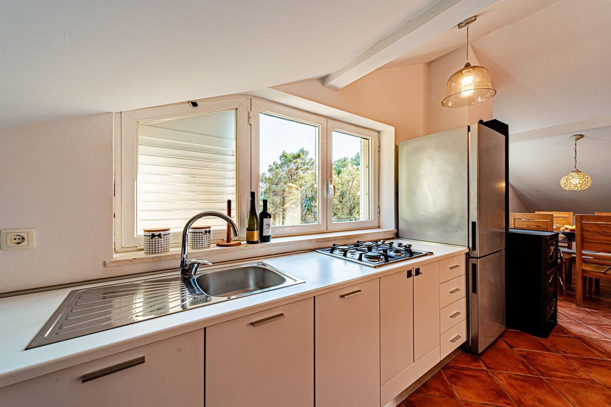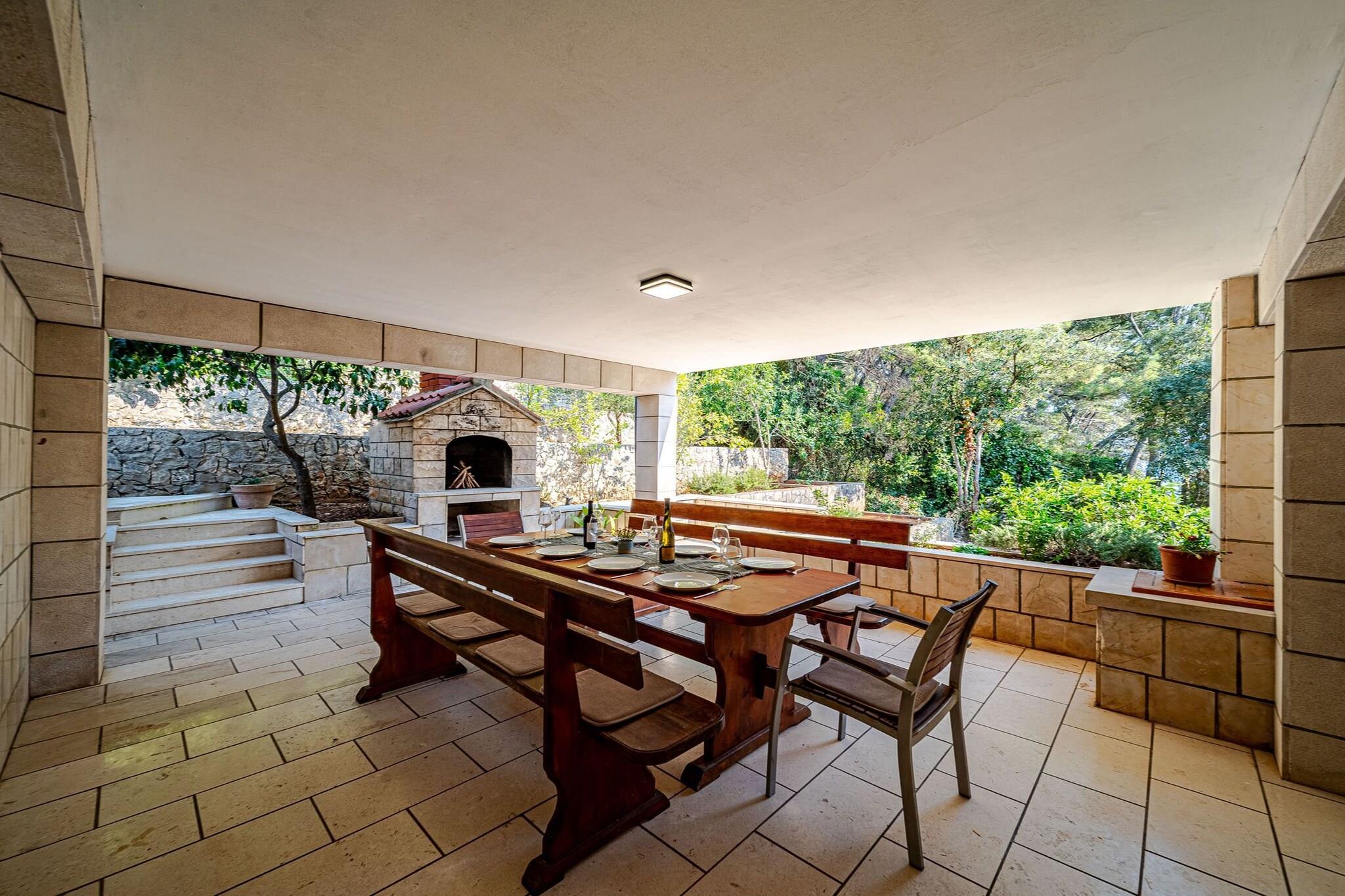 Holiday Home Island Gem er indkvartering med egen forplejning beliggende på øen Korcula. Ejendommen har privat parkering, reservation er ikke påkrævet. Bagageopbevaring er tilgængelig før indtjekning og efter udtjekning. Dette dejlige feriehus med 5 soveværelser har opholdsområde med fladskærms-tv, gratis WiFi og opholdsområde. Ejendommen består af to enheder i to etager forbundet udvendigt. Køkkenet er udstyret med ovn, komfur, køleskab, skraldespande og spiseplads. Badeværelserne har bruser. Der tilbydes gratis toiletartikler, sæbe, toiletpapir, linned og håndklæder. Der medfølger barneseng og førstehjælpskasse. Ejendommen har møbleret terrasse med udendørs spiseplads og grill. Der er udendørsmøbler og privat have til rådighed.Holiday Home Island Gem er beliggende på øen Korcula, kun 80 meter fra den naturlige stenstrand, i et roligt miljø med fyrreskov, i fred og ro, ideel til familier og små grupper. Ejendommen ligger 20 km fra Korculas gamle bydel. Det nærmeste marked ligger 4 km fra ejendommen. Resturant og caffe bar ligger 7 km væk. Apoteket ligger 17 km fra ejendommen. Den nærmeste busstation ligger 5 km fra ejendommen. Dubrovnik Lufthavn ligger 156 km fra ejendommen.