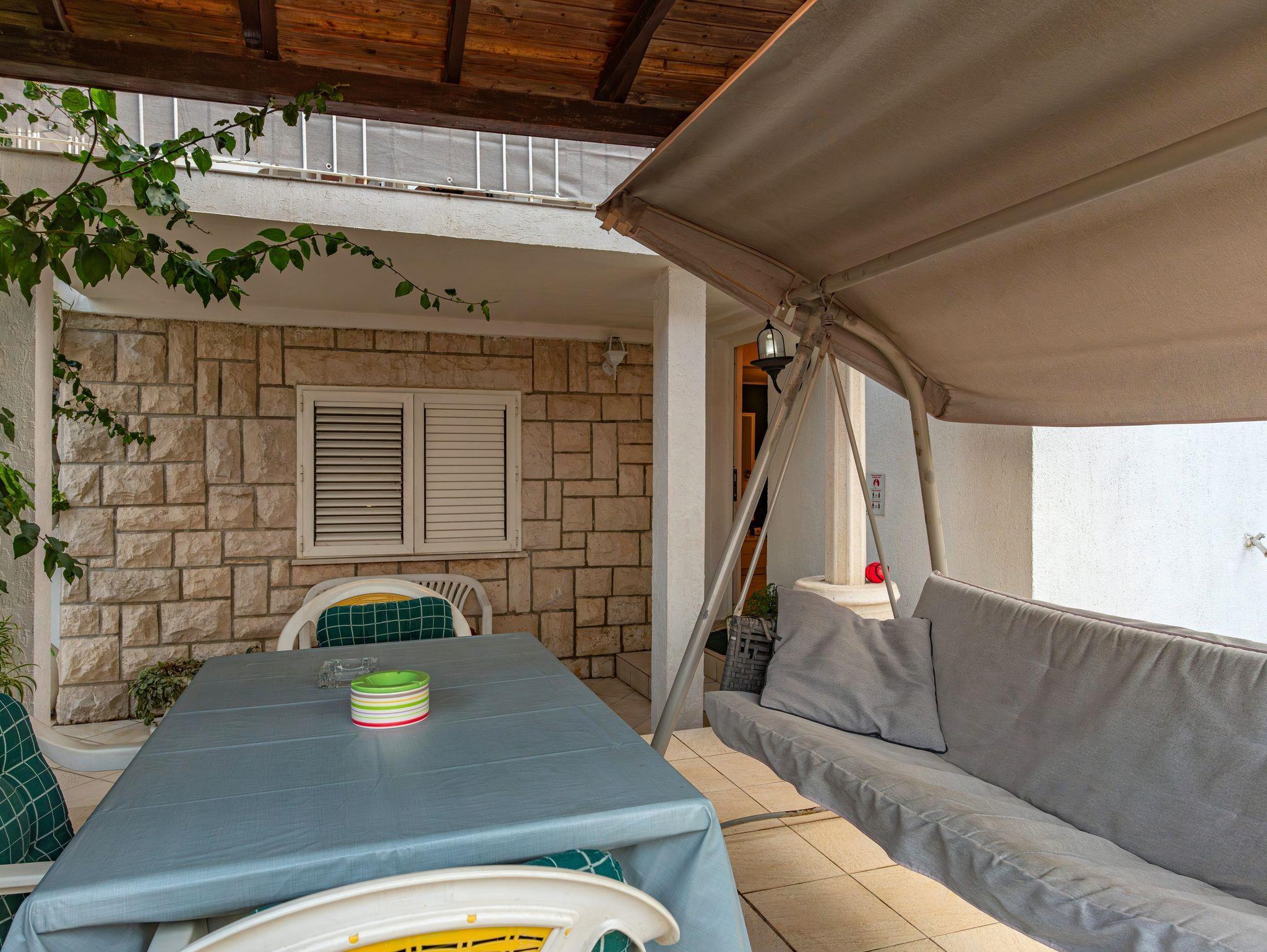 Ferienwohnung bietet Platz für 4 Gäste. Die Betten sind in Schlafzimmern, die es 1 gibt, und in Esszimmer, innerhalb einer Gesamtfläche von 27m2, angeordnet. Die Gäste haben eine eigene Terrasse zur Verfügung, auf der sie in warmen Sommernächten genießen können. Das Apartment bietet Meerblick. Es ist erlaubt, Speisen auf dem Gemeinschafts-Grill vorzubereiten. In der gebuchten Unterkunftseinheit zahlt man am Ort ein Depositum ( der Preis ist an der Internetseite angeführt ). IM PREIS INBEGRIFFEN: Kurtaxe, Endreinigung, Klimatisierung, Internet, Bügeleisen, Bügelbrett, Föhn. VERBINDLICHE ZUSÄTZLICHE KOSTEN: Kaution (50,00 € Einmalzahlung), Aufzahlung für Kurzaufenthalte (prozentualer Zuschlag pro Nächtigungsanzahl: 30% - 1, 20% - 2, 10% - 3). UNVERBINDLICHE ZUSÄTZLICHE KOSTEN: Wäschewaschen (5,00 € Waschen). Die Verfügbarkeit zusätzlicher Dienstleistungen in Ihrem reservierten Termin und die Preise derselben (falls nicht aufgeführt) müssen im Voraus überprüft werden. Zusätzliche Dienstleistungen die in der Zahlungsaufforderung nicht aufgeführt sind werden direkt beim Vermieter bezahlt, angenommen der Gast nutzt auch diese. Ermäßigung auf den Grundpreis: Gratistag 14=13 (bei einem Aufenthalt von 14 Tagen oder mehr erhalten Sie einen Gratistag für den Aufenthalt bis 31.12.26).