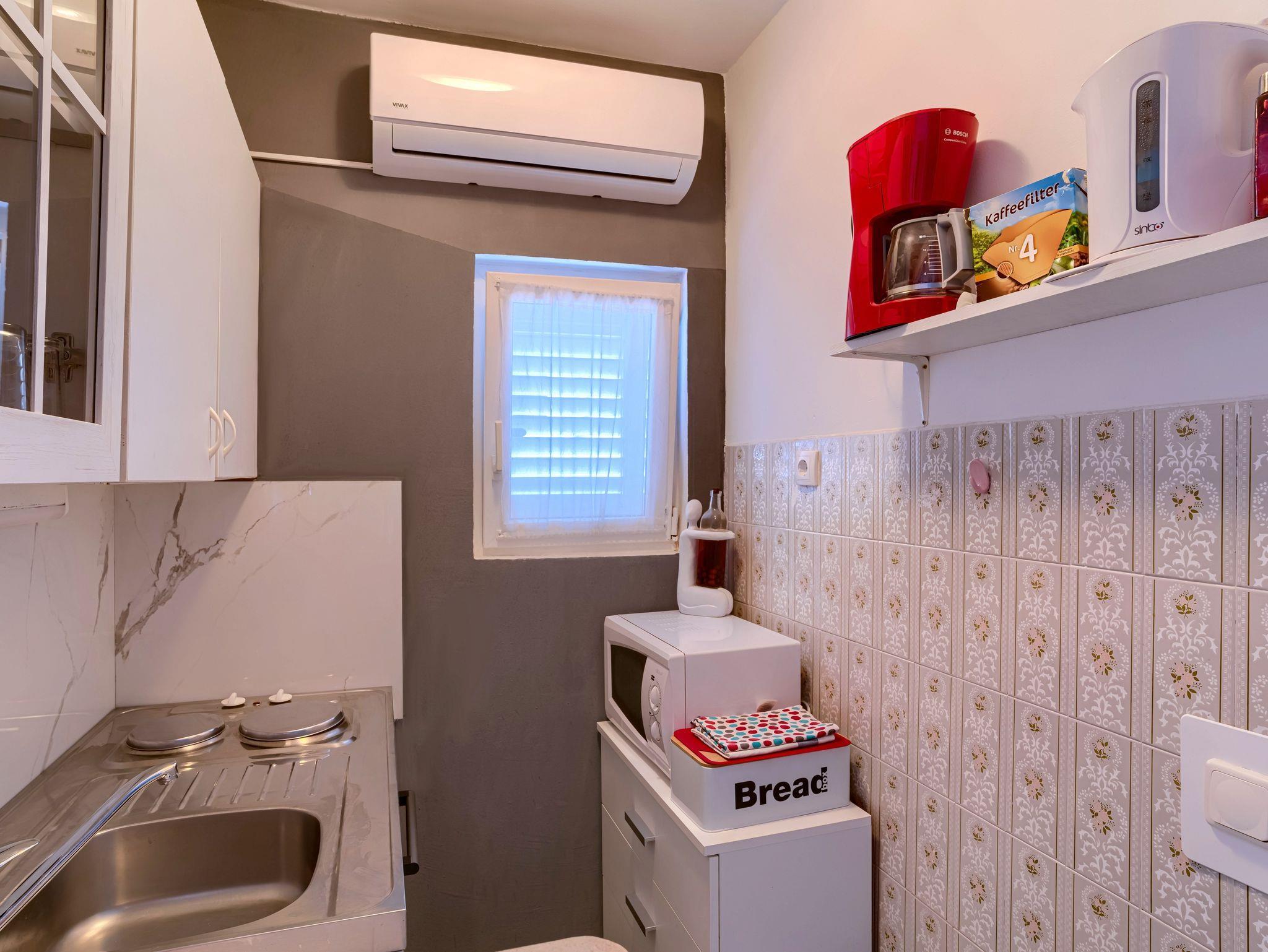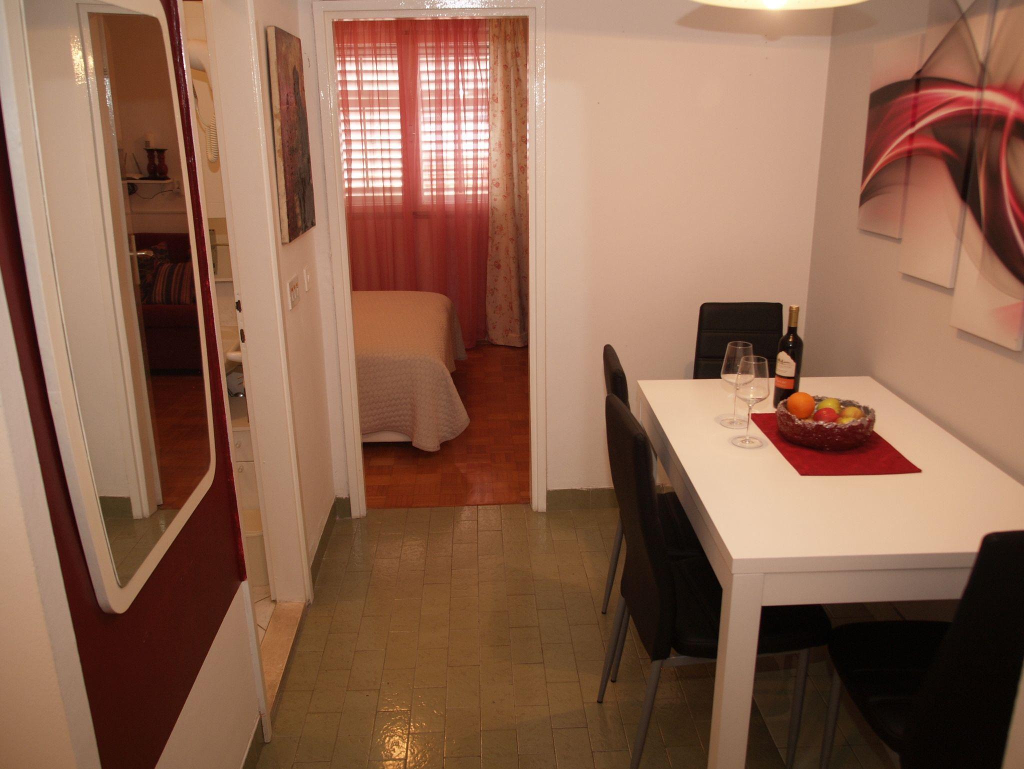 Ferienwohnung bietet Platz für 5 Gäste. Die Betten sind in Schlafzimmern, die es 2 gibt, innerhalb einer Gesamtfläche von 32m2, angeordnet. Die Gäste haben eine eigene Terrasse zur Verfügung, auf der sie in warmen Sommernächten genießen können. Das Apartment bietet Meerblick. Es ist erlaubt, Speisen auf dem Gemeinschafts-Grill vorzubereiten. In der gebuchten Unterkunftseinheit zahlt man am Ort ein Depositum ( der Preis ist an der Internetseite angeführt ). IM PREIS INBEGRIFFEN: Kurtaxe, Endreinigung, Klimatisierung, Internet, Bügeleisen, Bügelbrett, Föhn. VERBINDLICHE ZUSÄTZLICHE KOSTEN: Kaution (50,00 € Einmalzahlung), Aufzahlung für Kurzaufenthalte (prozentualer Zuschlag pro Nächtigungsanzahl: 30% - 1, 20% - 2, 10% - 3). UNVERBINDLICHE ZUSÄTZLICHE KOSTEN: Wäschewaschen (5,00 € Waschen). Die Verfügbarkeit zusätzlicher Dienstleistungen in Ihrem reservierten Termin und die Preise derselben (falls nicht aufgeführt) müssen im Voraus überprüft werden. Zusätzliche Dienstleistungen die in der Zahlungsaufforderung nicht aufgeführt sind werden direkt beim Vermieter bezahlt, angenommen der Gast nutzt auch diese. Ermäßigung auf den Grundpreis: Gratistag 14=13 (bei einem Aufenthalt von 14 Tagen oder mehr erhalten Sie einen Gratistag für den Aufenthalt bis 31.12.26).