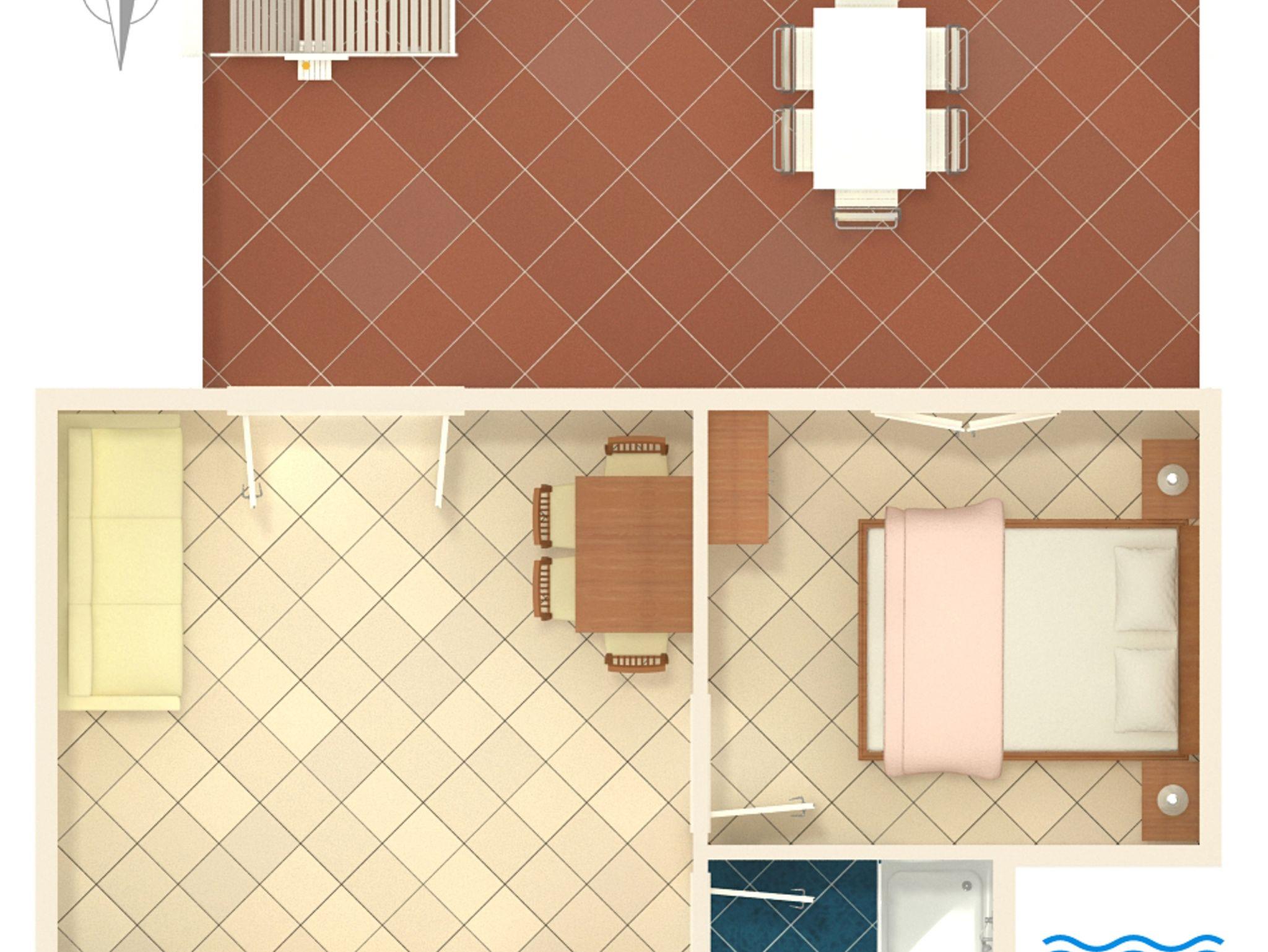 Ferienwohnung bietet Platz für 4 Gäste. Die Betten sind in Schlafzimmern, die es 1 gibt, und in Esszimmer, innerhalb einer Gesamtfläche von 28m2, angeordnet. Die Gäste haben eine eigene Terrasse zur Verfügung, auf der sie in warmen Sommernächten genießen können. Das Apartment bietet Meerblick. Es ist erlaubt, Speisen auf dem Gemeinschafts-Grill vorzubereiten. IM PREIS INBEGRIFFEN: Kurtaxe, Endreinigung, Klimatisierung, Parkplatz, Internet, Liegestühle. VERBINDLICHE ZUSÄTZLICHE KOSTEN: Aufzahlung für Kurzaufenthalte (prozentualer Zuschlag pro Nächtigungsanzahl: 30% - 1, 20% - 2, 10% - 3). Die Verfügbarkeit zusätzlicher Dienstleistungen in Ihrem reservierten Termin und die Preise derselben (falls nicht aufgeführt) müssen im Voraus überprüft werden. Zusätzliche Dienstleistungen die in der Zahlungsaufforderung nicht aufgeführt sind werden direkt beim Vermieter bezahlt, angenommen der Gast nutzt auch diese. Ermäßigung auf den Grundpreis: Gratistag 14=13 (bei einem Aufenthalt von 14 Tagen oder mehr erhalten Sie einen Gratistag für den Aufenthalt bis 31.12.26).