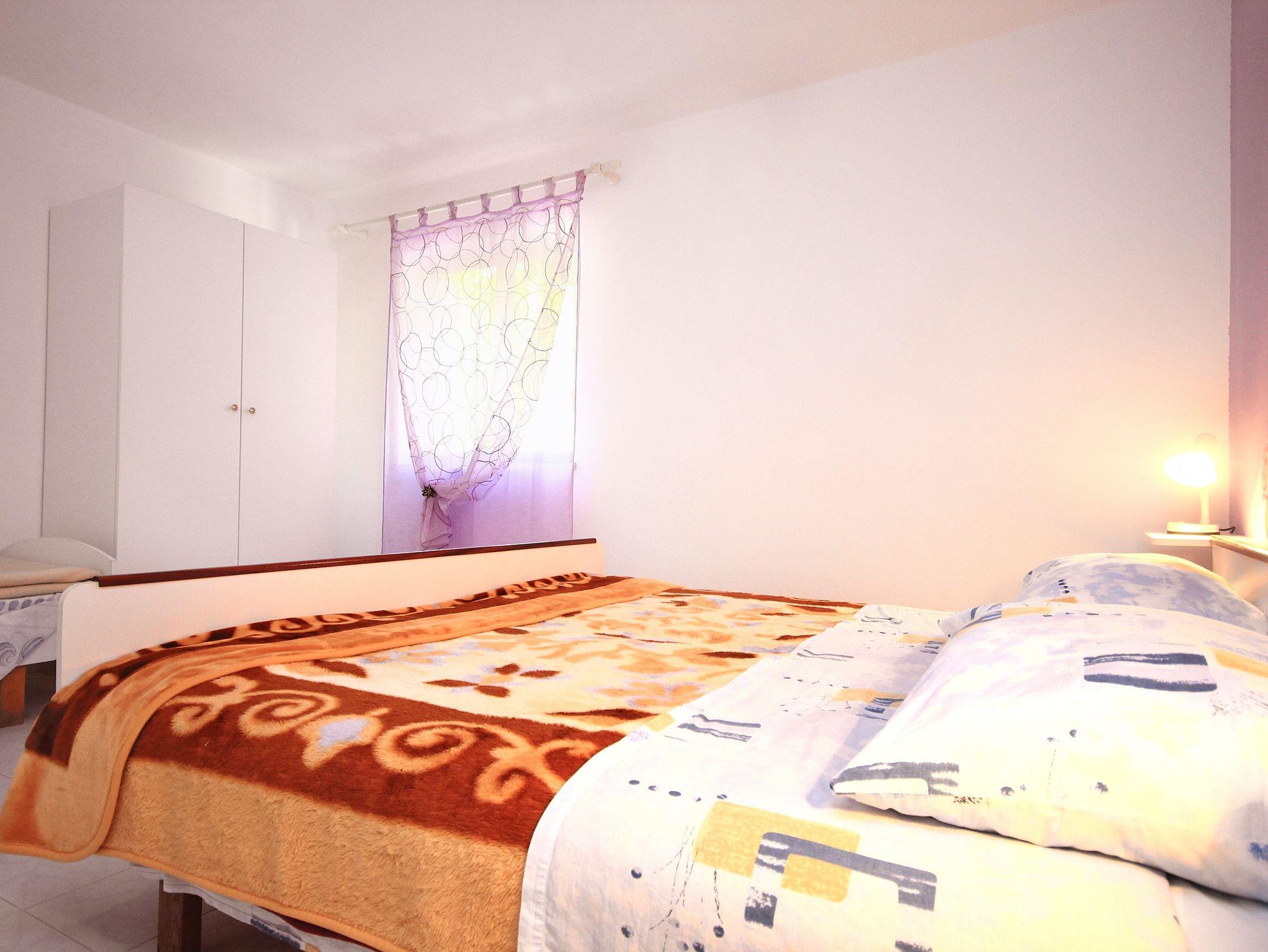Ferienwohnung bietet Platz für 5 Gäste. Die Betten sind in Schlafzimmern, die es 1 gibt, und in Esszimmer, innerhalb einer Gesamtfläche von 37m2, angeordnet. Die Gäste haben eine eigene Terrasse zur Verfügung, auf der sie in warmen Sommernächten genießen können. Das Apartment bietet Meerblick. Es ist erlaubt, Speisen auf dem Gemeinschafts-Grill vorzubereiten. IM PREIS INBEGRIFFEN: Kurtaxe, Endreinigung, Klimatisierung, Parkplatz, Internet, Liegestühle. VERBINDLICHE ZUSÄTZLICHE KOSTEN: Aufzahlung für Kurzaufenthalte (prozentualer Zuschlag pro Nächtigungsanzahl: 30% - 1, 20% - 2, 10% - 3). Die Verfügbarkeit zusätzlicher Dienstleistungen in Ihrem reservierten Termin und die Preise derselben (falls nicht aufgeführt) müssen im Voraus überprüft werden. Zusätzliche Dienstleistungen die in der Zahlungsaufforderung nicht aufgeführt sind werden direkt beim Vermieter bezahlt, angenommen der Gast nutzt auch diese. Ermäßigung auf den Grundpreis: Gratistag 14=13 (bei einem Aufenthalt von 14 Tagen oder mehr erhalten Sie einen Gratistag für den Aufenthalt bis 31.12.26).