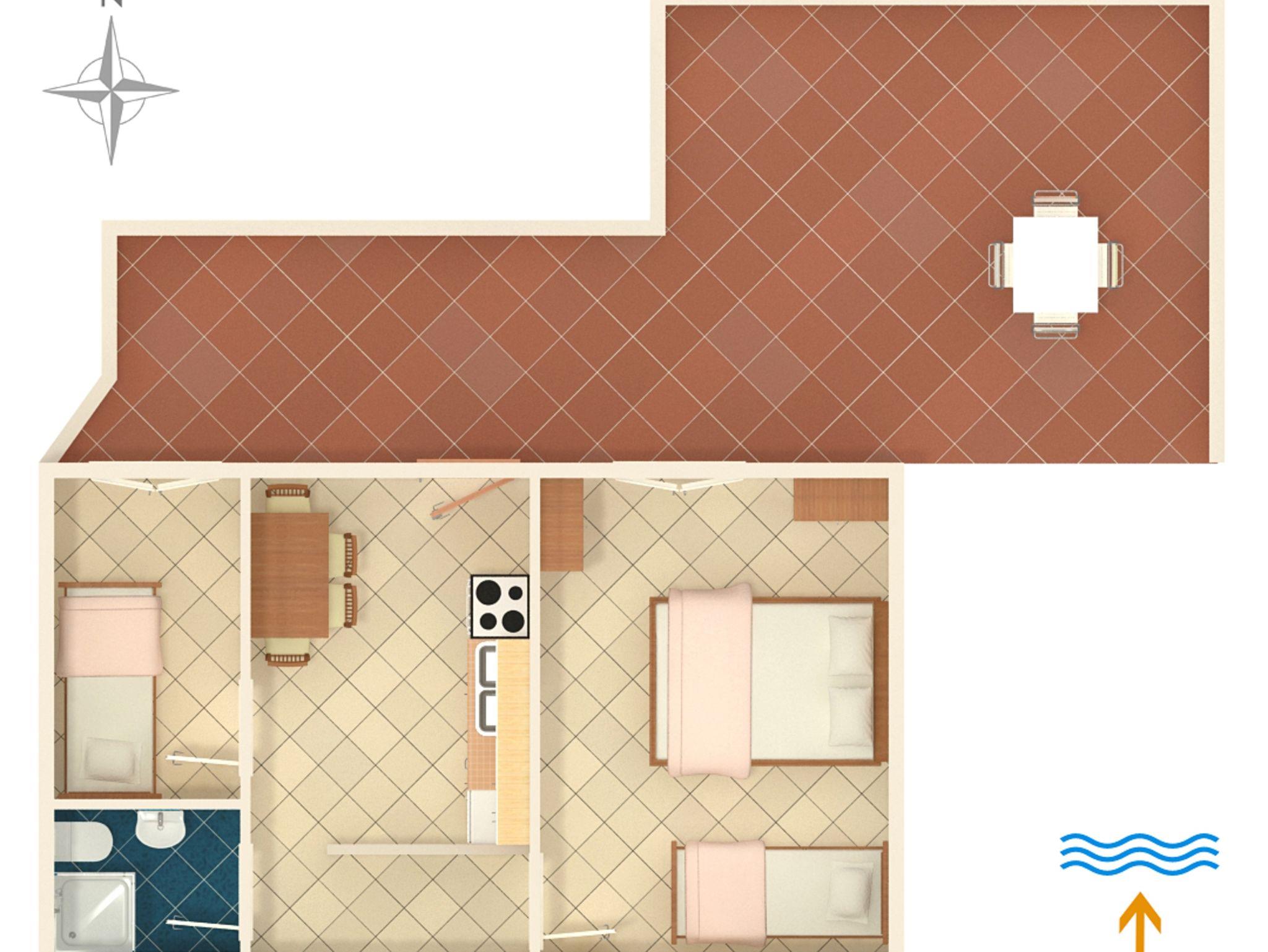 Ferienwohnung bietet Platz für 4 Gäste. Die Betten sind in Schlafzimmern, die es 2 gibt, innerhalb einer Gesamtfläche von 31m2, angeordnet. Die Gäste haben eine eigene Terrasse zur Verfügung, auf der sie in warmen Sommernächten genießen können. Das Apartment bietet Meerblick. Es ist erlaubt, Speisen auf dem Gemeinschafts-Grill vorzubereiten. IM PREIS INBEGRIFFEN: Kurtaxe, Endreinigung, Klimatisierung, Parkplatz, Internet, Liegestühle. VERBINDLICHE ZUSÄTZLICHE KOSTEN: Aufzahlung für Kurzaufenthalte (prozentualer Zuschlag pro Nächtigungsanzahl: 30% - 1, 20% - 2, 10% - 3). Die Verfügbarkeit zusätzlicher Dienstleistungen in Ihrem reservierten Termin und die Preise derselben (falls nicht aufgeführt) müssen im Voraus überprüft werden. Zusätzliche Dienstleistungen die in der Zahlungsaufforderung nicht aufgeführt sind werden direkt beim Vermieter bezahlt, angenommen der Gast nutzt auch diese. Ermäßigung auf den Grundpreis: Gratistag 14=13 (bei einem Aufenthalt von 14 Tagen oder mehr erhalten Sie einen Gratistag für den Aufenthalt bis 31.12.26).