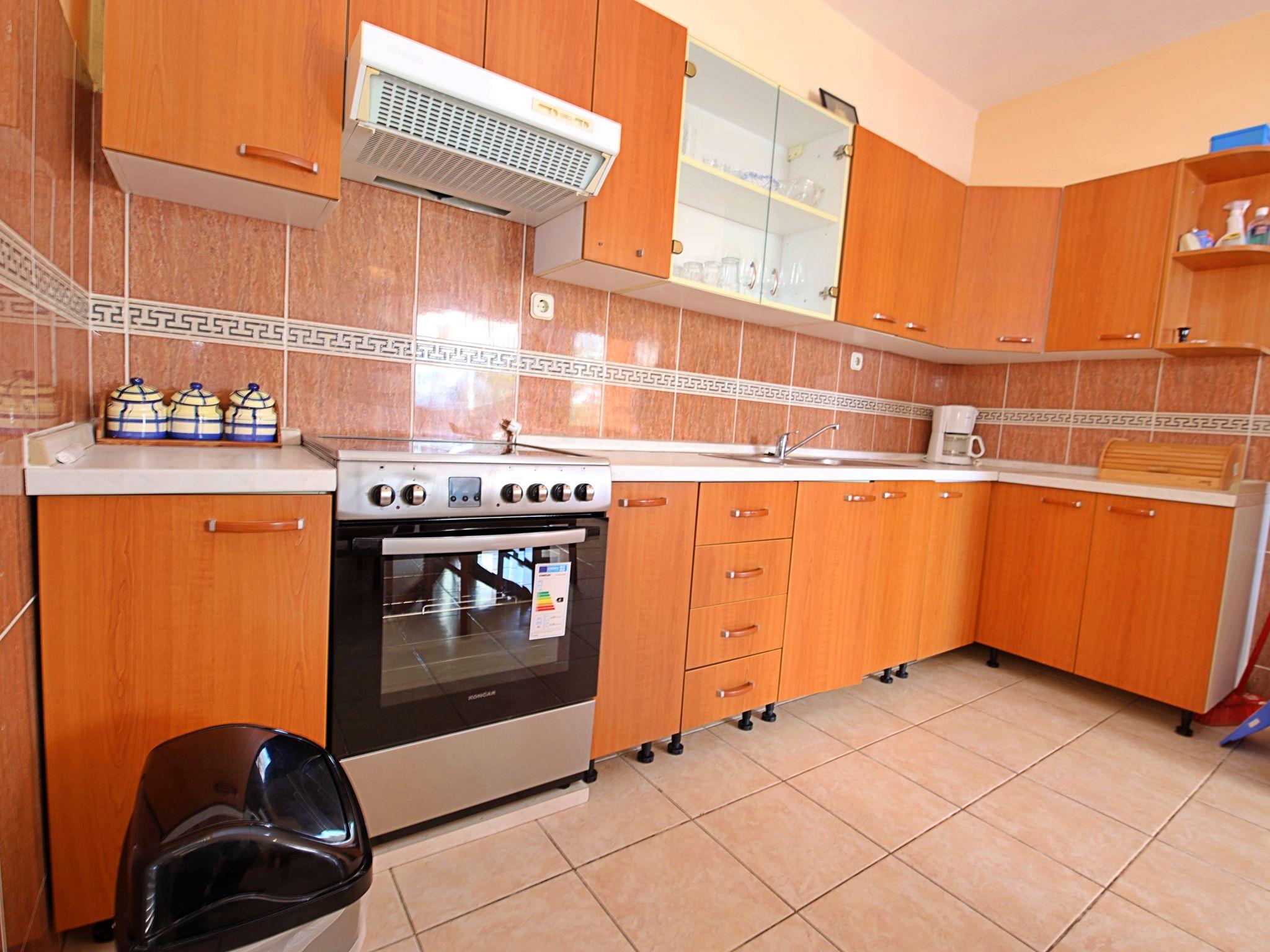 3-room house 65 m2, north facing position. Living/dining room 22 m2 with 1 sofabed (120 cm, length 200 cm), satellite TV and air conditioning. Exit to the terrace. 2 rooms, each room with 1 french bed (160 cm, length 200 cm). Open kitchen (4 hot plates, oven, freezer). Shower/WC, sep. WC. Air-conditioning (extra). Terrace 30 m2. Terrace furniture. Marvellous view of the sea. Facilities: Internet (WiFi, free). 1 small pet/ dog allowed.