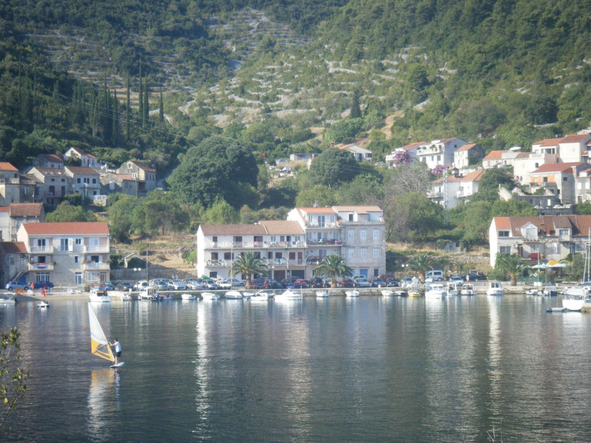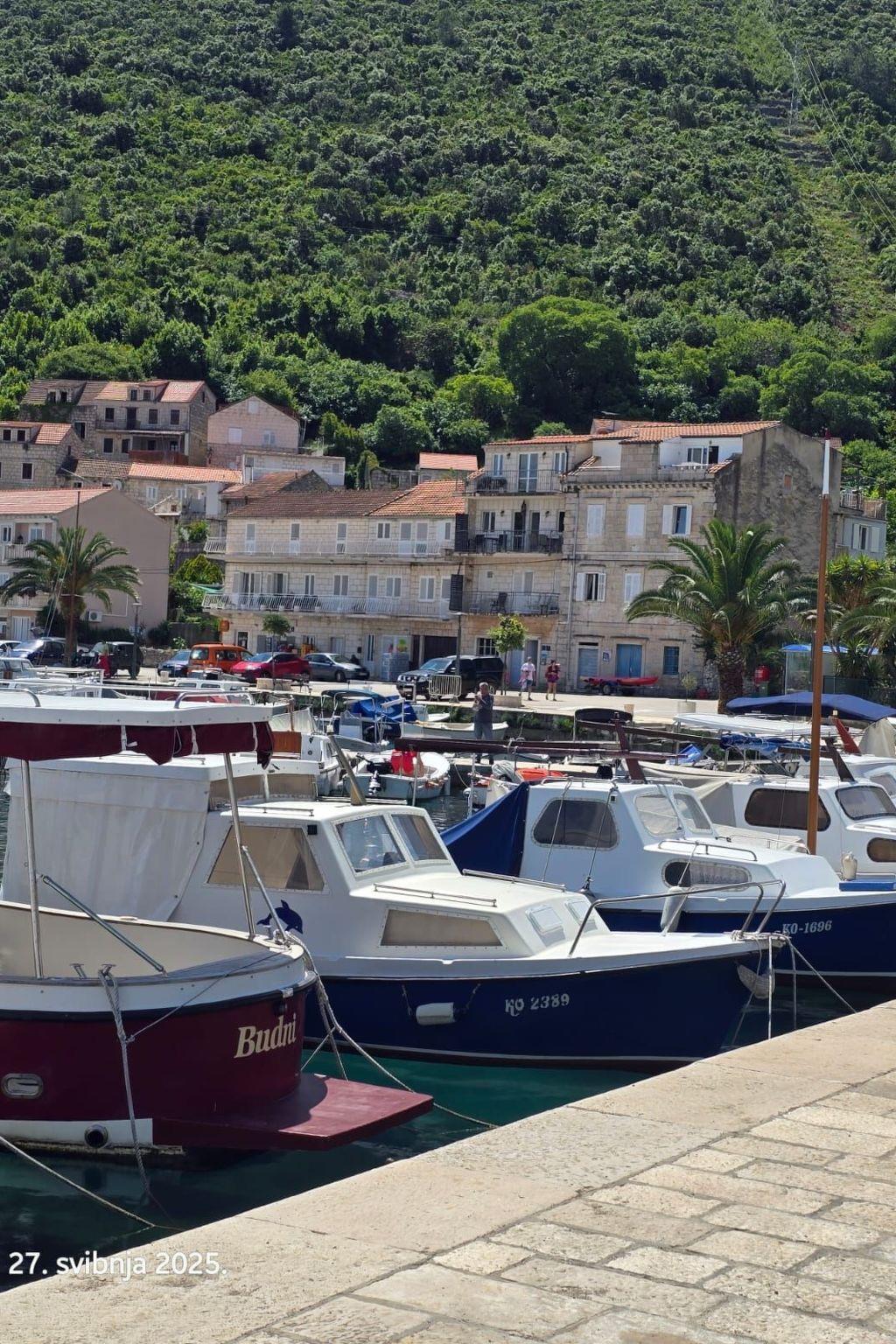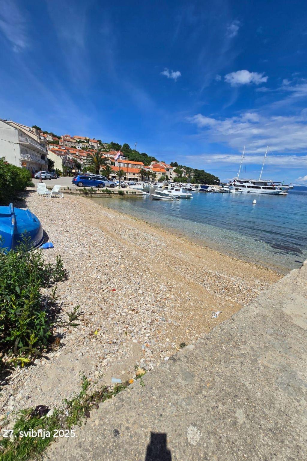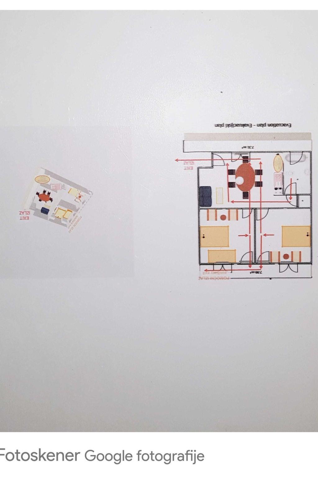 This apartment is located on the second floor and can accommodate up to five people. It has two bedrooms, each with a double bed and an extra bed. The air-conditioned living and dining area with an open kitchen offers a TV and a dining table with chairs. The kitchenette is fully equipped with all necessary kitchen appliances. The bathroom consists of a bathtub, sink, toilet and washing machine.