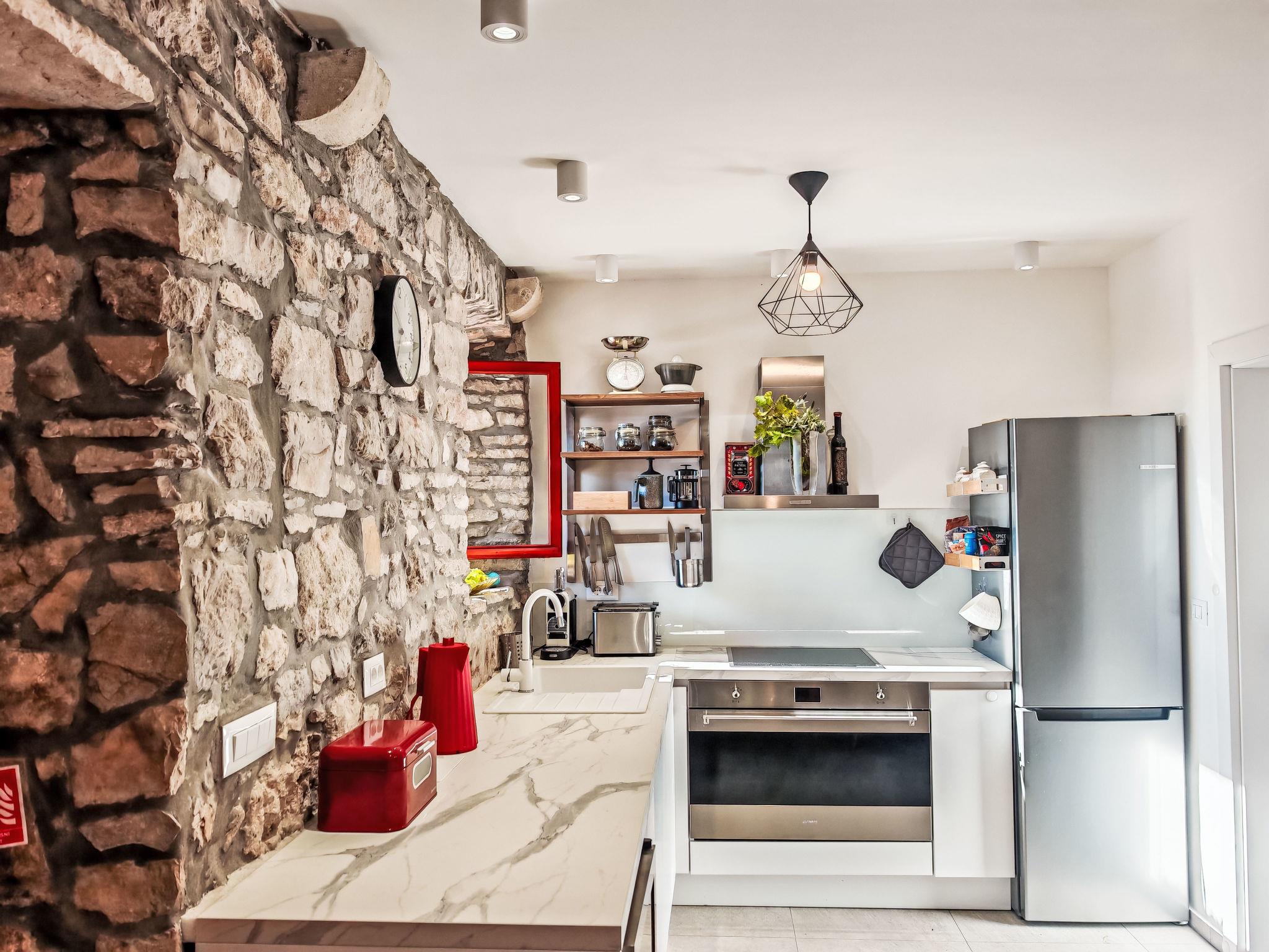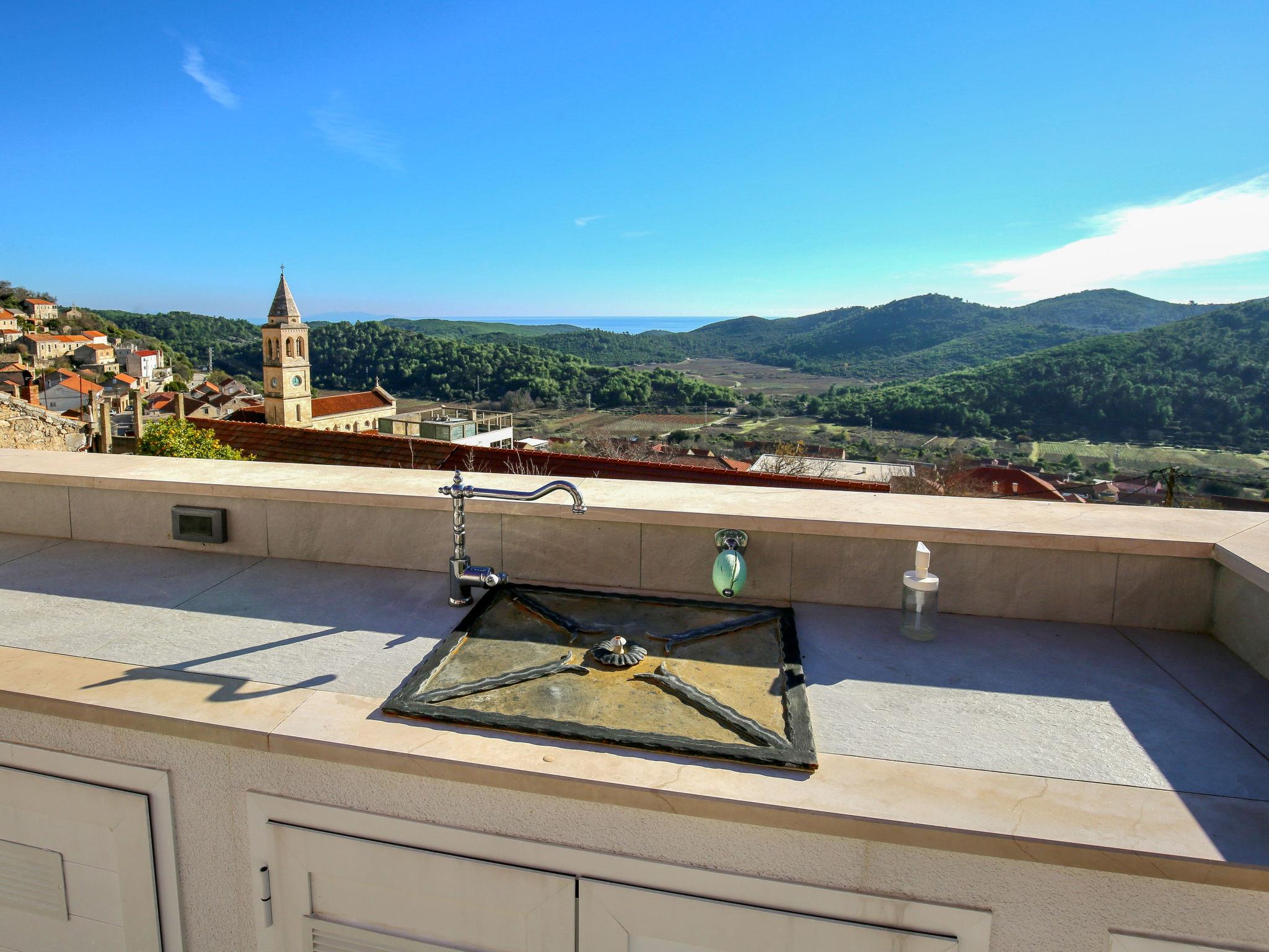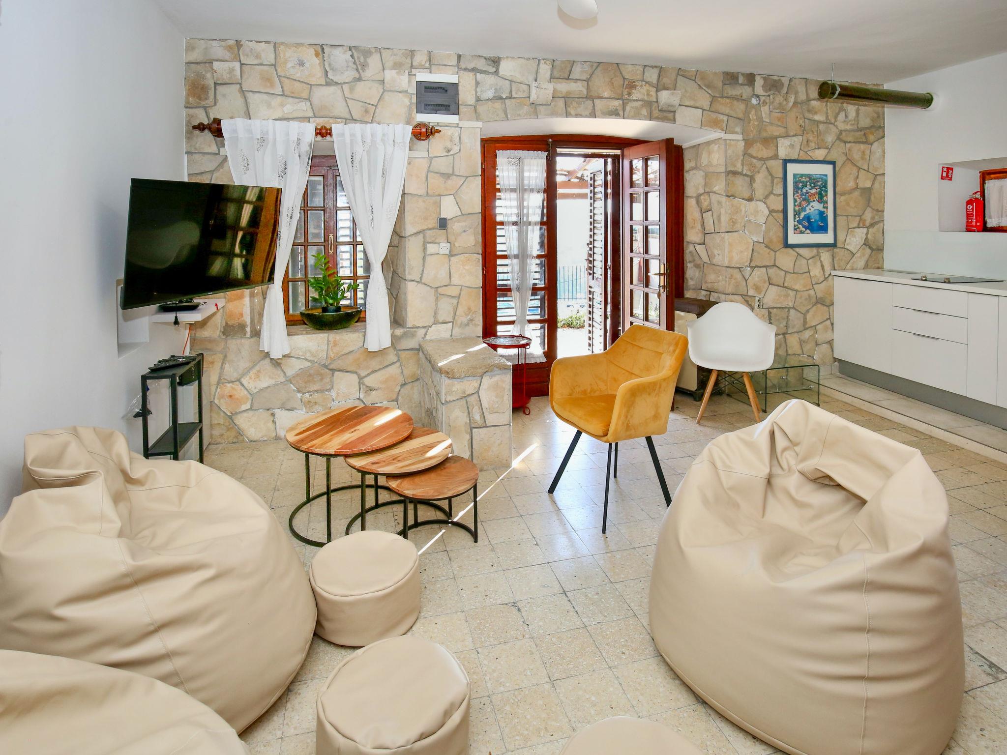 Terraced house "Prusina", 2 storeys. In a sunny, elevated position, 3.5 km from the sea, 3.5 km from the beach. Private: swimming pool (6 x 3 m, depth 150 cm, seasonal availability: 01.May. - 01.Oct.). In the house: internet access, washing machine. Parking (for 2 cars) at the house. Shop 150 m, restaurant 250 m, bus stop 150 m, pebble beach 3.5 km, concrete beach 3.5 km.