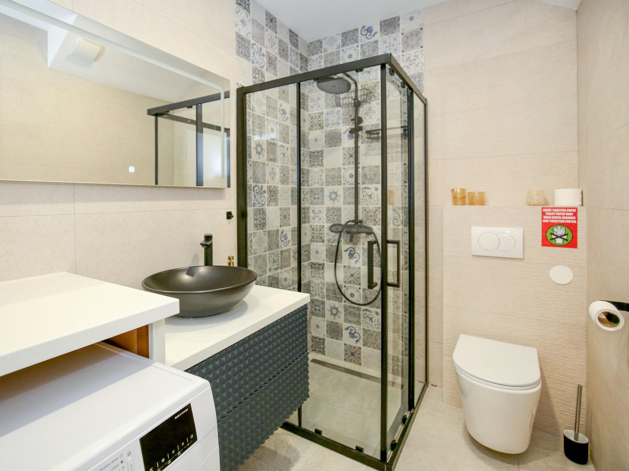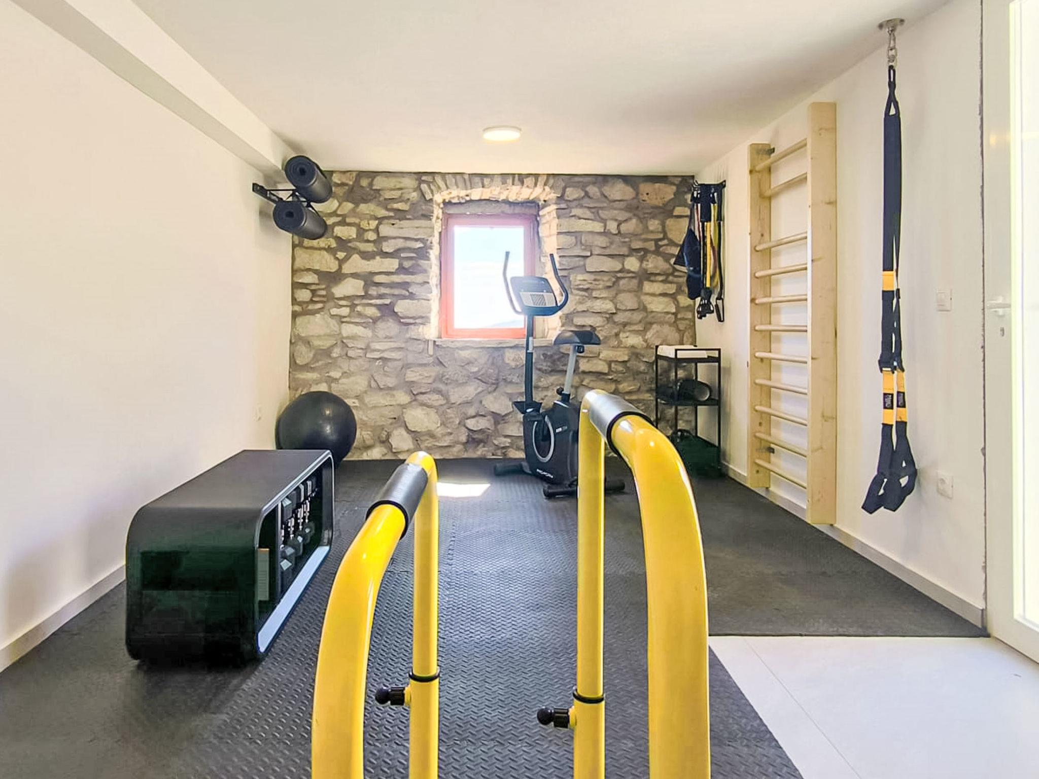 4-room terraced house 150 m2 on 2 levels, south facing position. Living room 25 m2 with cable TV and international TV channels. Exit to the terrace. Kitchen (oven, 4 ceramic glass hob hotplates, toaster, kettle, microwave, freezer, electric coffee machine). 2 showers/WC. Upper floor: 2 rooms, each room with 2 beds (90 cm, length 200 cm), air conditioning. Exit to the balcony. 1 room with 1 french bed (160 cm, length 200 cm), separate WC. 1 room with 1 french bed (160 cm, length 200 cm). 1 room with 1 x 1 bunk beds (150 cm, length 200 cm). Kitchen (4 hot plates, oven, dishwasher, microwave, freezer) with open-hearth fireplace and dining table. Exit to the terrace. 2 showers/WC. Balcony 6 m2, terrace 18 m2, terrace 20 m2. Terrace furniture, balcony furniture. View of the countryside and the resort. Facilities: Internet (WiFi, free). Parking (1 car). 1 small pet/ dog allowed.