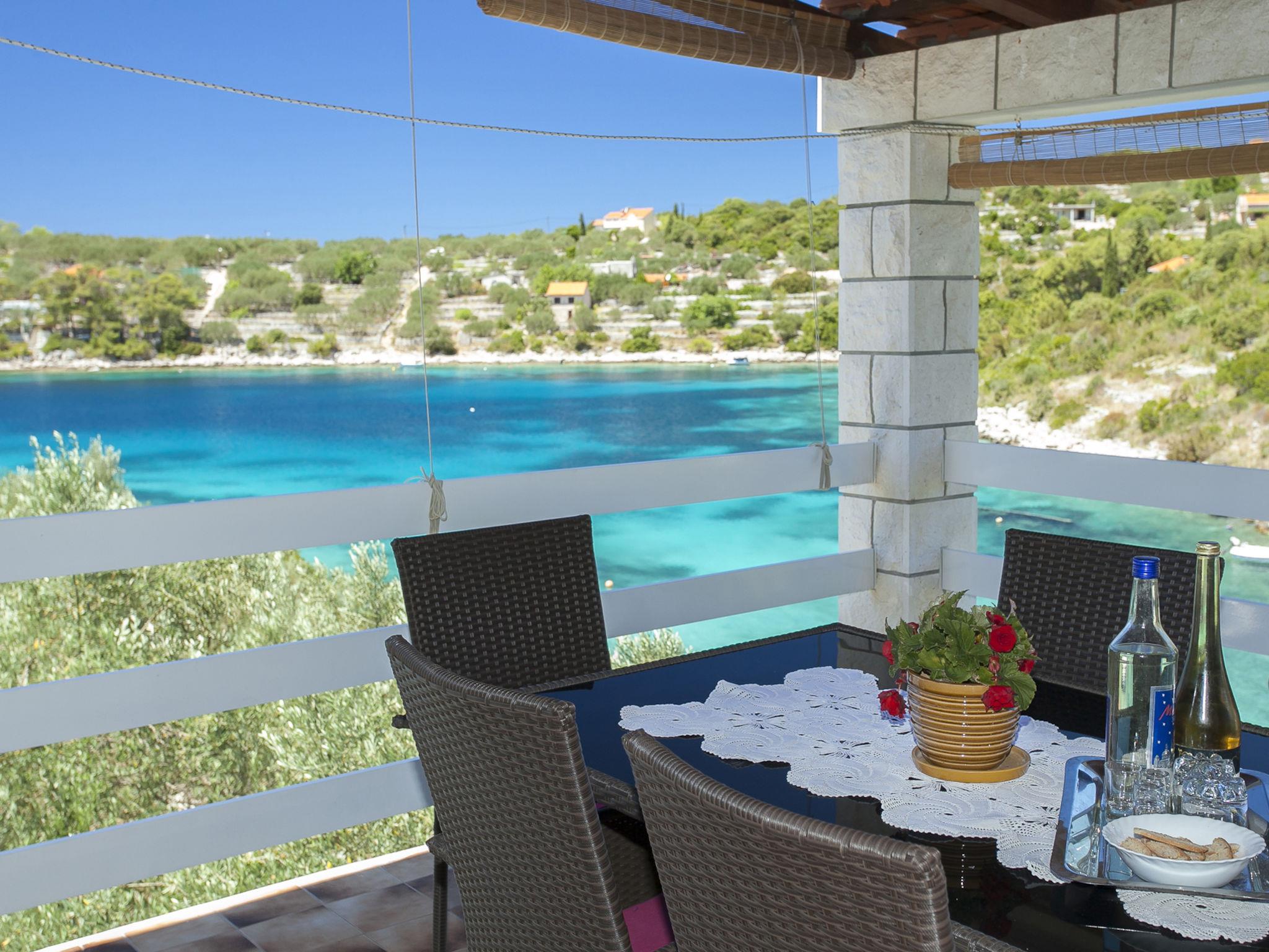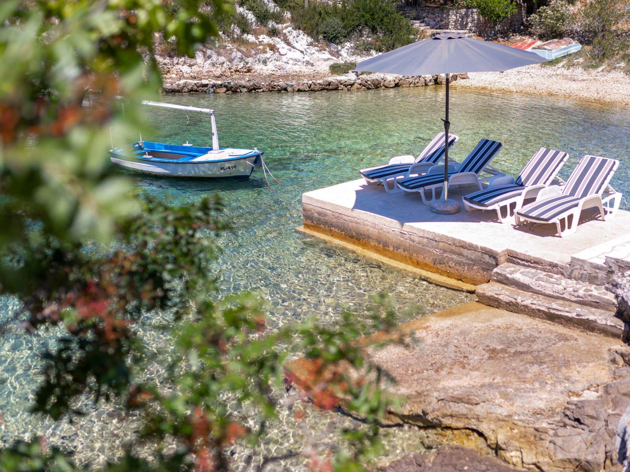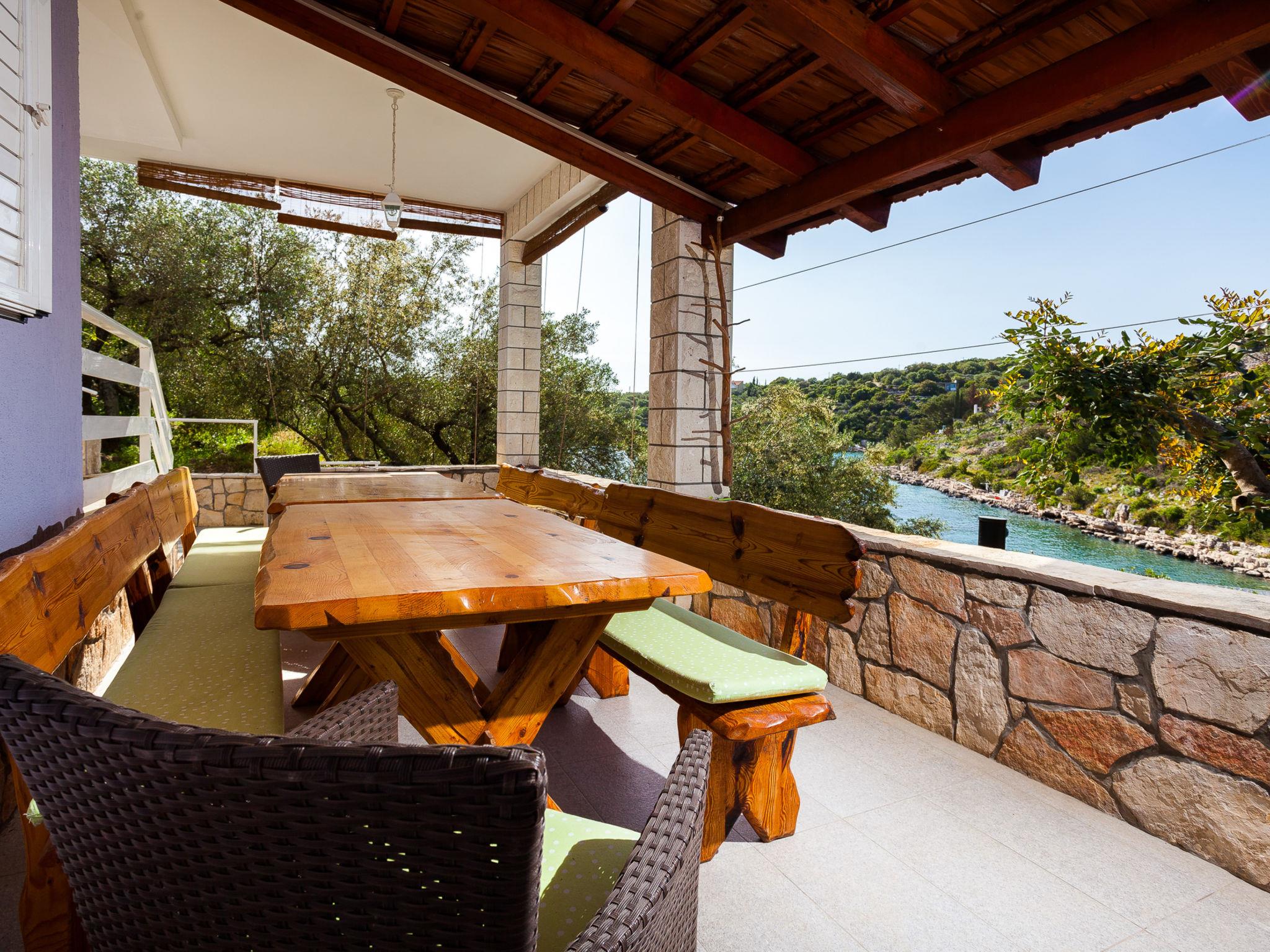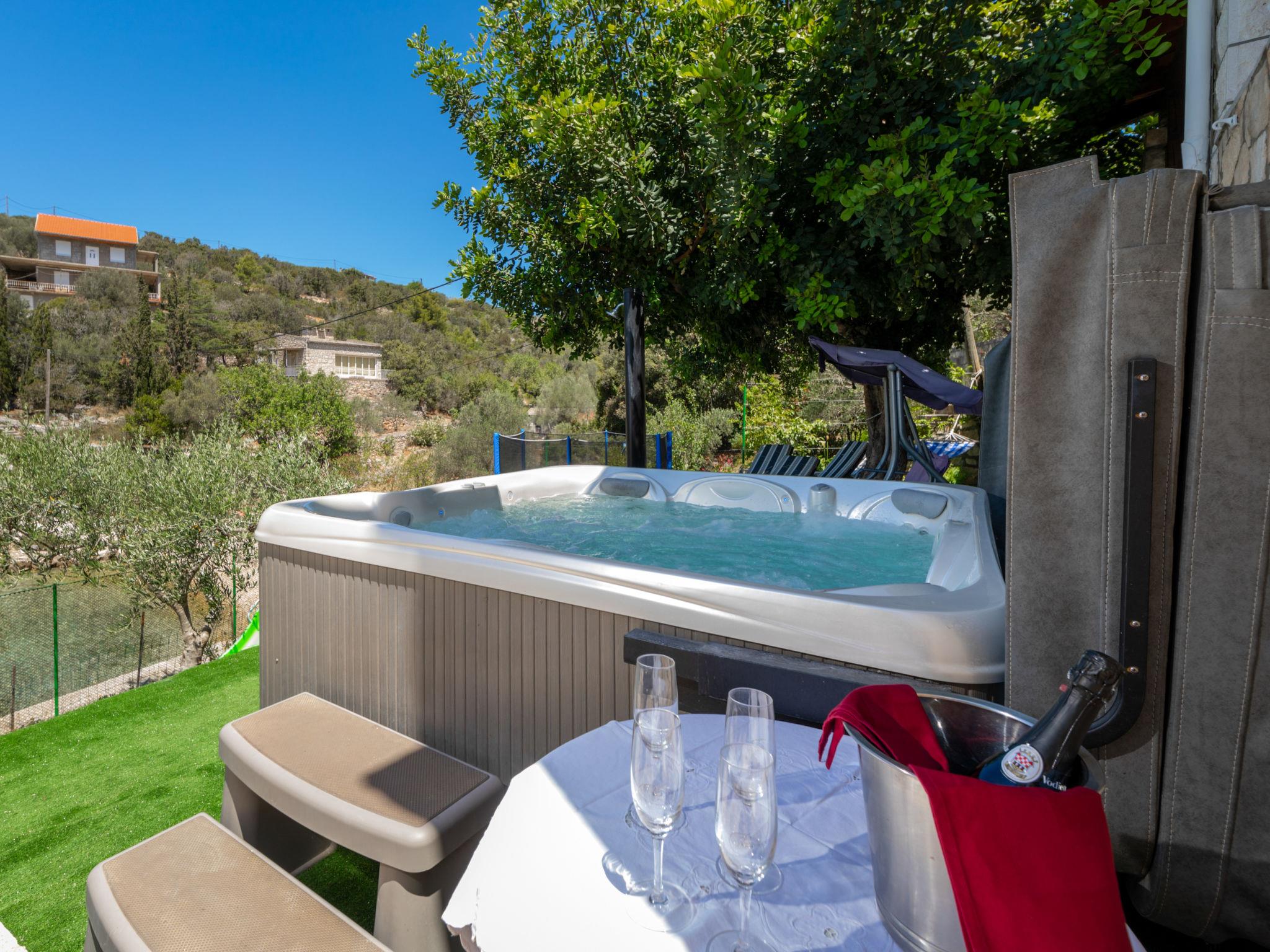 Stracincica 6 km from Vela Luka: Single-family house "Nataly", 2 storeys. In a quiet, sunny position on a slope, 20 m from the sea, 20 m from the beach, in a cul-de-sac, in the countryside, west facing position. Private: outdoor shower, hot tub, barbecue. In the house: internet access, laundry. Bumpy motor access (1 km via unmade road). Parking on the premises. Shop 5 km, restaurant 5 km, bus stop 6.7 km, shingle beach 50 m, rocky beach 20 m.