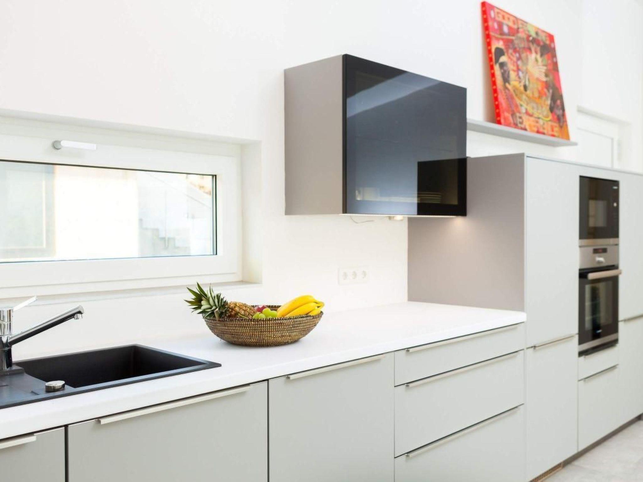 Just a few steps away is the private concrete plateau with bathing and swimming facilities and a buoy for your own boat or the motor speedboat you can hire from us. The spacious, heated and illuminated outdoor infinity pool (14 m x 3.50 m x 1.60 m) with waterfall leaves nothing to be desired. The pool bar invites you to linger and relax. The pool can be used by all holiday guests (guests of the Maisonette App. and the Penthouse App.).