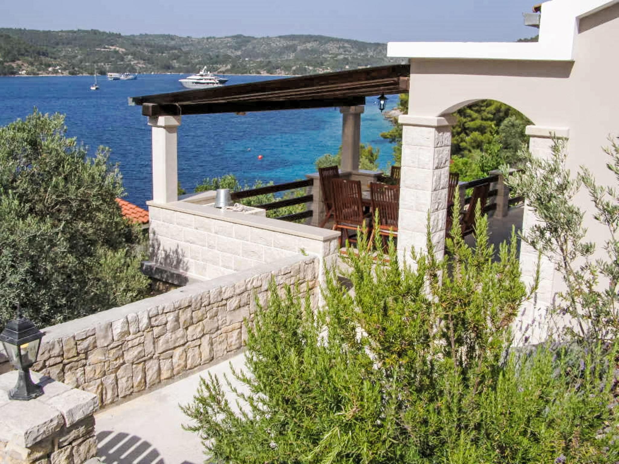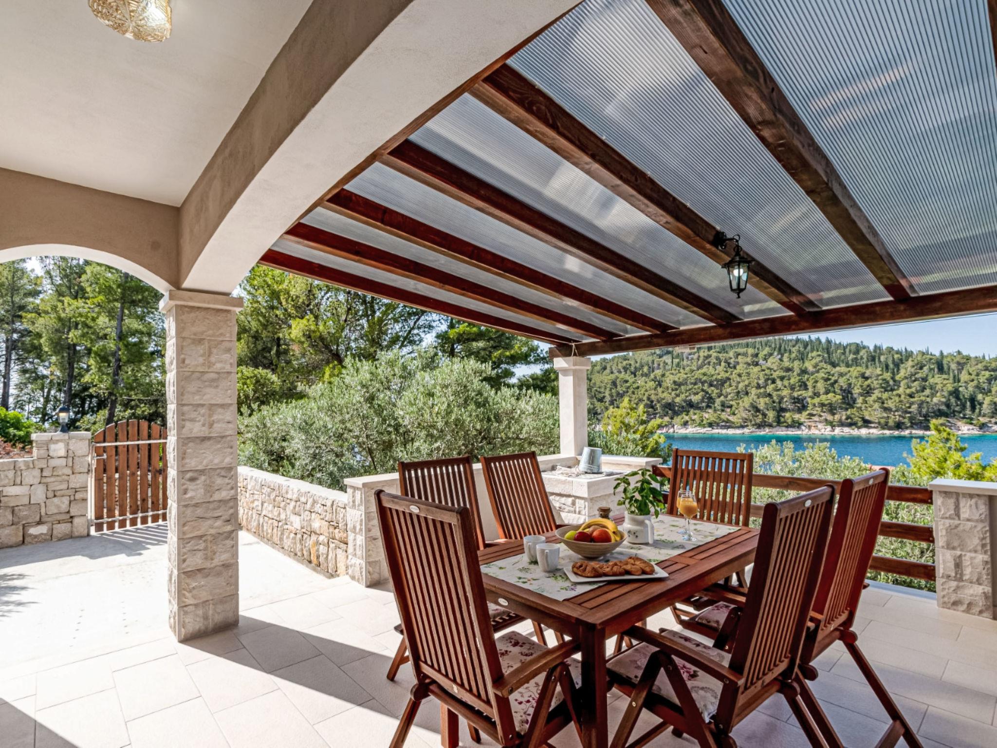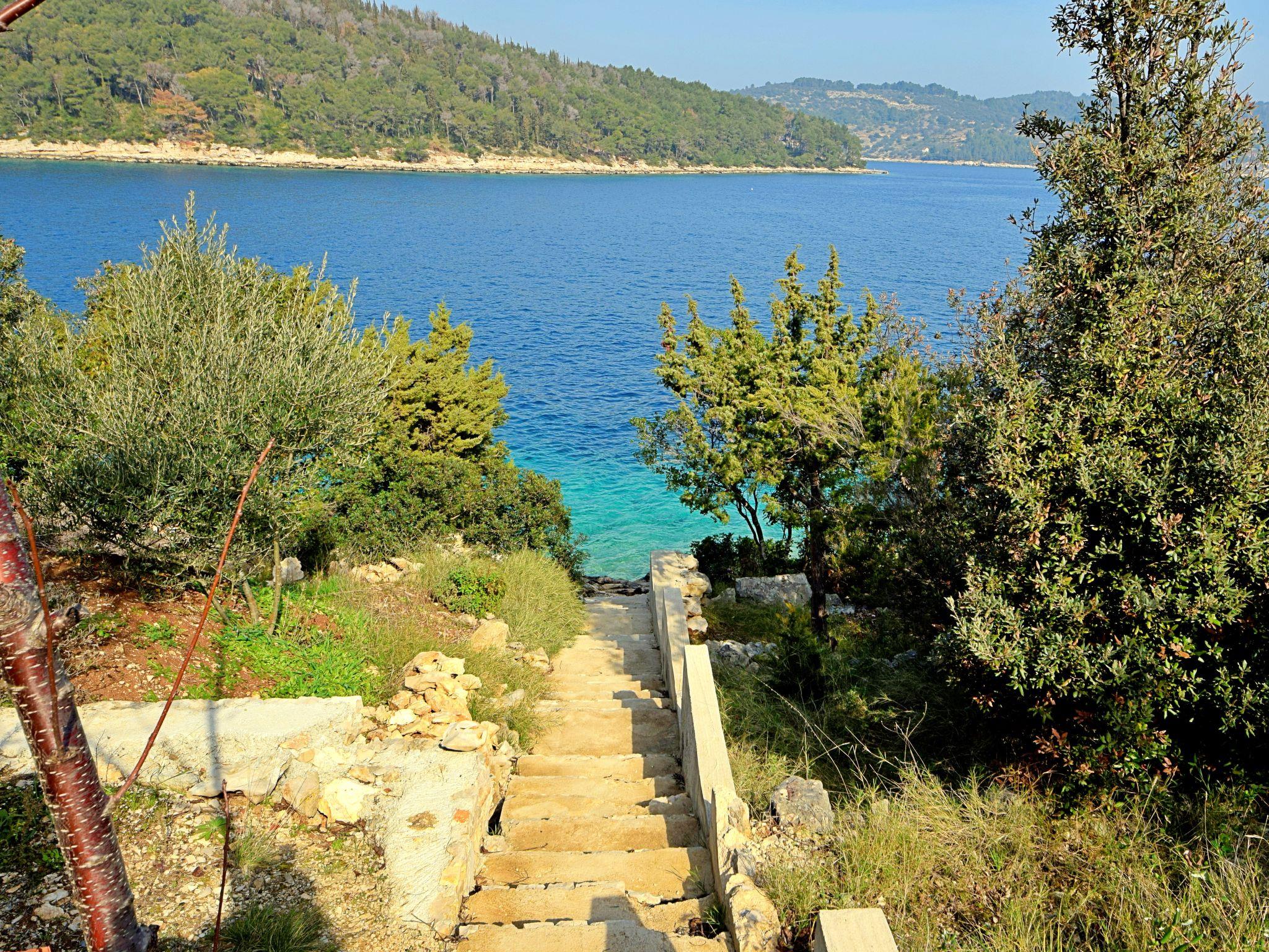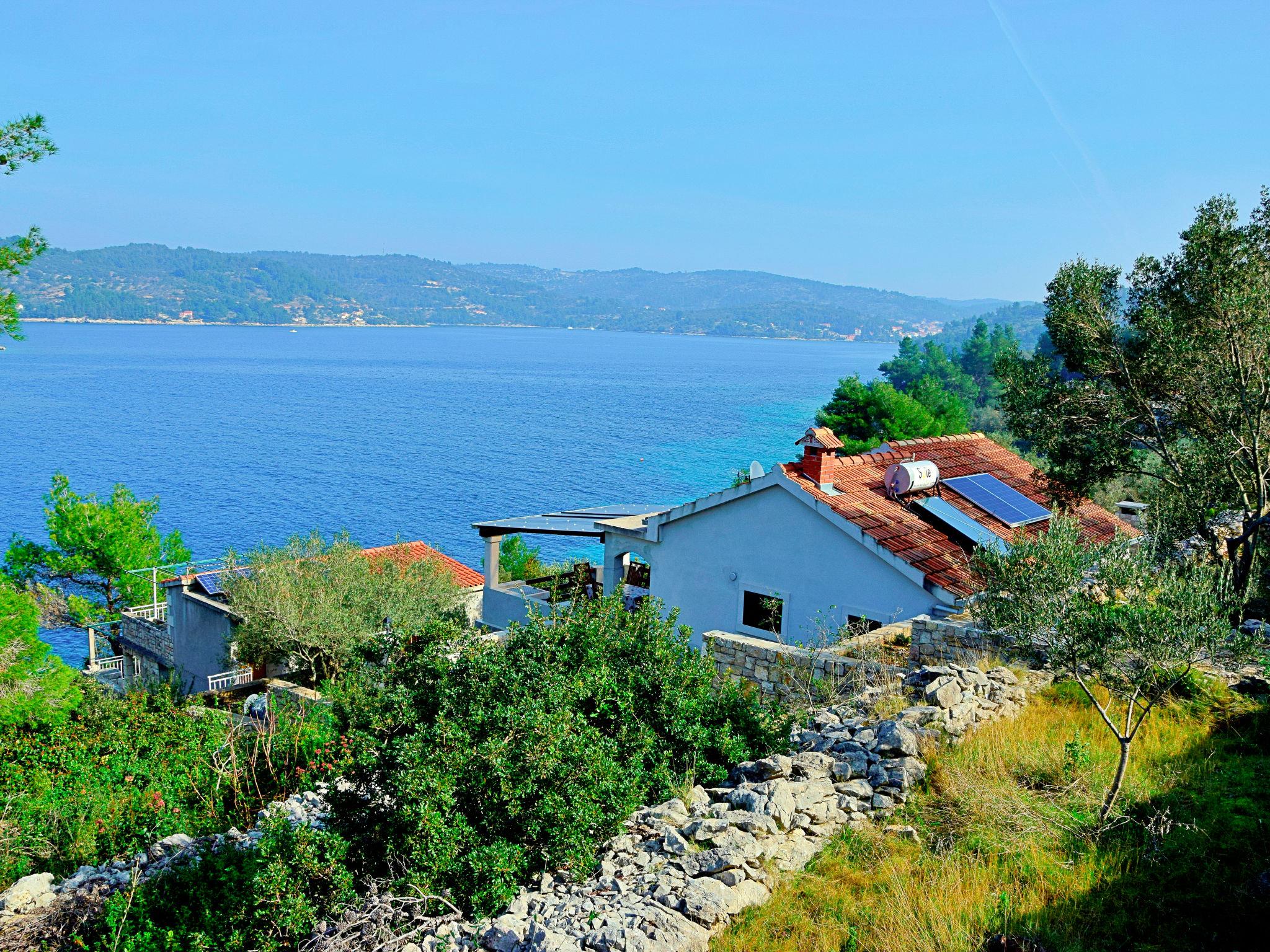 Uvala Picena 5 km from Vela Luka: Single-family house "Flora". In a quiet, sunny position, from the sea, 35 m from the beach. Private: property 480 m2, garden 100 m2 with wildlife garden. Outdoor shower, terrace (10 m2), barbecue. In the house: internet access. Parking (for 2 cars) at 30 m. Shop 3.5 km, restaurant 4 km, bus stop 4 km, ferry 4 km, pebble beach 100 m, rocky beach, concrete beach 35 m. Please note: private mooring, on request.
