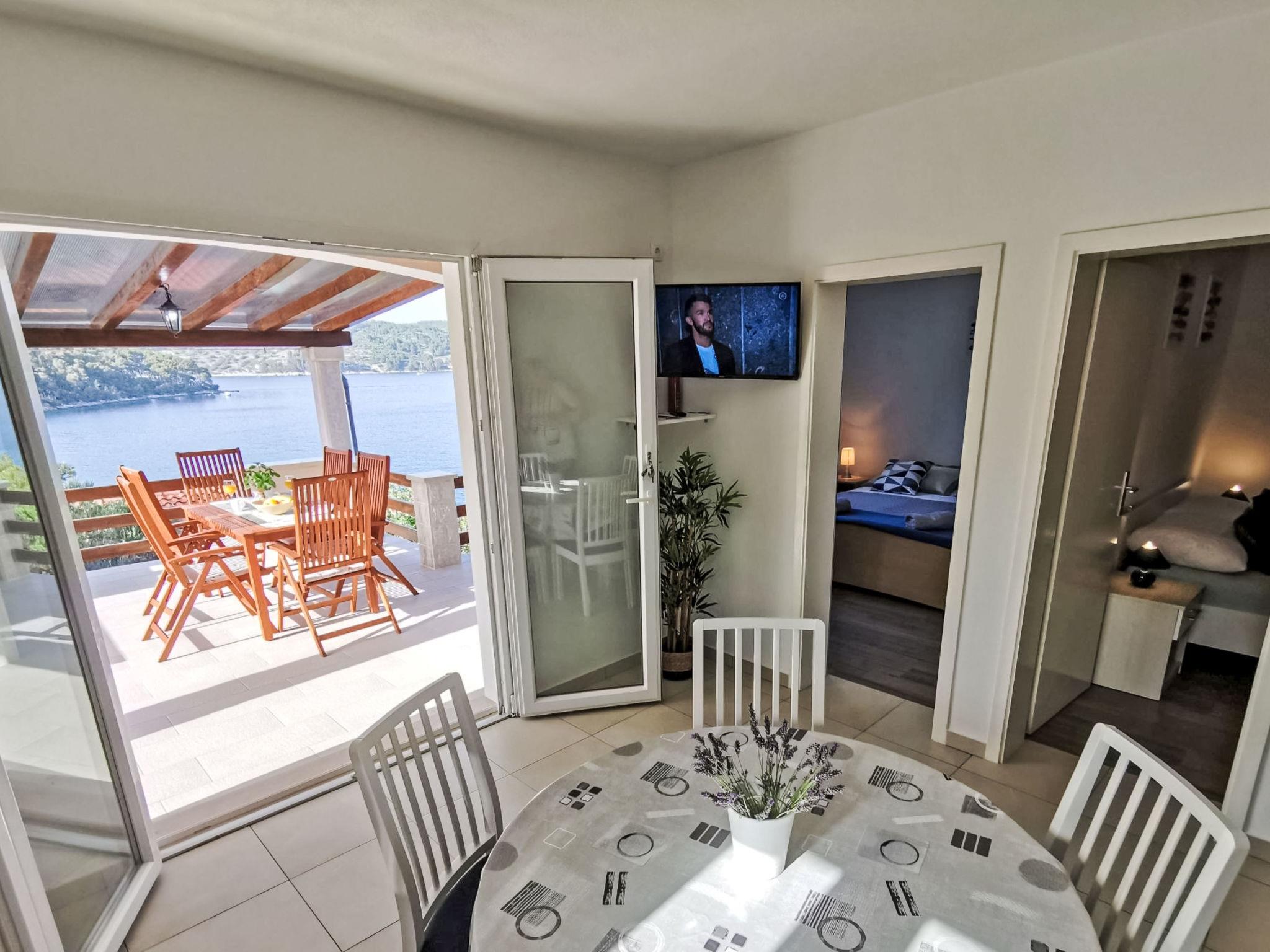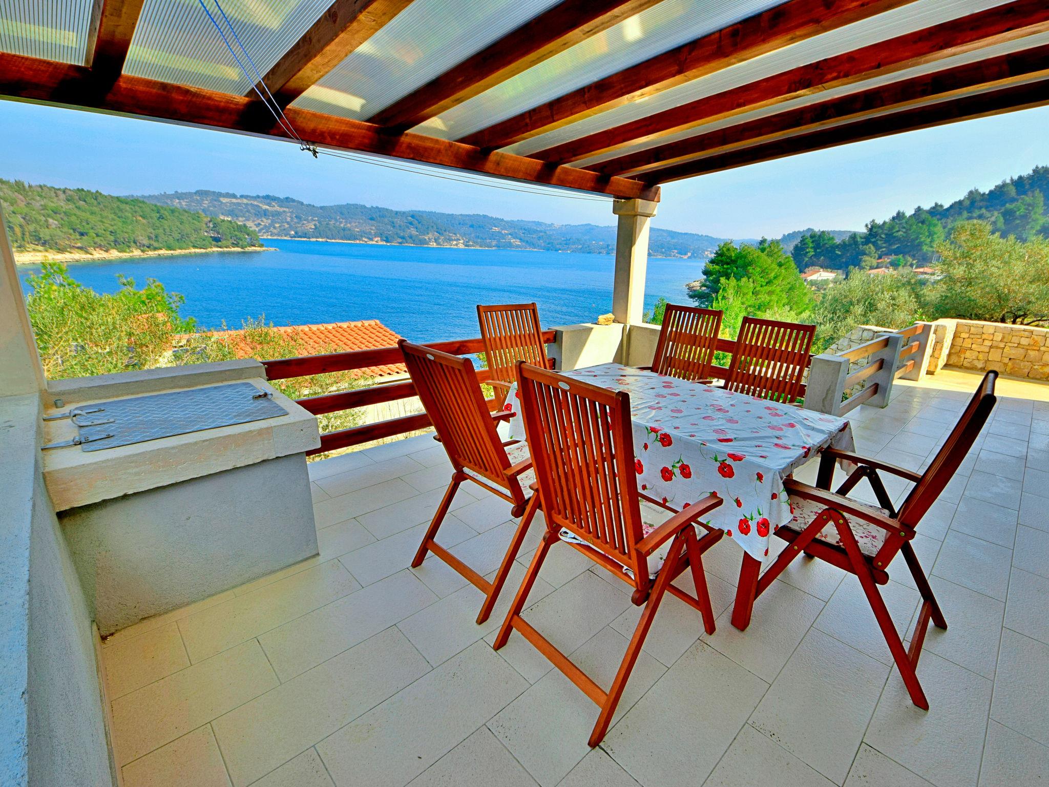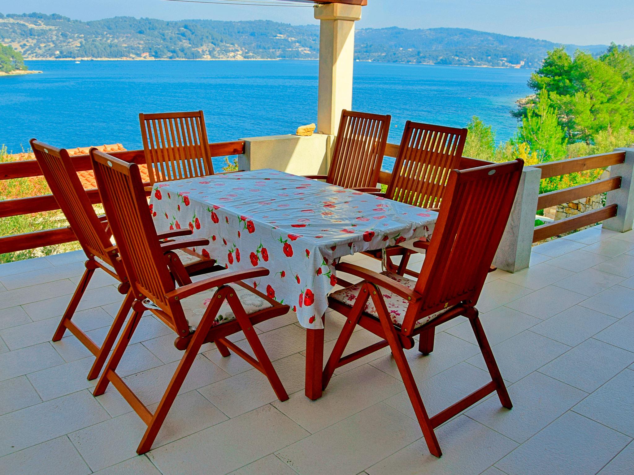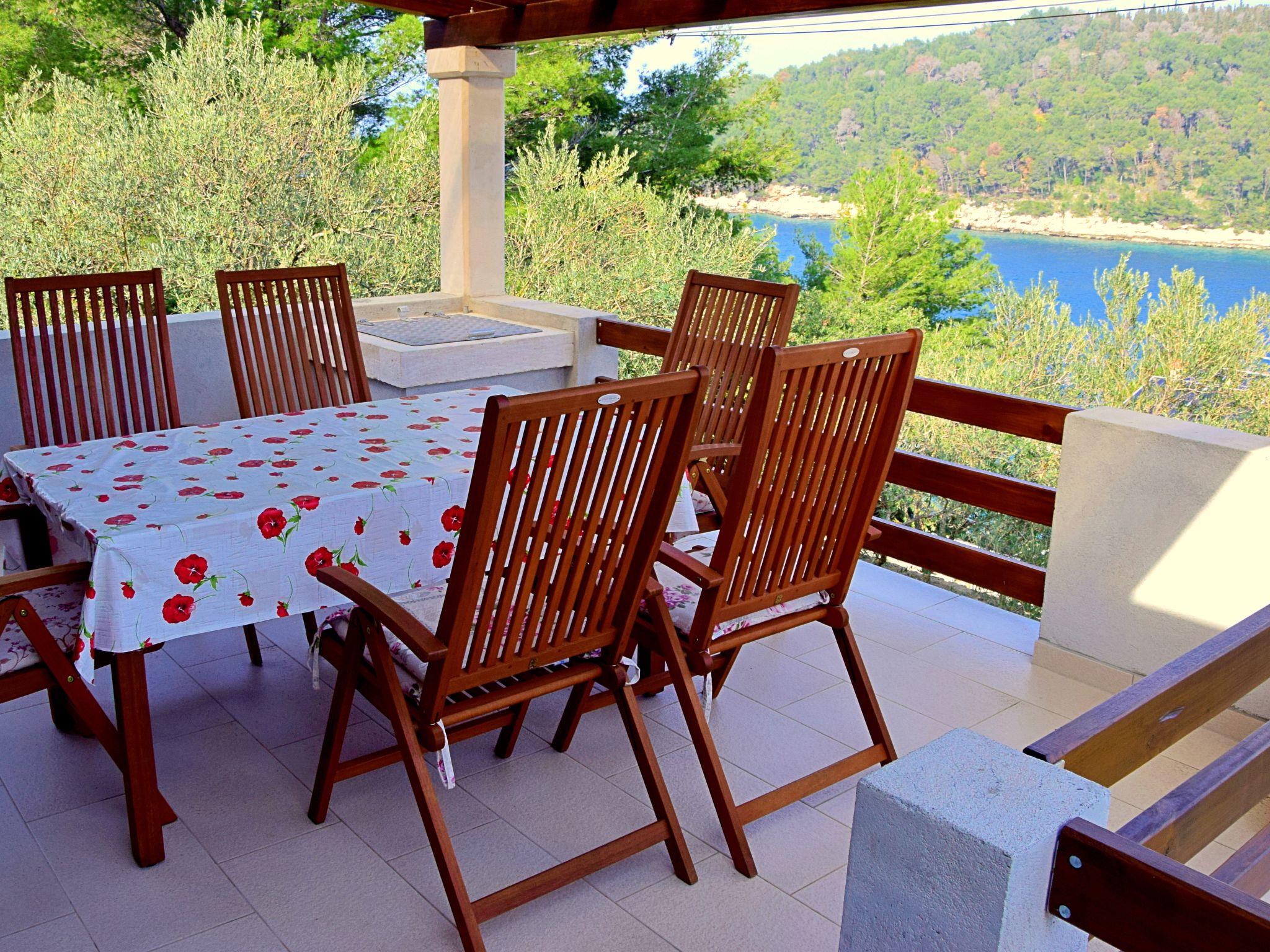 Uvala Picena 5 km from Vela Luka: Single-family house "Flora". In a quiet, sunny position, from the sea, 35 m from the beach. Private: property 480 m2, garden 100 m2 with wildlife garden. Outdoor shower, terrace (10 m2), barbecue. In the house: internet access. Parking (for 2 cars) at 30 m. Shop 3.5 km, restaurant 4 km, bus stop 4 km, ferry 4 km, pebble beach 100 m, rocky beach, concrete beach 35 m. Please note: private mooring, on request.