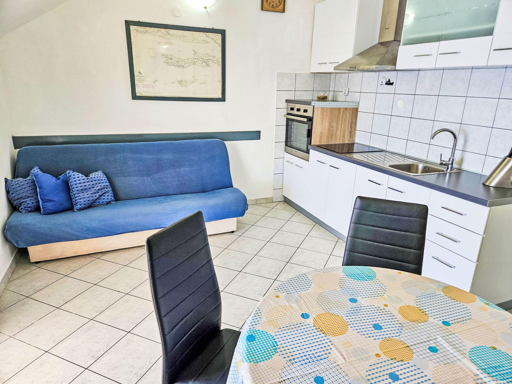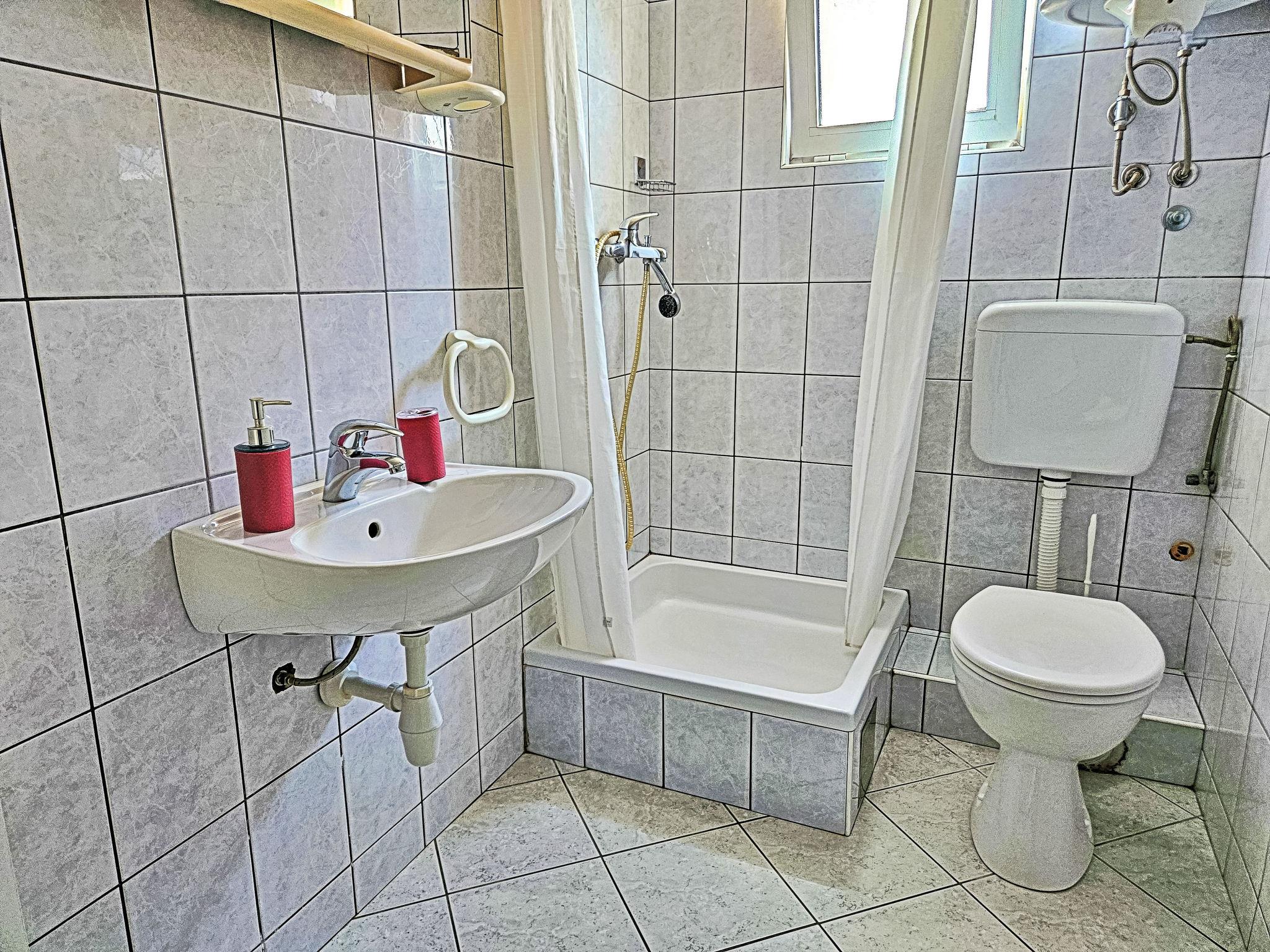 Apartment house "Snježana". On the outskirts, in a quiet, sunny position on a slope, 40 m from the sea, 40 m from the beach. For shared use: swimming pool angular (6 x 4 m, depth 80 - 150 cm, seasonal availability: 25.Apr. - 12.Sep.) with internal staircase. Barbecue. In the house: internet access. Roofed, parking at the house on the premises. Shop 700 m, restaurant 200 m, bus stop 3.4 km, sandy beach 1 km pebble beach 1 km, rocky beach 40 m. Please note: Additional accommodations can be booked.