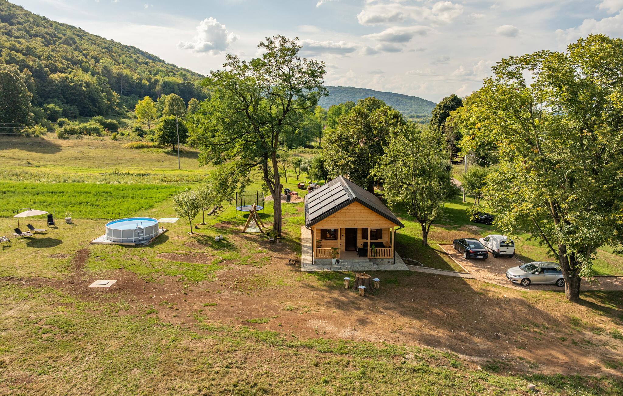 Velkommen til dette komfortable træhus, hvor I kan genoplade batterierne med jeres kære i en hyggelig atmosfære. Glæd jer til harmoniske måltider ved spisebordet, og stream en spændende film om aftenen, mens I hygger jer med hele familien i den behagelige sofa.