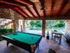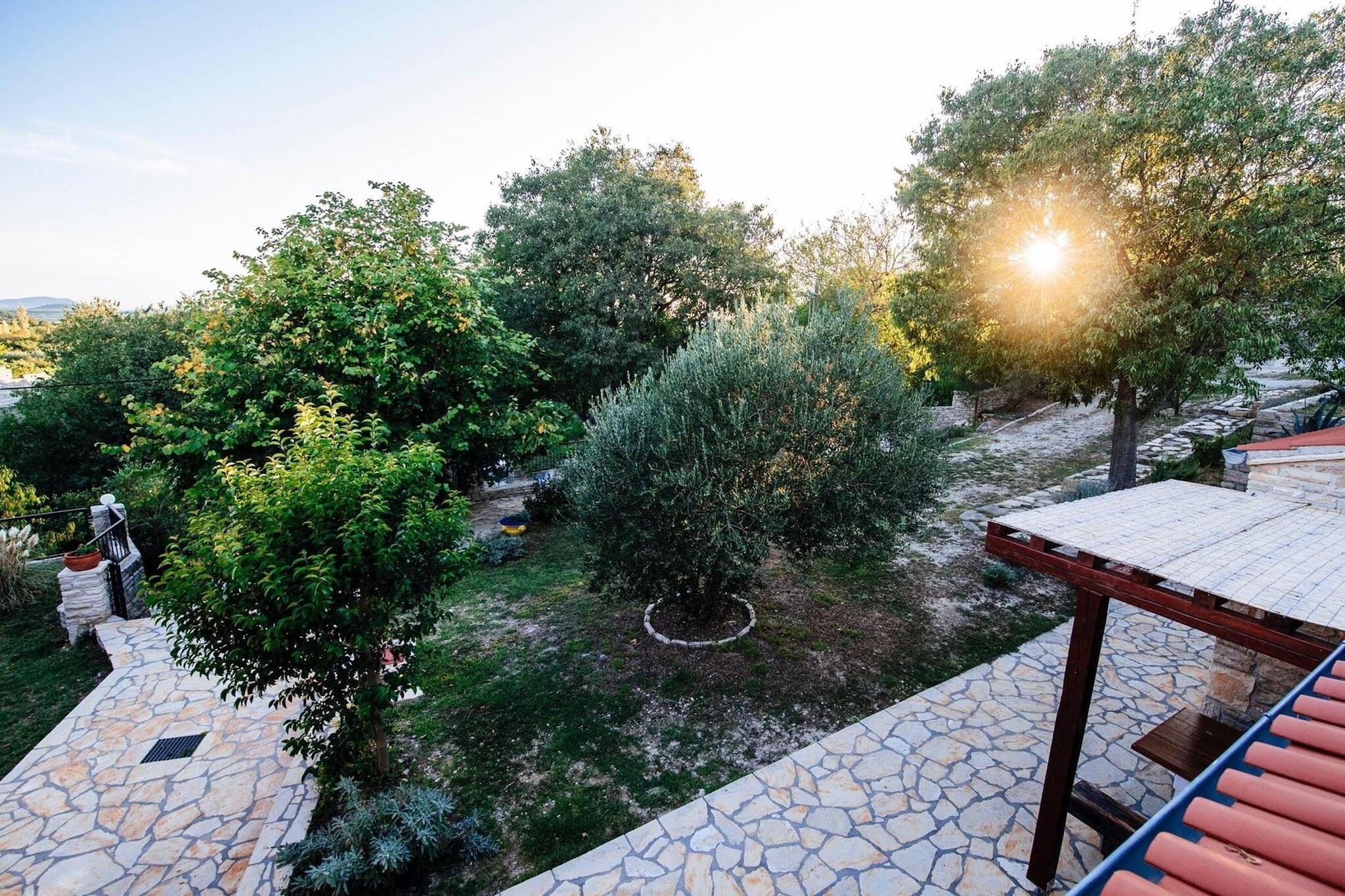 Dette feriehus er mere end bare et hus; det er et omhyggeligt konstrueret familieprojekt, bygget med tusindvis af timers arbejde og 7.000 kvadratmeter lokal sten. Beliggende i det smukke bagland af Zadar, kendt som Ravni Kotari, lover denne ejendom total privatliv, en privat pool og den unikke tilføjelse af en traditionel stenkro. Det rummelige boligareal på 200 kvadratmeter er fordelt på to etager og giver masser af plads til otte gæster. Det har to stuer, to moderne badeværelser og fire soveværelser, som er møbleret med solide senge af høj kvalitet lavet af egetræ. Men det virkelige midtpunkt er den traditionelle dalmatiske kro, også bygget af sten. Dette fantastiske rum inkluderer en indendørs pejs, et fuldt udstyret køkken og et stort træbord, der er perfekt til tolv personer. Der er også en dedikeret udendørs pejs til grill i haven. Træd ud på den store grund på 3.500 kvadratmeter, fuldstændig omgivet af et traditionelt stenhegn. Her kan du nyde den private pool, slappe af på den solrige terrasse, spise i træernes naturlige skygge ved et af de to store udendørs borde eller benytte dig af det tilgængelige fitnessudstyr og bordtennisfaciliteter. Gratis cykler er inkluderet, hvilket opfordrer dig til at udforske det omkringliggende område, kendt for sin vin og landbrug. Mens du nyder disse fredelige omgivelser, ligger den nærmeste strand mindre end 10 km væk, og Zadars berømte gamle bydel kan nås på kun en halv time. For alle fremtidige gæsters komfort er rygning ikke tilladt inde i huset, og kæledyr er ikke tilladt på ejendommen.
