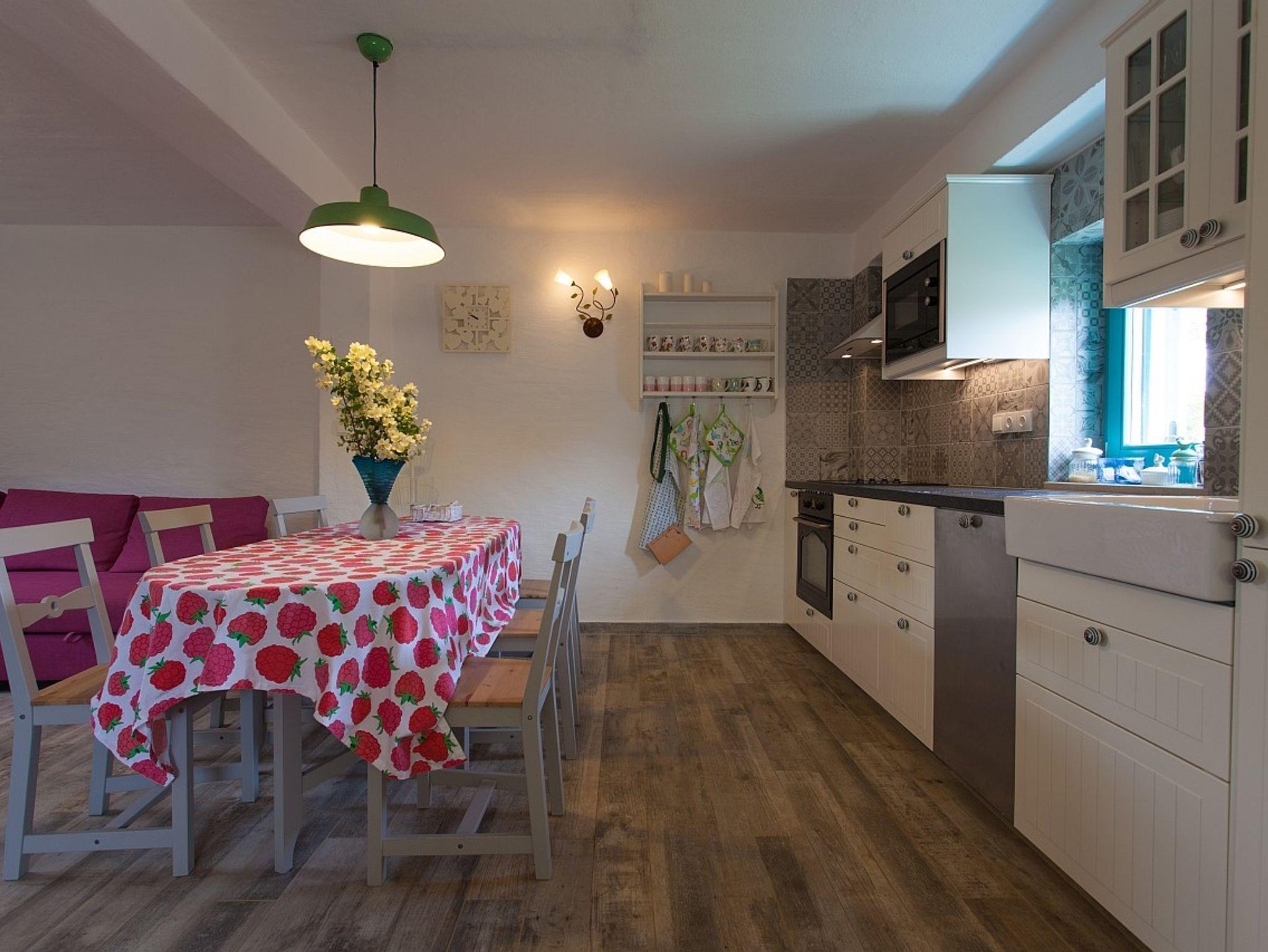 Umgebung des Objekts (Ordentlich), Hof (800m2, Wird mit einem anderen Objekt mitbenutzt, Sitzbereich), Parkplatz (Anzahl der Parkplätze: 2, Entfernung vom Objekt: im Hof), Grill: gemeinsam, WiFi Internet, Föhn, Bügeleisen, Bügelbrett, Kinderbett
