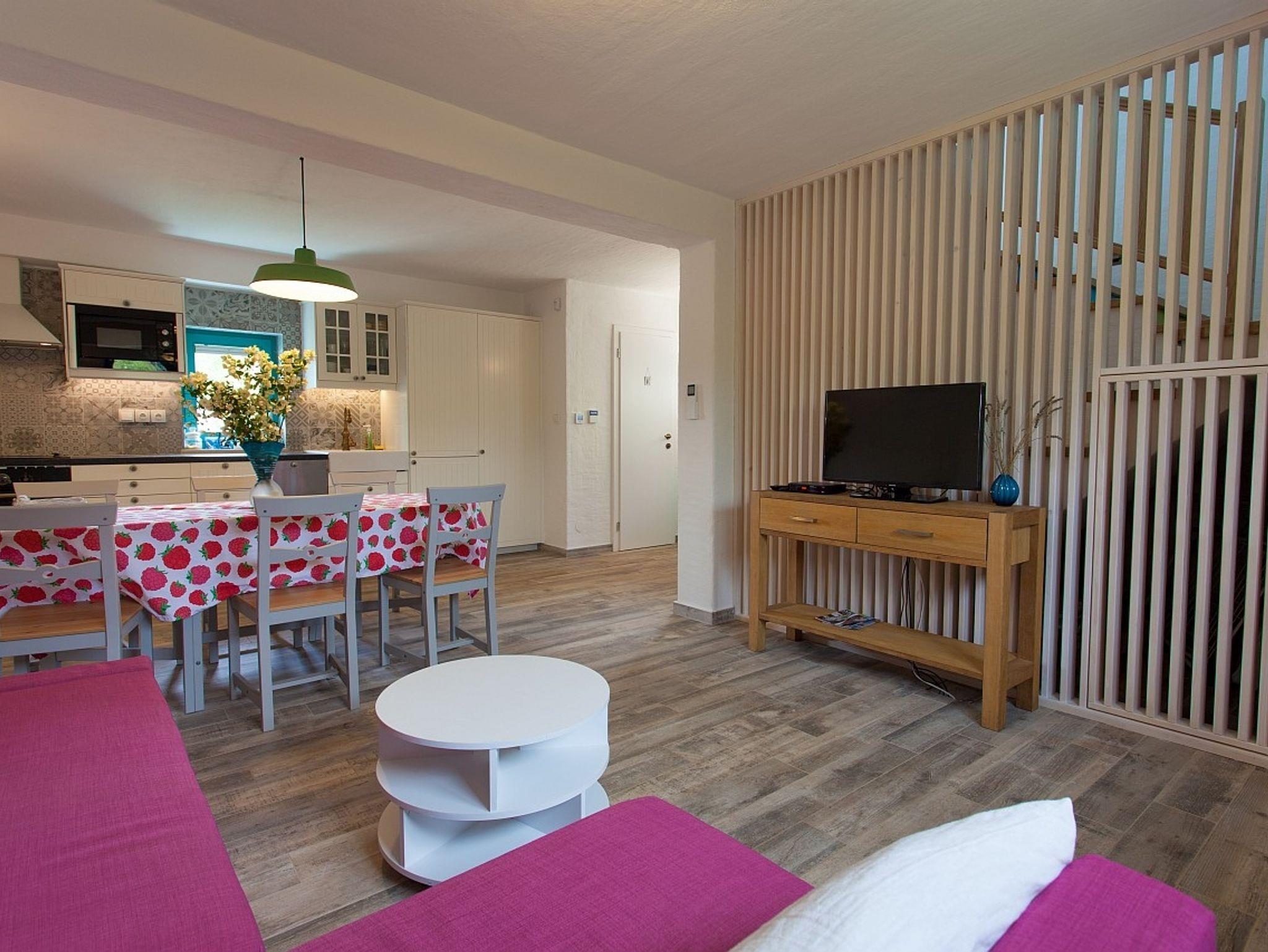 Haus bietet Platz für 6 Gäste. Die Betten sind in Schlafzimmern, die es 2 gibt, und in Wohnzimmer, innerhalb einer Gesamtfläche von 78m2, angeordnet. Die Gäste haben eine eigene Terrasse zur Verfügung, auf der sie in warmen Sommernächten genießen können. Es ist erlaubt, Speisen auf dem Gemeinschafts-Grill vorzubereiten. IM PREIS INBEGRIFFEN: Kurtaxe, Endreinigung, Klimatisierung, Zentralheizung, Parkplatz, Internet, Kinderbett, Bügeleisen, Bügelbrett, Föhn. VERBINDLICHE ZUSÄTZLICHE KOSTEN: Aufzahlung für Kurzaufenthalte (prozentualer Zuschlag pro Nächtigungsanzahl: 30% - 1, 20% - 2, 10% - 3). Die Verfügbarkeit zusätzlicher Dienstleistungen in Ihrem reservierten Termin und die Preise derselben (falls nicht aufgeführt) müssen im Voraus überprüft werden. Zusätzliche Dienstleistungen die in der Zahlungsaufforderung nicht aufgeführt sind werden direkt beim Vermieter bezahlt, angenommen der Gast nutzt auch diese.
