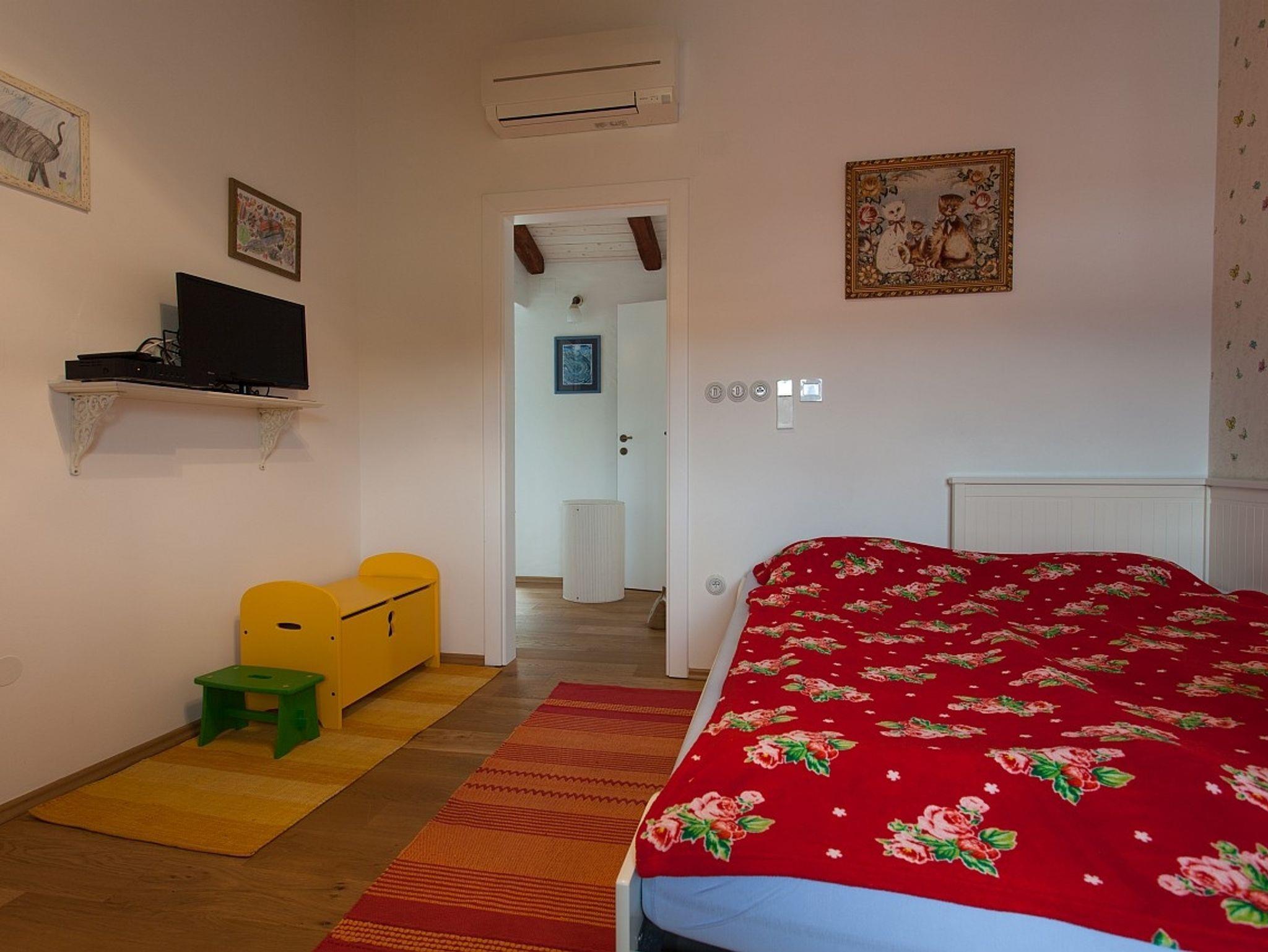 Ferienwohnung bietet Platz für 5 Gäste. Die Betten sind in Schlafzimmern, die es 2 gibt, und in Wohnzimmer, innerhalb einer Gesamtfläche von 70m2, angeordnet. Die Gäste haben eine eigene Terrasse zur Verfügung, auf der sie in warmen Sommernächten genießen können. Es ist erlaubt, Speisen auf dem Gemeinschafts-Grill vorzubereiten. IM PREIS INBEGRIFFEN: Kurtaxe, Endreinigung, Klimatisierung, Zentralheizung, Parkplatz, Internet, Kinderbett, Zusatzbett. VERBINDLICHE ZUSÄTZLICHE KOSTEN: Aufzahlung für Kurzaufenthalte (prozentualer Zuschlag pro Nächtigungsanzahl: 30% - 1, 20% - 2, 10% - 3). Die Verfügbarkeit zusätzlicher Dienstleistungen in Ihrem reservierten Termin und die Preise derselben (falls nicht aufgeführt) müssen im Voraus überprüft werden. Zusätzliche Dienstleistungen die in der Zahlungsaufforderung nicht aufgeführt sind werden direkt beim Vermieter bezahlt, angenommen der Gast nutzt auch diese.