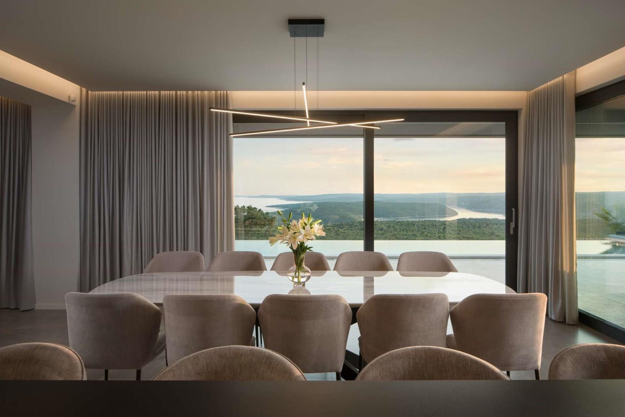 Denne elegante villa i Rabac, Istrien er perfekt til store familier eller grupper. Det har en privat indendørs pool, en overdækket terrasse til morgenkaffe og en fredelig have til udendørs måltider og afslapning. Indenfor kan gæsterne slappe af i saunaen eller holde sig aktive med fitnessudstyr, ideelt til genopladning efter en dag på stranden. Havet ligger kun 1 km derfra, mens restauranter og et supermarked ligger 14 km fra ejendommen. Villaen omfatter både indendørs og udendørs køkkener, perfekt til at tilberede måltider til at nyde med sine kære. Et trådløst musiksystem og streamingservice sørger for underholdning under hele dit ophold. Gratis parkering på stedet holder dit køretøj sikkert. Uanset om du svømmer, griller eller slapper af indendørs, tilbyder denne villa en perfekt blanding af komfort, wellness og kystcharme til en mindeværdig flugt fra Istrien.