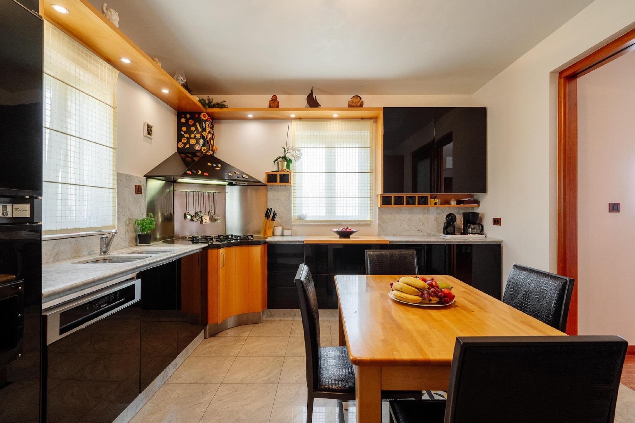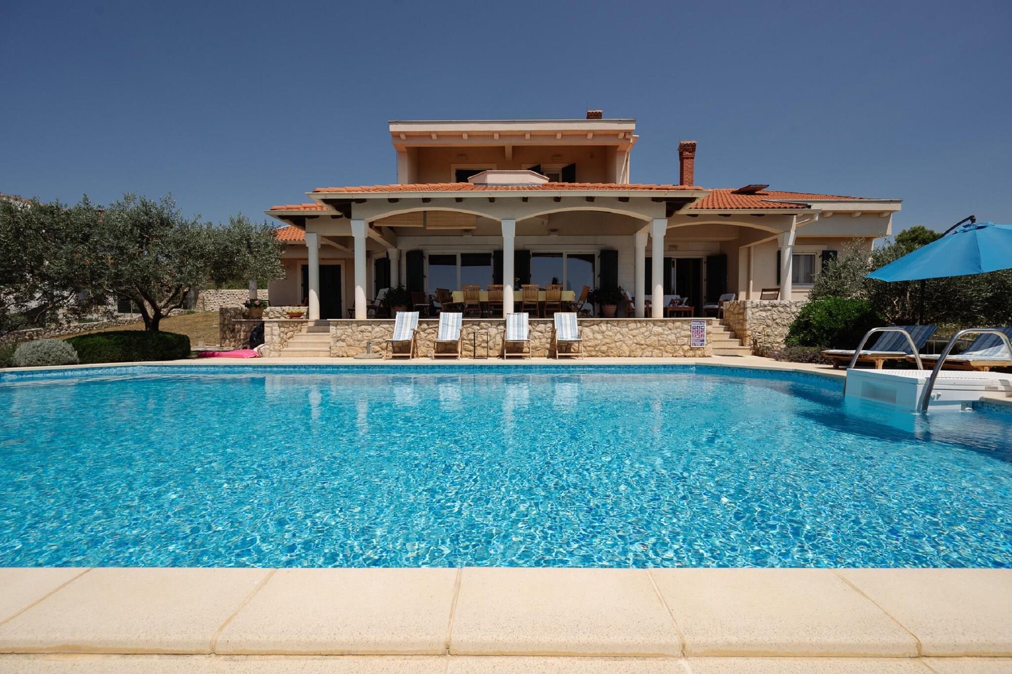 Villa Clara ligger kun 150 m fra stranden i en fredelig boligforstad til Zadar ved navn Kozino. Med sin 70m2 private swimmingpool og et fuldt udstyret fitnesscenter til hjemmet giver det et højt niveau af indkvartering for op til 14 personer. Stueområdet i denne udsøgte villa strækker sig over 600m2, der er fordelt på 3 etager. Indgangsniveauet består af et motionscenter, vaskerum og en garage. Stueetagen har et moderne køkken, en rummelig opholds- / spiseplads og 4 soveværelser, hver med eget badeværelse. Der er yderligere 2 soveværelser og samme antal badeværelser ovenpå. Fra disse værelser har du direkte adgang til en charmerende balkon, der giver en spektakulær panoramaudsigt over Adriaterhavet og de omkringliggende øer. Uden for din villa er der en stor privat swimmingpool, en smuk anlagt have, en basketballplads og grillfaciliteter. Denne fantastiske villa ligger i den rolige landsby Kozino. Der er flere restauranter i gåafstand fra villaen og en købmand lige rundt om hjørnet. Byen Zadar ligger kun 10 minutters kørsel væk, og den nærliggende landsby Petrcane tilbyder også masser af sommeraktiviteter i turistsæsonen.