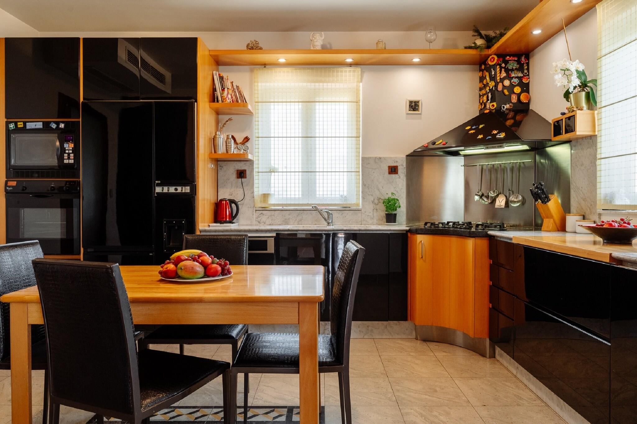 Stueetage: (badeværelse(bruser, håndvask, toilet, føntørrer), vaskerum (tørretumbler, vaskemaskine, strygebræt, strygejern), opholdsrum(dobbeltsovesofa, bruser, håndvask, toilet, fitnessapparater), garage) På 1. etage: (åbent køkken(spisebord(4 personer), elkedel, brødrister, komfur(Komfur med fire kogeplader, gas), ovn, mikrobølgeovn, opvaskemaskine , køleskab, fryser), stue / spisestue(Fjernsyn(fladskærm, parabol, Smart-TV, Internationale TV-kanaler), spisebord(10 personer), pejs, sofahjørne, Netflix, klimaanlæg), Soveværelse med badeværelse(dobbeltseng(200 x 200 cm), Fjernsyn(fladskærm), badekar, bruser, håndvask, toilet, klimaanlæg), Soveværelse med badeværelse(dobbeltseng(200 x 200 cm), bruser, håndvask, toilet, klimaanlæg), Soveværelse med badeværelse(dobbeltseng(200 x 200 cm), bruser, håndvask, toilet, klimaanlæg), Soveværelse med badeværelse(køjeseng, badekar, bruser, håndvask, toilet, klimaanlæg), toilet(håndvask, toilet)) På 2. etage: (Soveværelse med badeværelse(dobbeltseng(180 x 200 cm), bruser, håndvask, toilet, balkon, klimaanlæg), Soveværelse med badeværelse(dobbeltseng(180 x 200 cm), Fjernsyn, bruser, håndvask, toilet, balkon, klimaanlæg)) spisebord(6 personer), bruser med lysterapi, terrasse(privat, overdækket, 70 m2), have(privat, indhegnet, anlagt have, oplyst, 700 m2), havemøbler, solstole, grill, parkering, swimmingpool(privat, 12 x 6 m., opened from Jun upto and including Sep), legeredskaber, loungemøbler, legetøj
