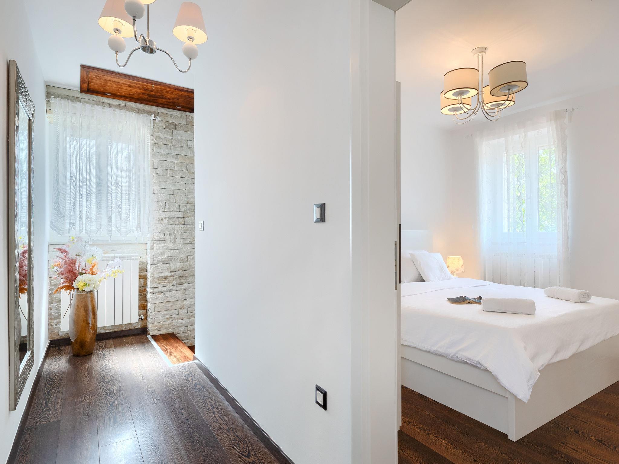 Beautiful single-family house "Villa Škavre", 2 storeys. 16 km from the centre of Labin, 21 km from the centre of Rabac, in a quiet, sunny position, 11 km from the sea, in the countryside. Private: property 3'500 m2, garden with lawn and trees, swimming pool angular (10 x 5 m, depth 140 cm, seasonal availability: 15.May. - 15.Oct.) with internal staircase. WC in the pool area, outdoor shower, terrace (65 m2), garden furniture, barbecue, children's playground (slide, swing). In the house: internet access, table tennis, billiard table, playroom, table football, trampoline, central heating system, washing machine. Parking (for 10 cars) at the house on the premises. Shop 8 km, supermarket 14 km, restaurant 8 km, bus stop 8.2 km, pebble beach 11 km, rocky beach 11 km, concrete beach 11 km. Sailing school 22 km, tennis 17 km, walking paths from the house 600 m, cycle lane 650 m. The owner does not accept any youth groups. Please note: airfield 46 km from the property. The unit consists of 2 houses rented as one unit. Private: outdoor kitchen (4 hot plates, oven, freezer, dishwasher). Organizing a party is not allowed.