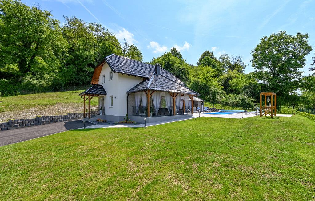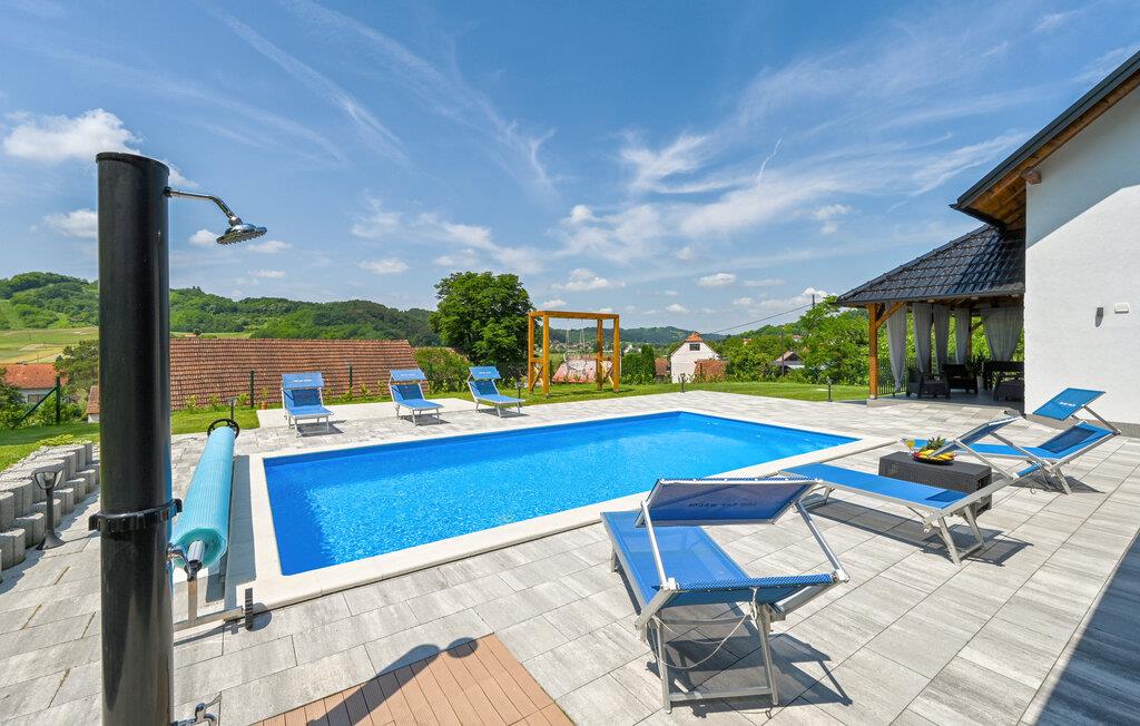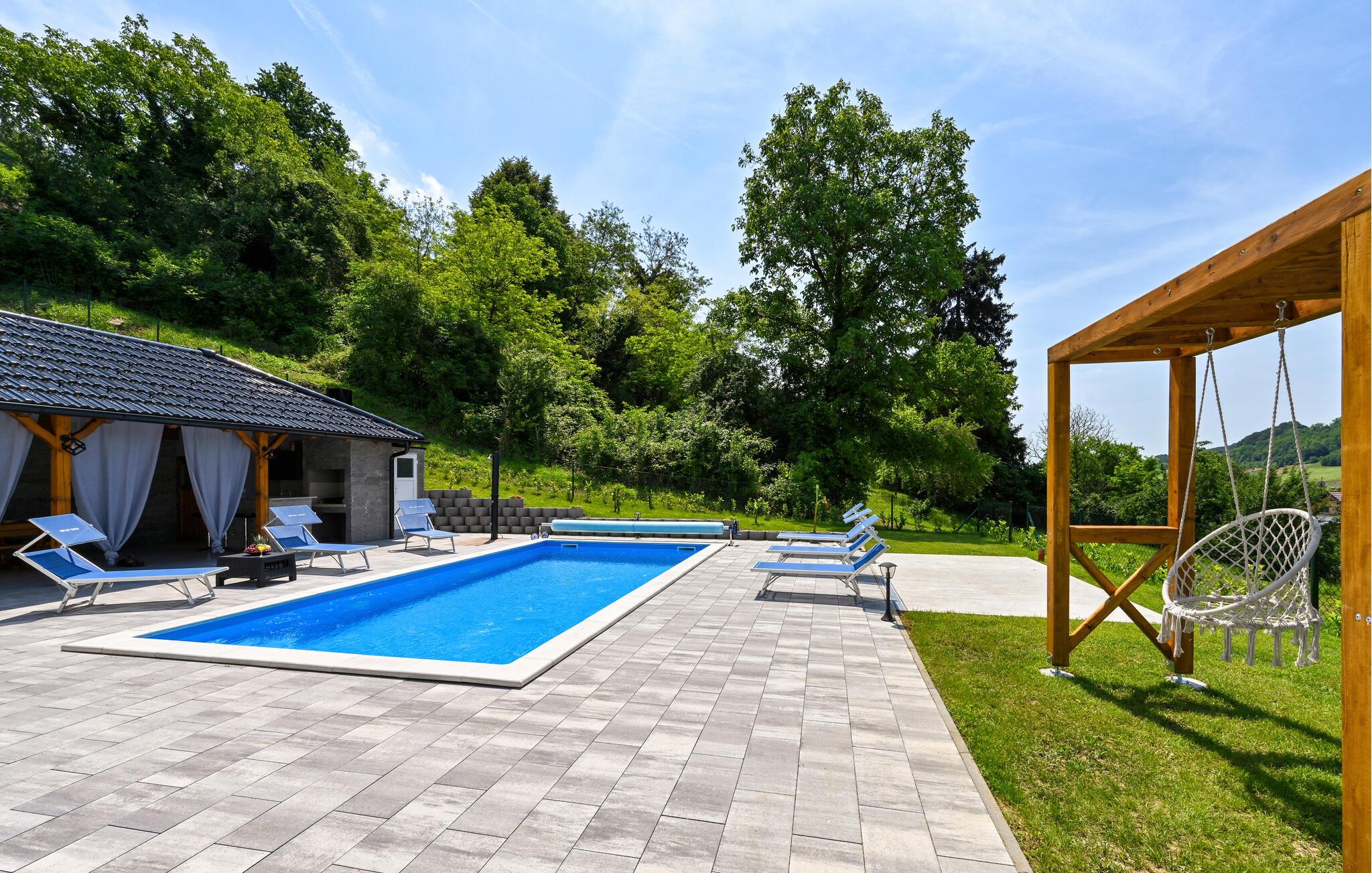 Nyd roen på den overdækkede altan, der byder på en betagende udsigt over det omkringliggende landskab. I stueetagen finder I desuden en dejlig veranda med bordfodbold. Her kan I både have det sjovt og nyde morgenkaffen i ro og mag. Udforsk haven med den store pool, der indbyder til badning og leg samt solbadning og afslapning. Det store overdækkede udendørskøkken er desuden perfekt til aftener med god mad i godt selskab.